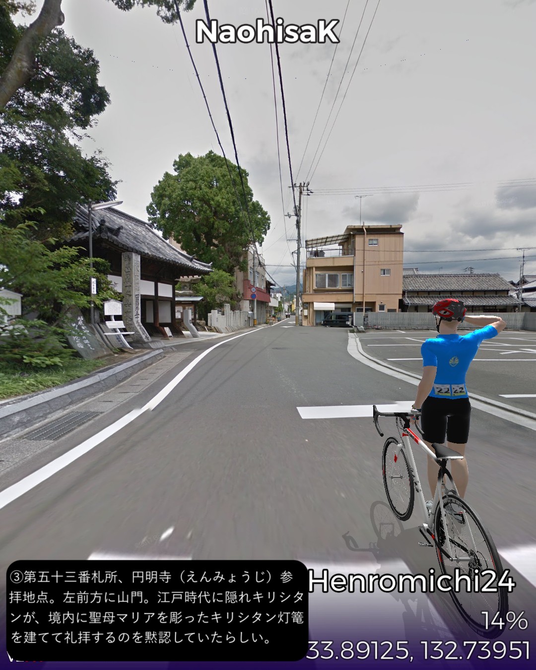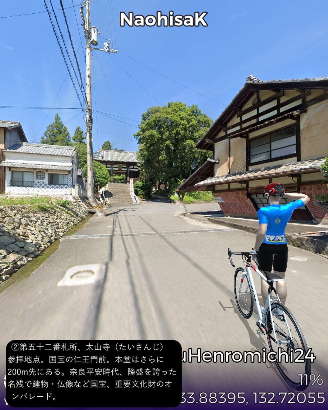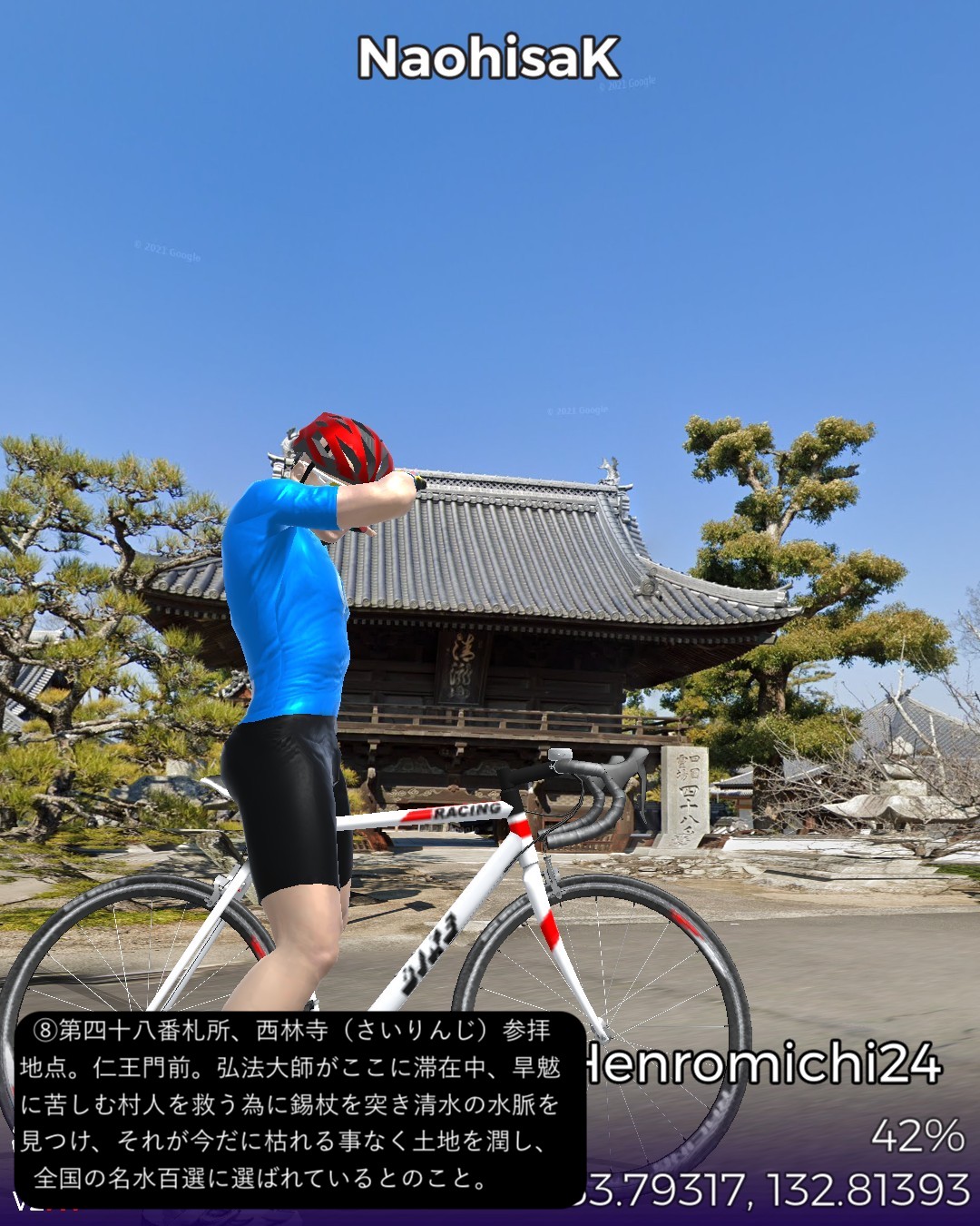 VRサイクリング、四国遍路道22日目。観音寺市第六十八番札所神恵院…