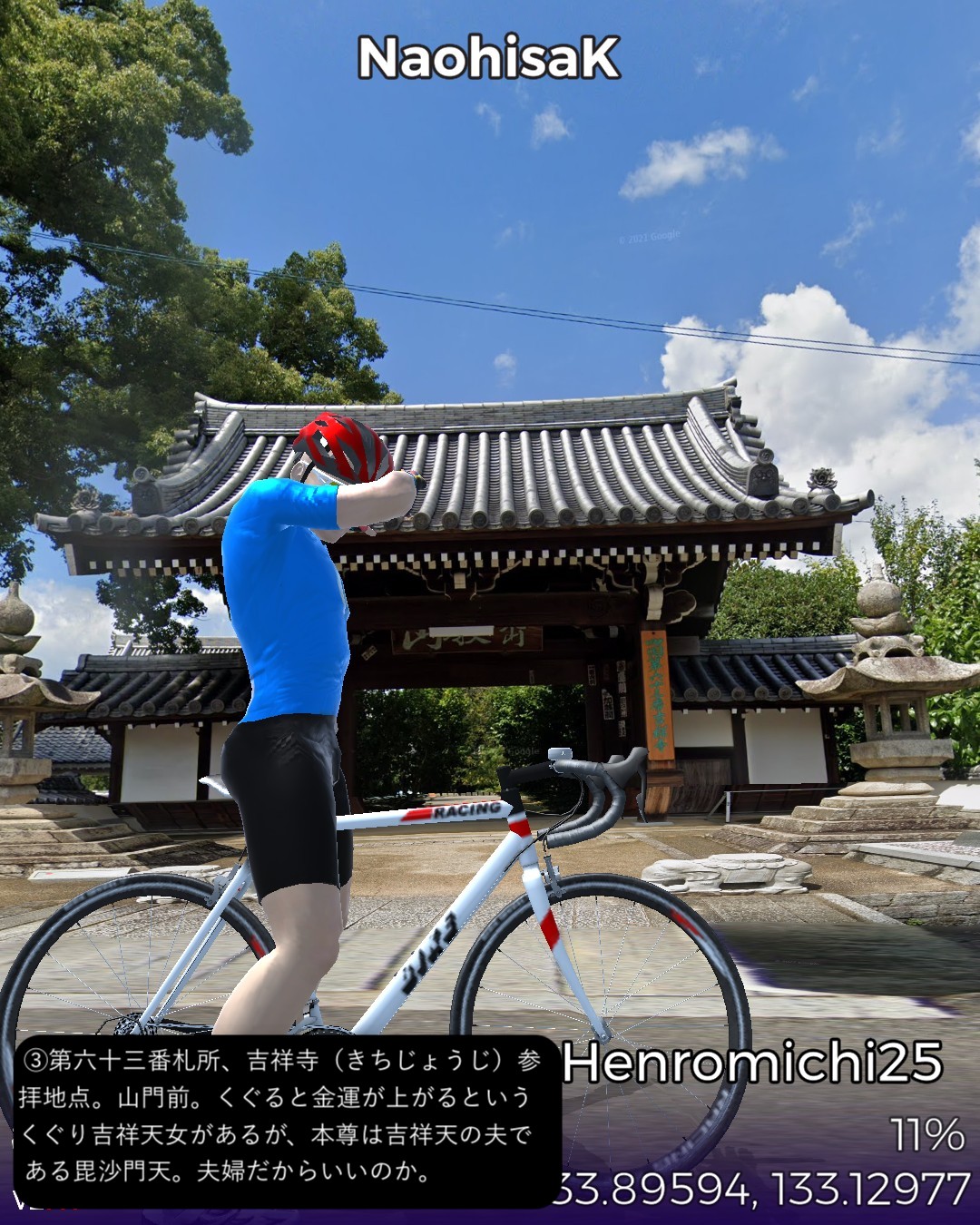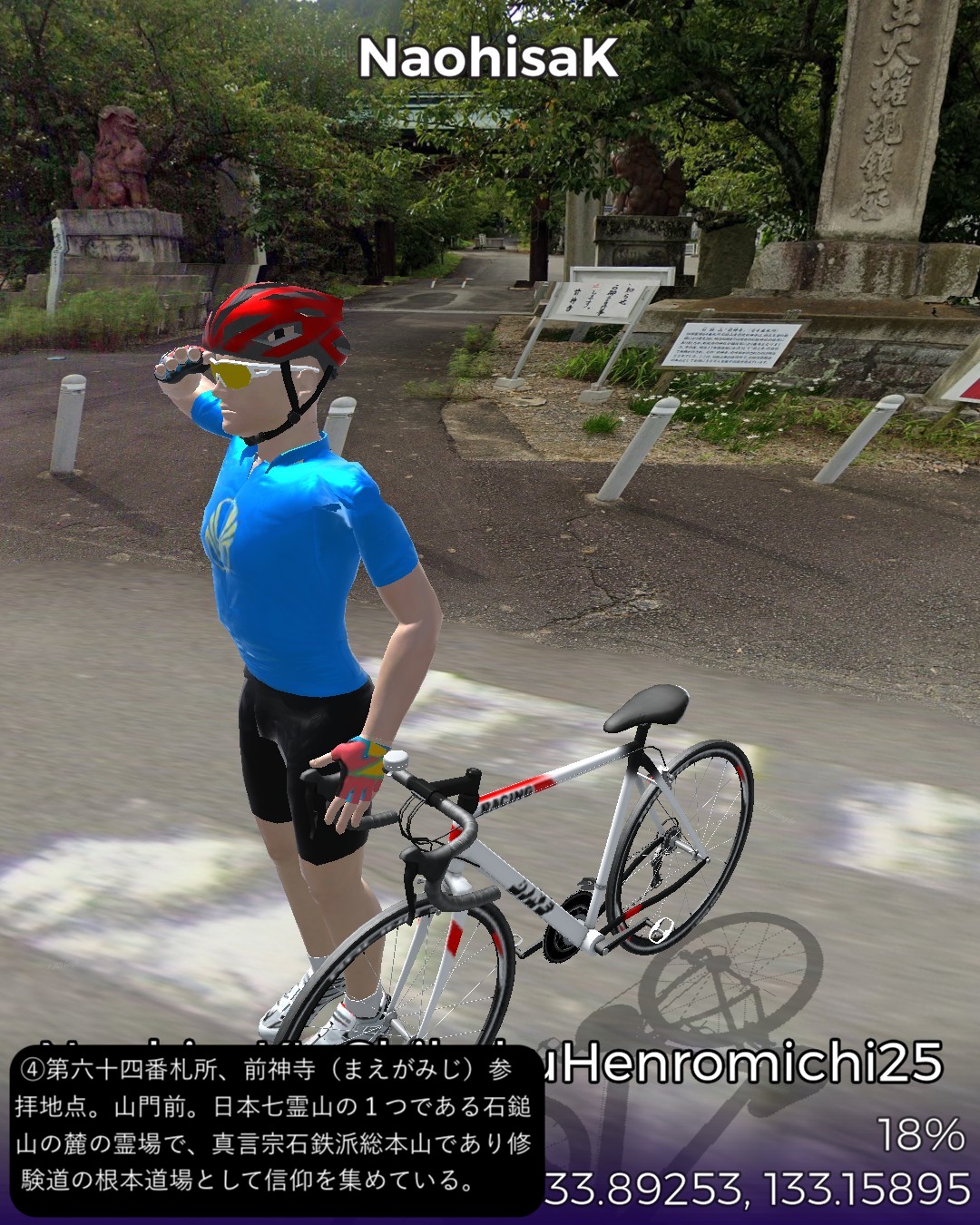 VRサイクリング、四国遍路道22日目。観音寺市第六十八番札所神恵院…