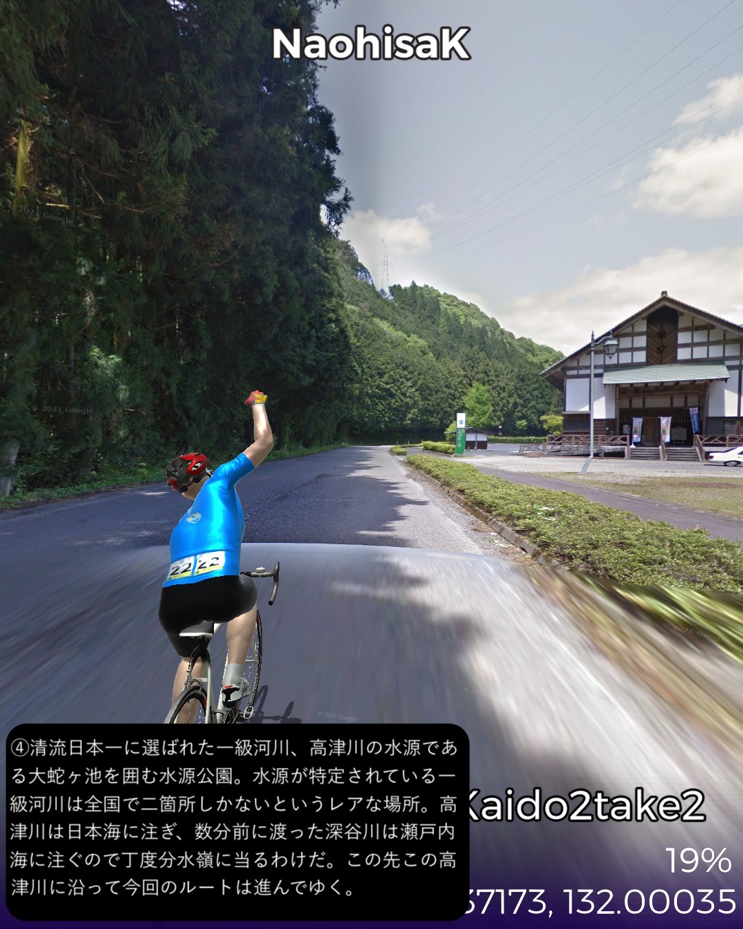 VRサイクリング、石見銀山街道で石見銀山まで到達した後は広島方…