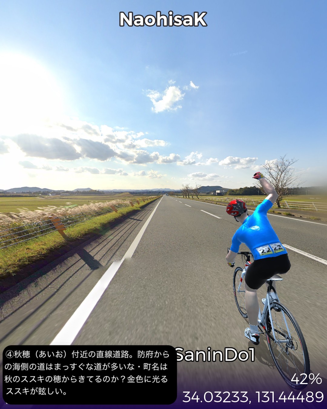 VRサイクリング、赤間関街道2日目。前回は北浦道筋を走ったが今回…
