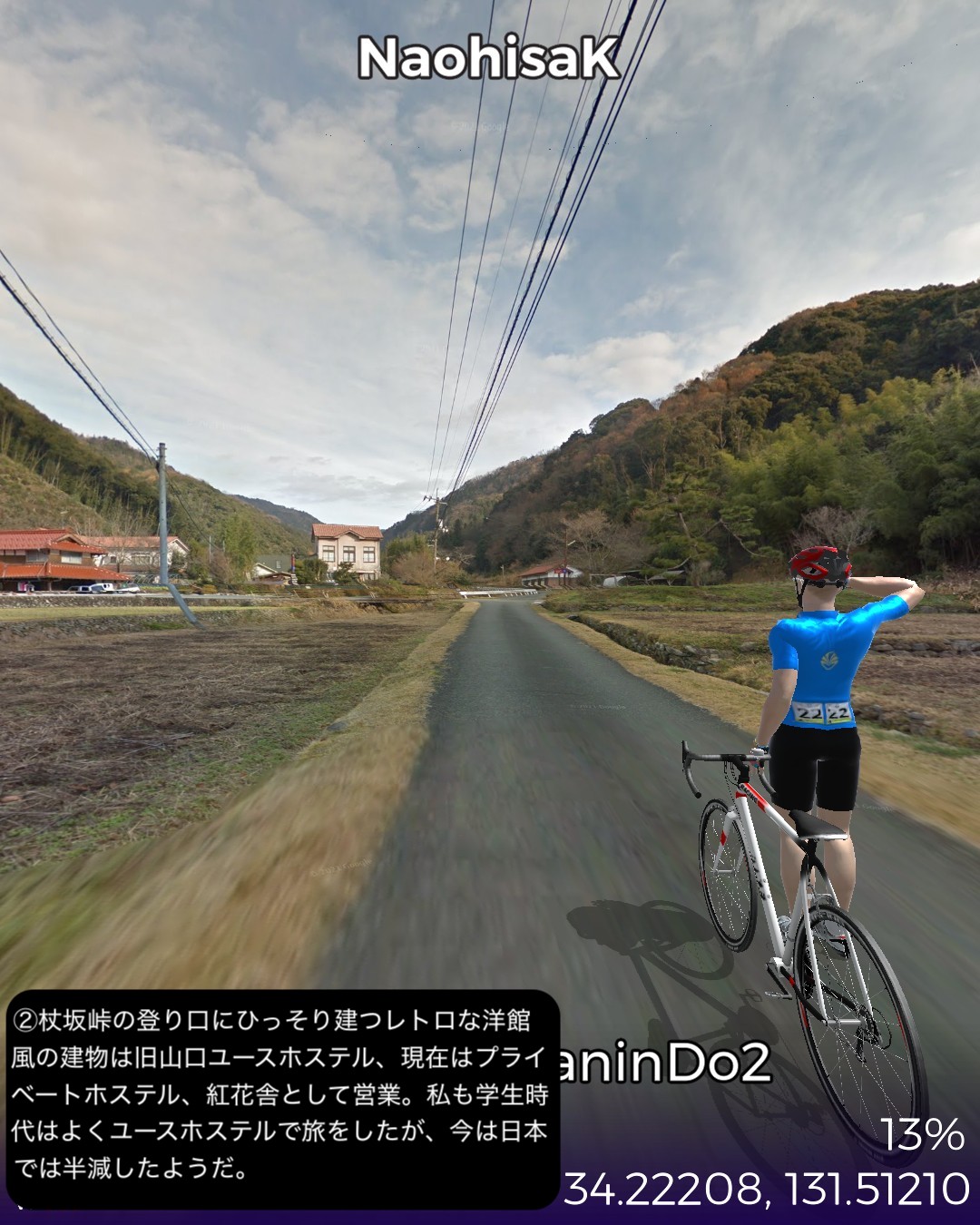 VRサイクリング、赤間関街道2日目。前回は北浦道筋を走ったが今回…