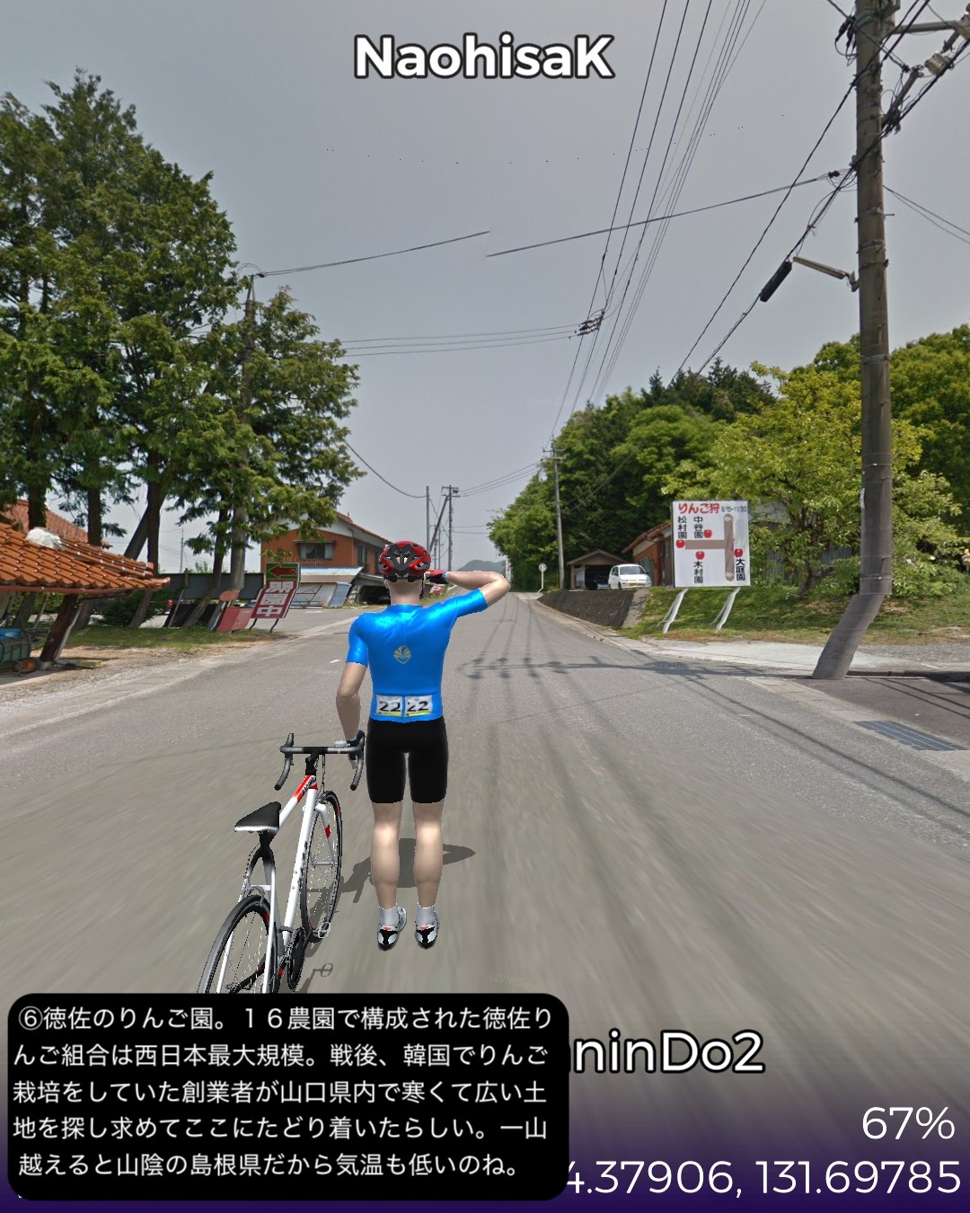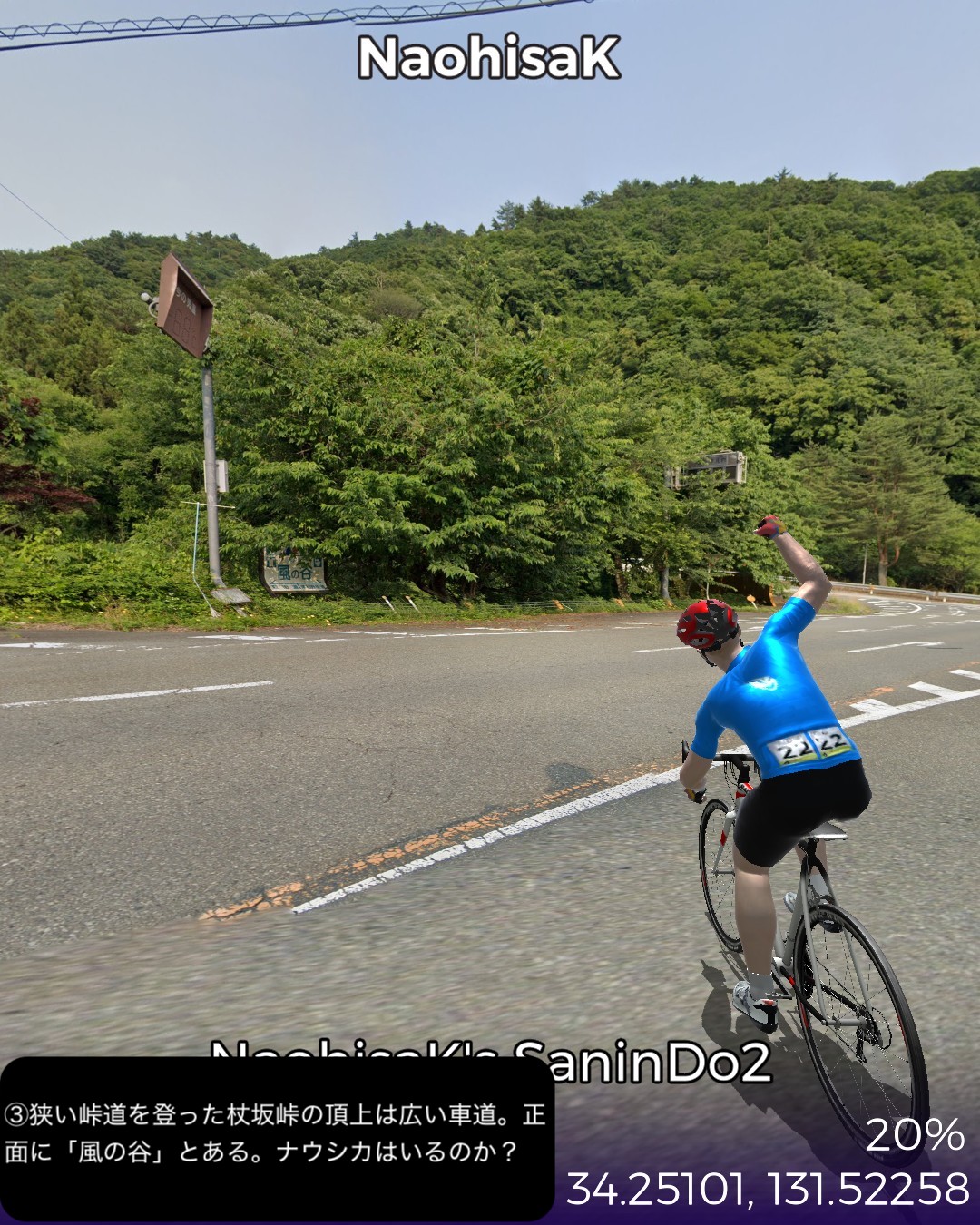 VRサイクリング、石見銀山街道で石見銀山まで到達した後は広島方…
