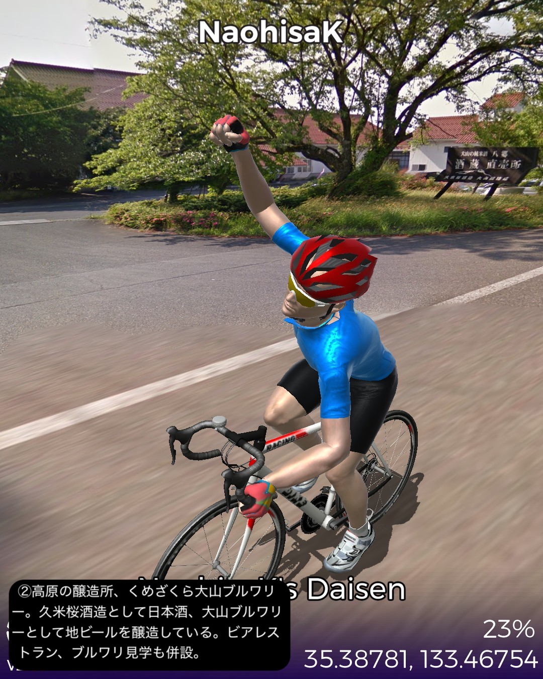 VRサイクリング、石見銀山街道で石見銀山まで到達した後は広島方…
