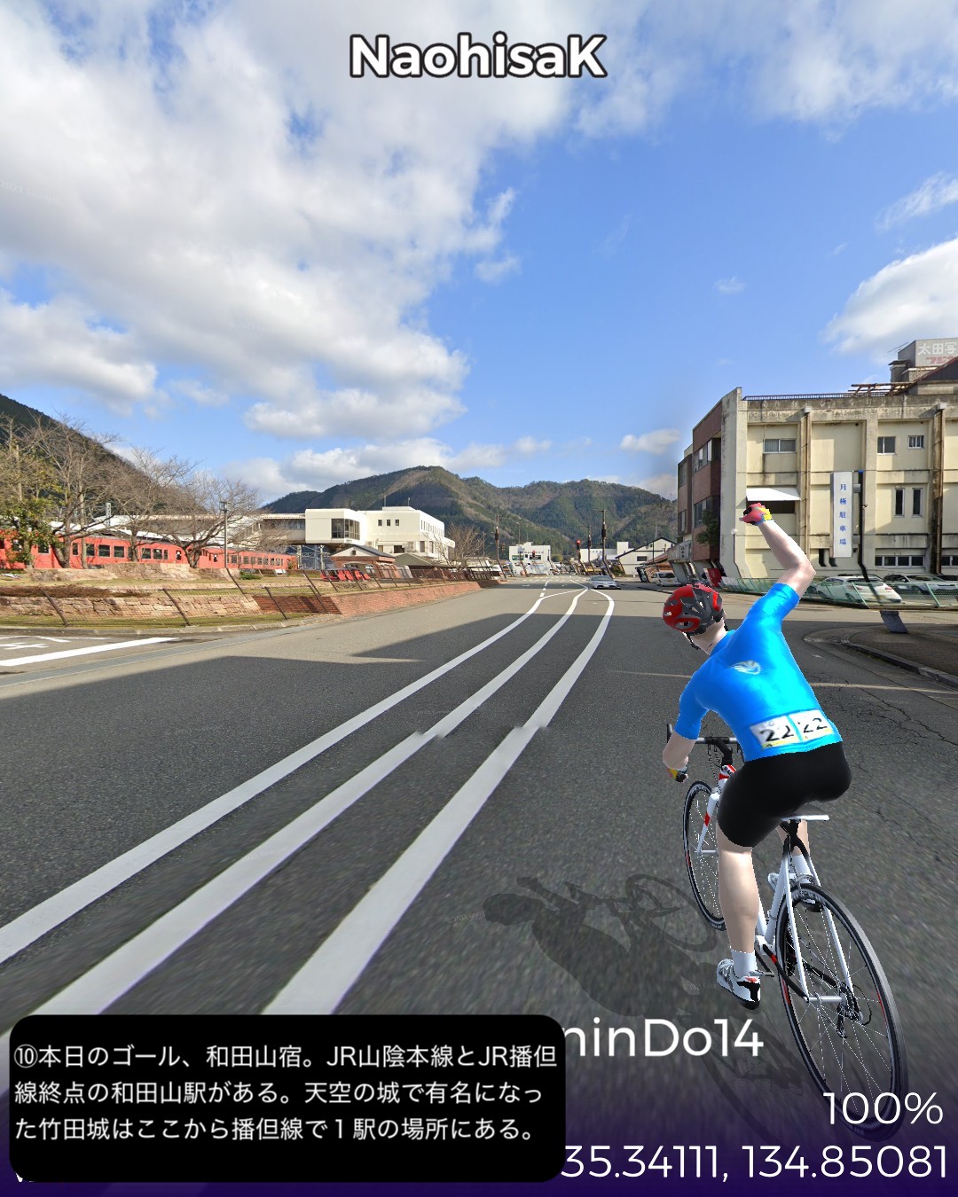VRサイクリング、石見銀山街道で石見銀山まで到達した後は広島方…