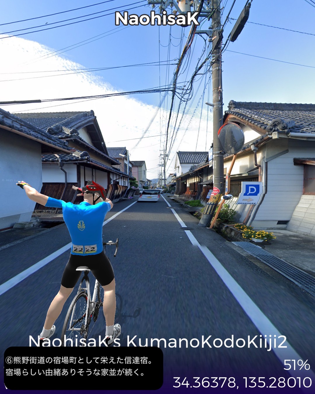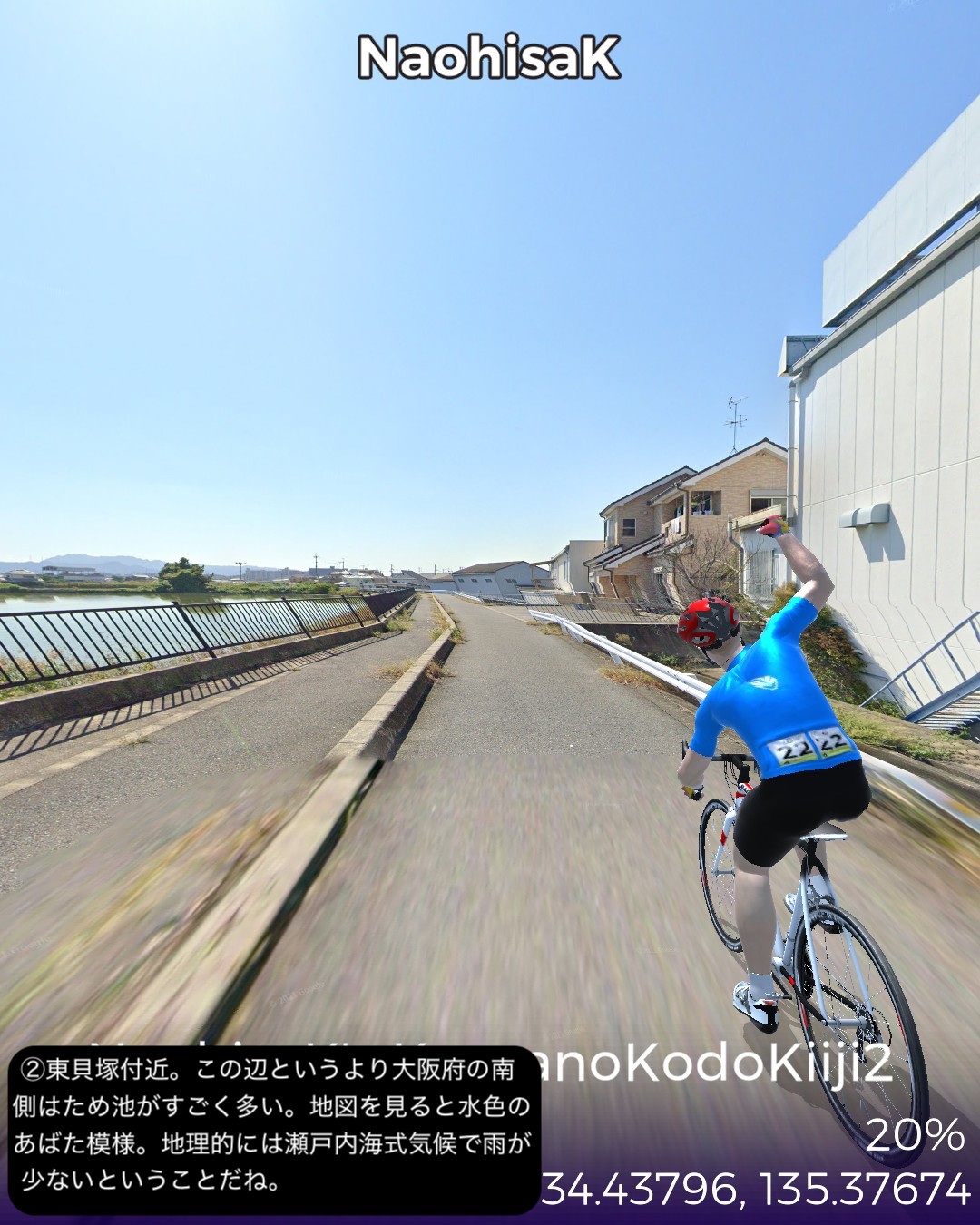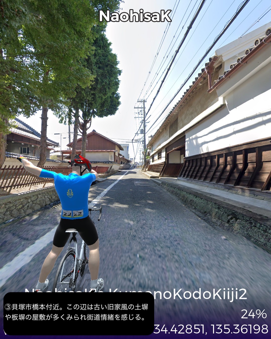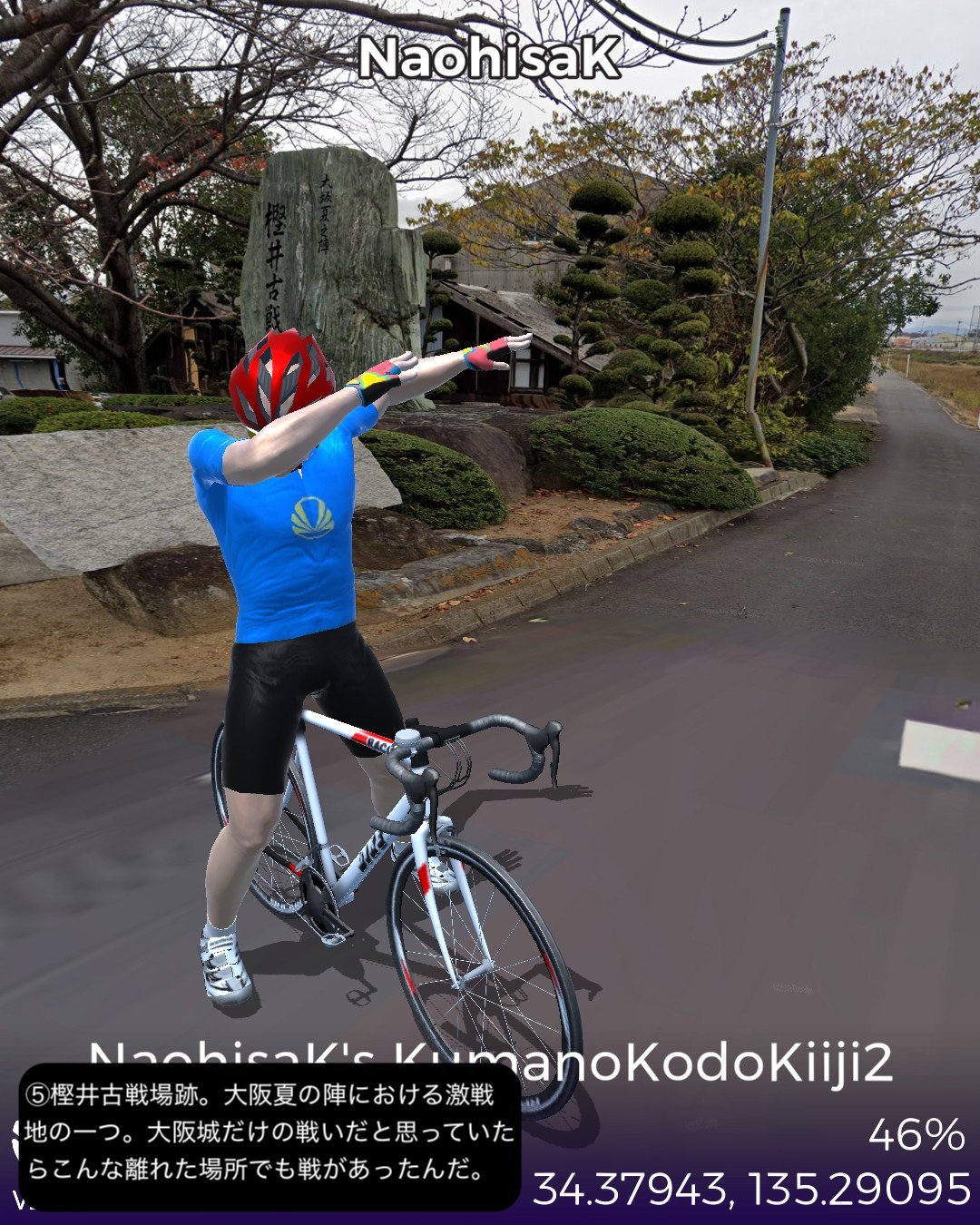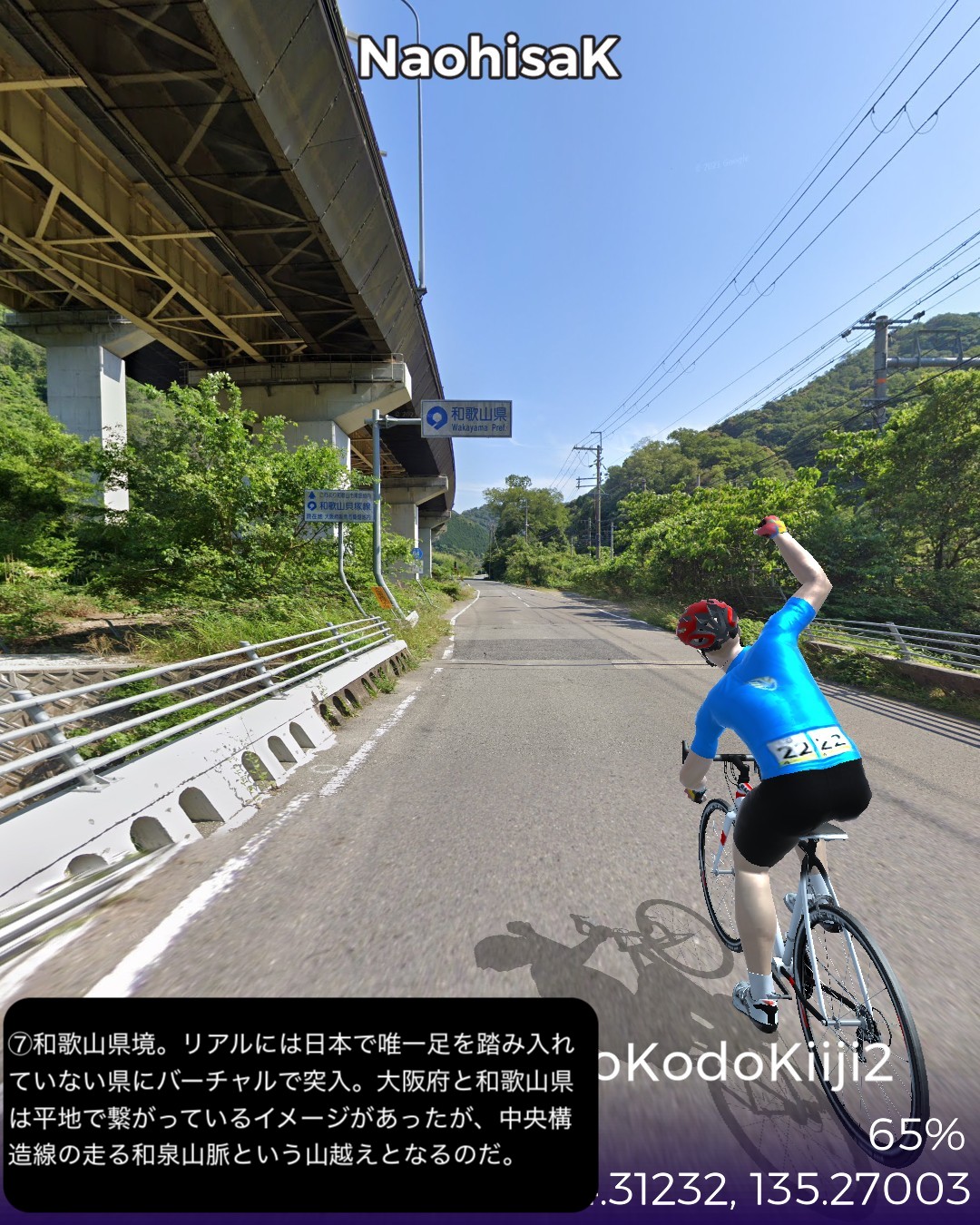 VRサイクリング 紀州街道2日目。泉佐野をスタートし、華やかなり…