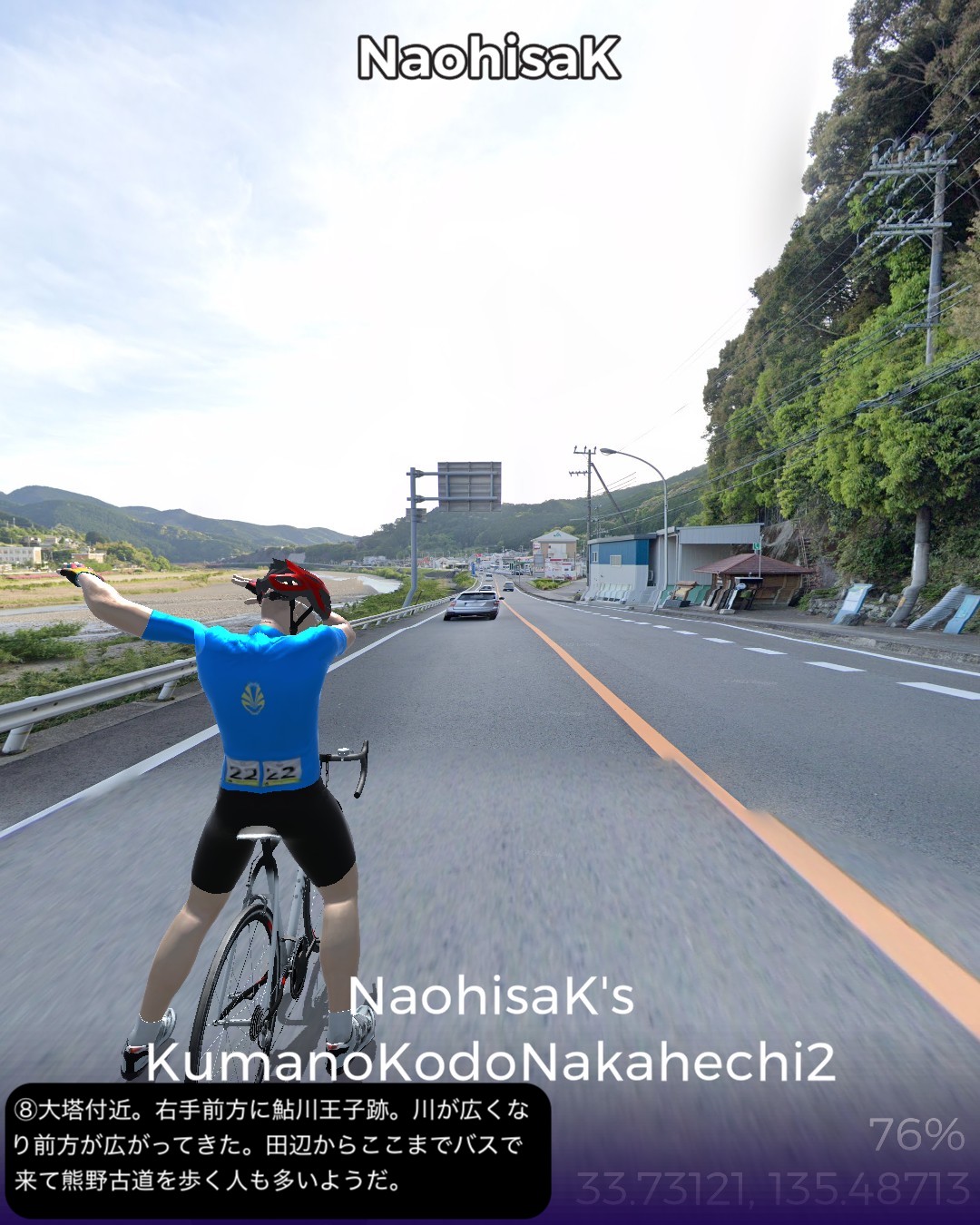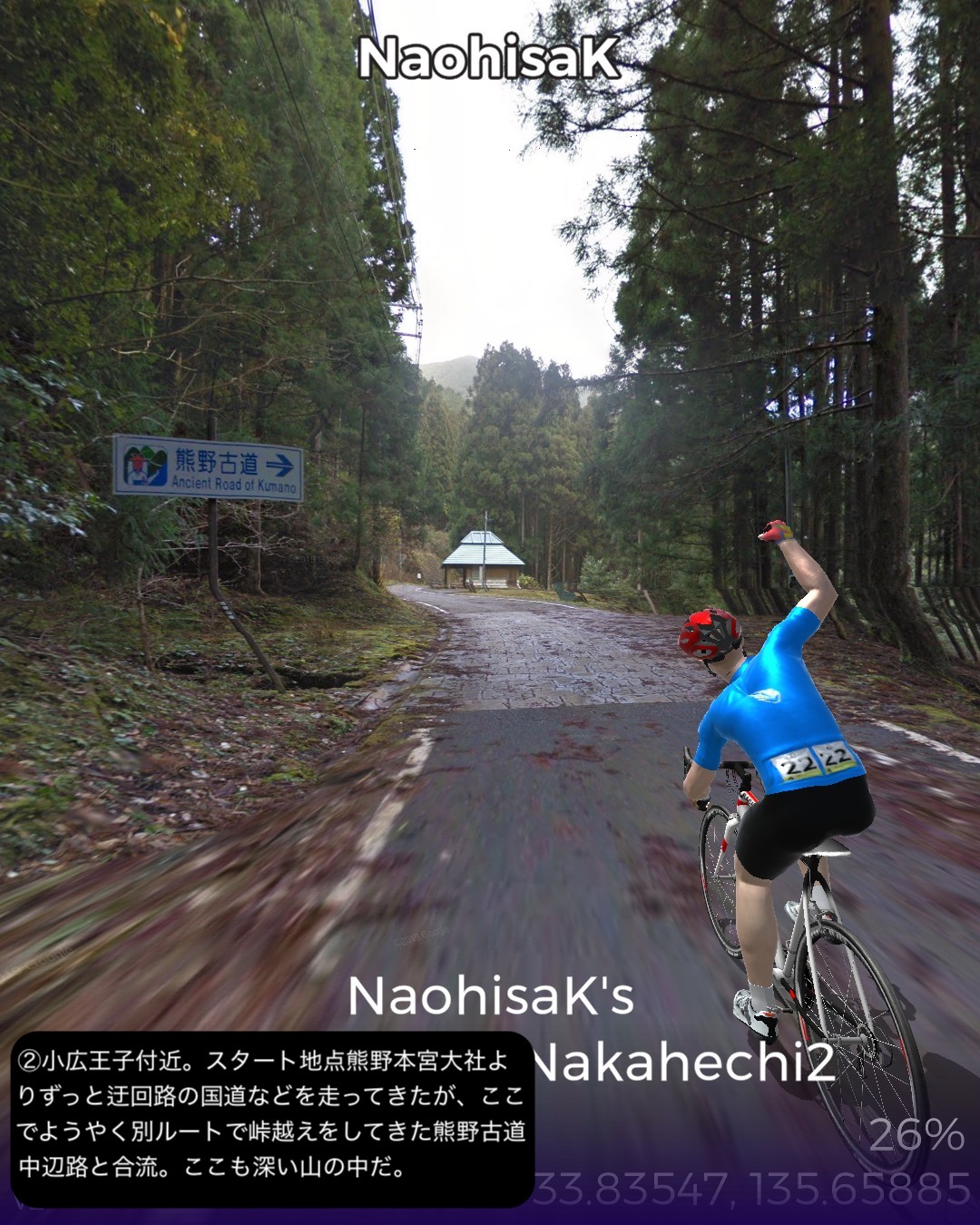 VRサイクリング 熊野古道 中辺路 1日目。これまでずっと紀伊半…