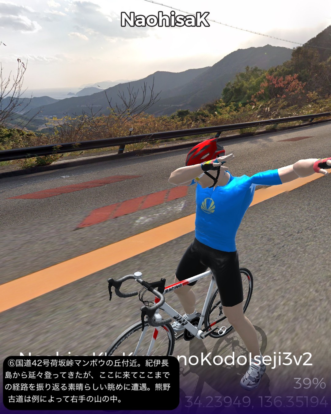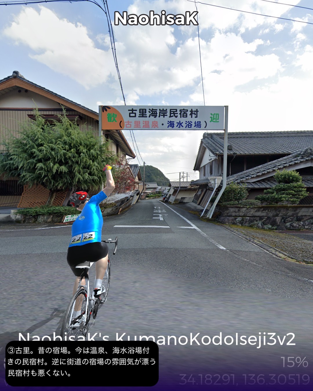 VRサイクリング 熊野古道 中辺路 1日目。これまでずっと紀伊半…