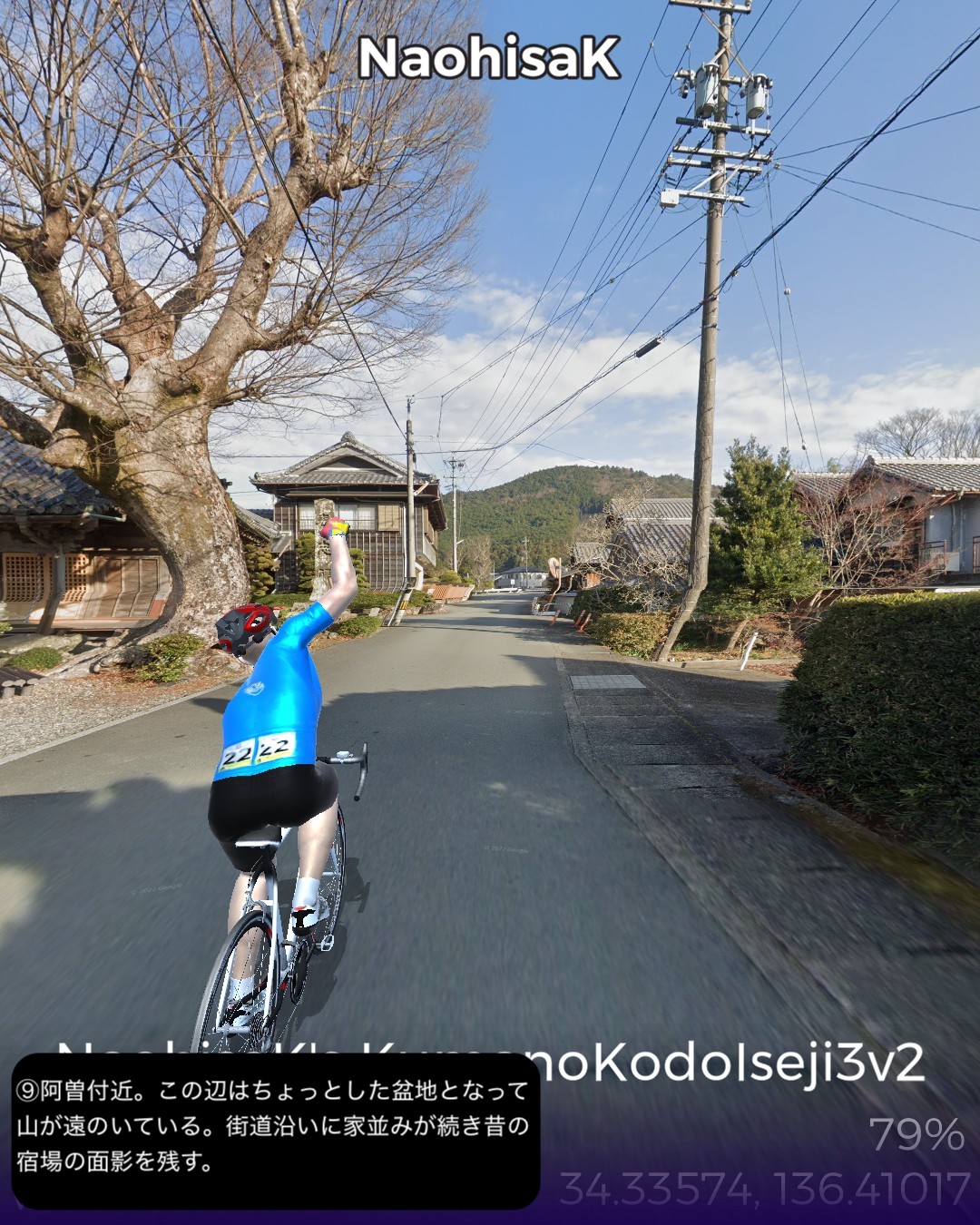 VRサイクリング 初瀬街道2日目。青山高原西側の伊賀地方の町青山の…