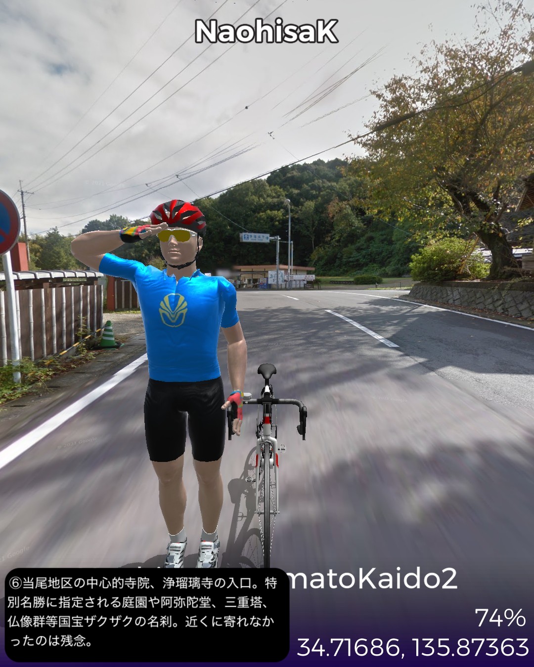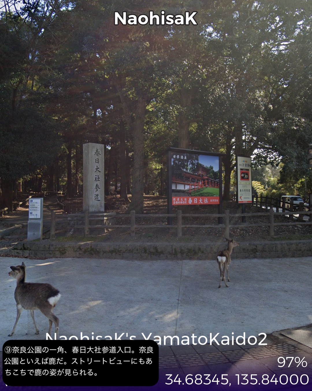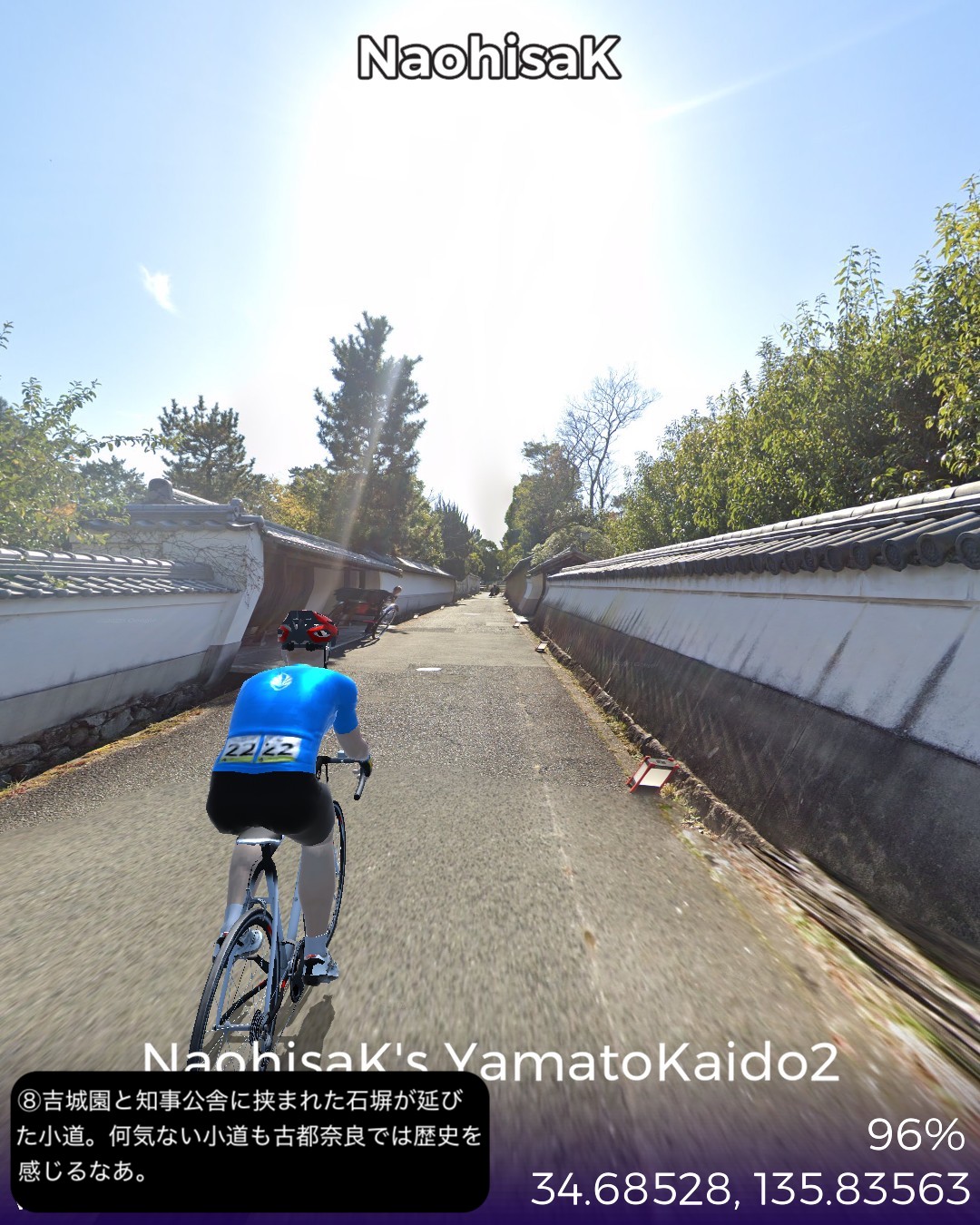 VRサイクリング、大和街道2日目。JR関西本線の月ヶ瀬口付近より奈良を目指すが、実はほとんど大和街道を逸脱して、柳生の里と当尾の岩船寺、浄瑠璃寺を経由するルートで奈良の東大寺の周囲を回り奈良公園を突っ切って春日大社に至る40kmの行程。この間、大和街道としては若干ルートの面白味に欠けるので、リアルに訪れたことのない柳生の里と当尾に寄り道してみた。これらの名所周辺でフォトジェニックな風景を期待していたのだが、今回はかなり肩透かしだったかな。良さげな場所から若干外れた場所を通っちゃってるのだよね。東大寺もぐるっと周囲を回ったが大仏殿を近くで見れる場所がなかった。唯一春日大社だけは中の中まで入ることができた。それでも途中通過してきた山里の風景には心和んだ。まあとにかく奈良まで来ました。次回からは暗越(くらがりごえ)奈良街道で再度大阪を目指すが、またまた懲りもせずその1日目は脱線寄り道名所巡り大会を予定。