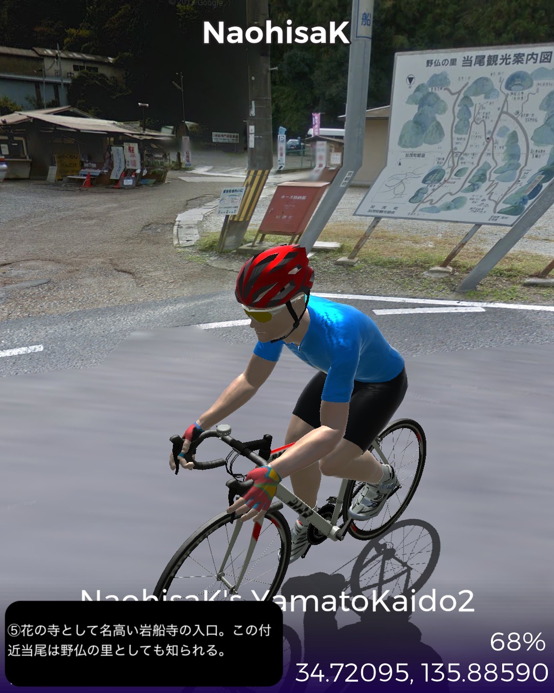VRサイクリング、大和街道2日目。JR関西本線の月ヶ瀬口付近より奈良を目指すが、実はほとんど大和街道を逸脱して、柳生の里と当尾の岩船寺、浄瑠璃寺を経由するルートで奈良の東大寺の周囲を回り奈良公園を突っ切って春日大社に至る40kmの行程。この間、大和街道としては若干ルートの面白味に欠けるので、リアルに訪れたことのない柳生の里と当尾に寄り道してみた。これらの名所周辺でフォトジェニックな風景を期待していたのだが、今回はかなり肩透かしだったかな。良さげな場所から若干外れた場所を通っちゃってるのだよね。東大寺もぐるっと周囲を回ったが大仏殿を近くで見れる場所がなかった。唯一春日大社だけは中の中まで入ることができた。それでも途中通過してきた山里の風景には心和んだ。まあとにかく奈良まで来ました。次回からは暗越(くらがりごえ)奈良街道で再度大阪を目指すが、またまた懲りもせずその1日目は脱線寄り道名所巡り大会を予定。