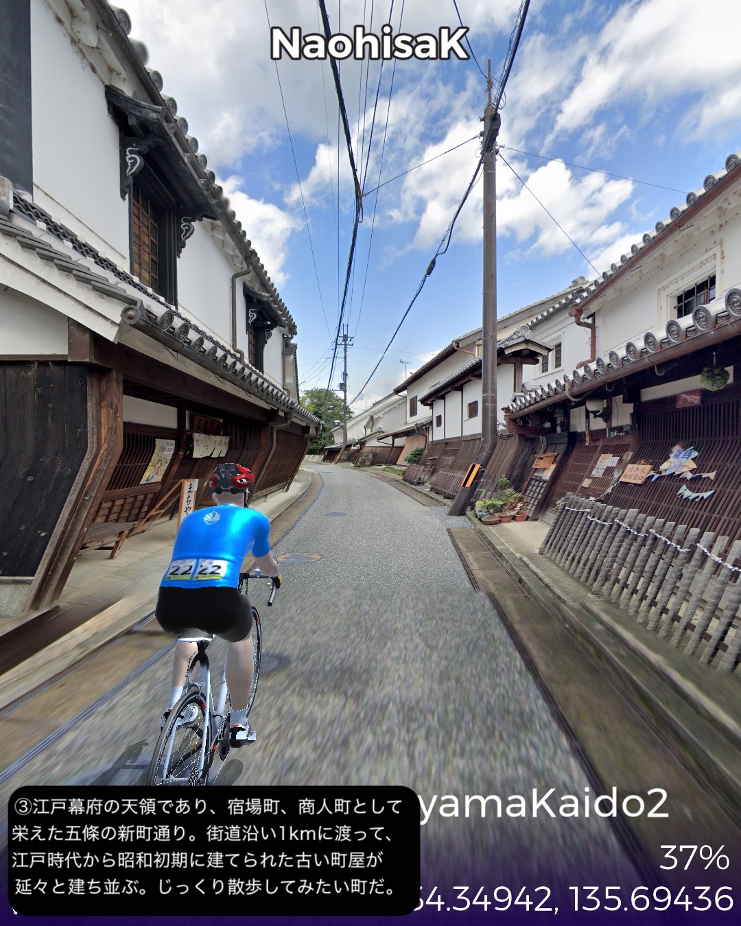 VRサイクリング 紀州街道1日目。大阪北浜を出発し日本橋、新世界、…