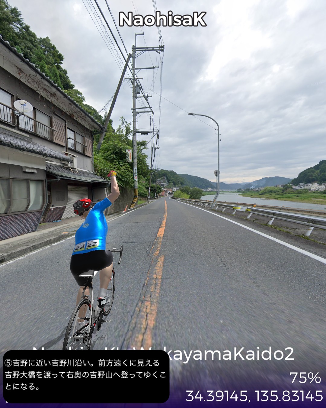 VRサイクリング、熊野古道紀伊路3日目 和歌山市の東端の紀ノ川北岸…