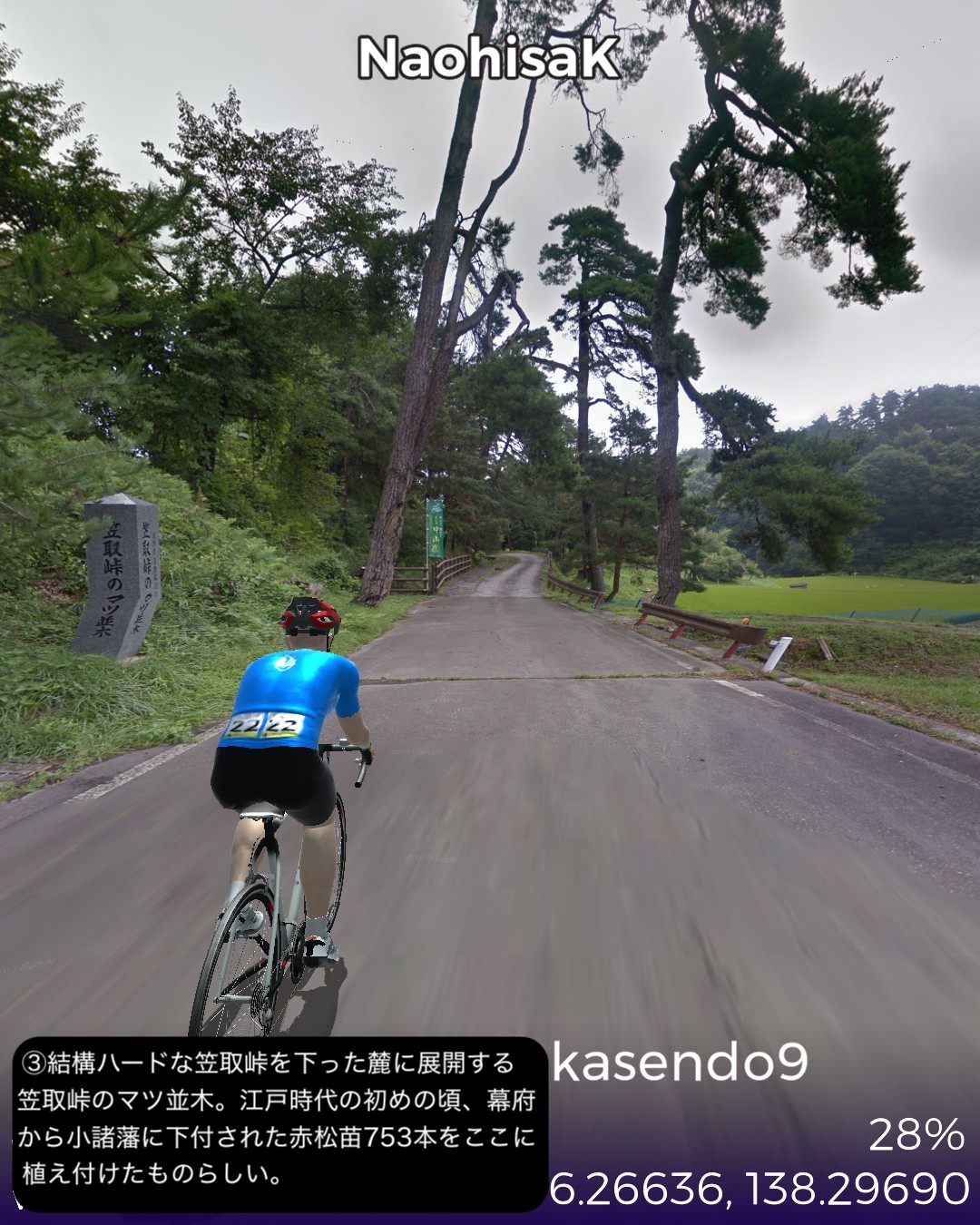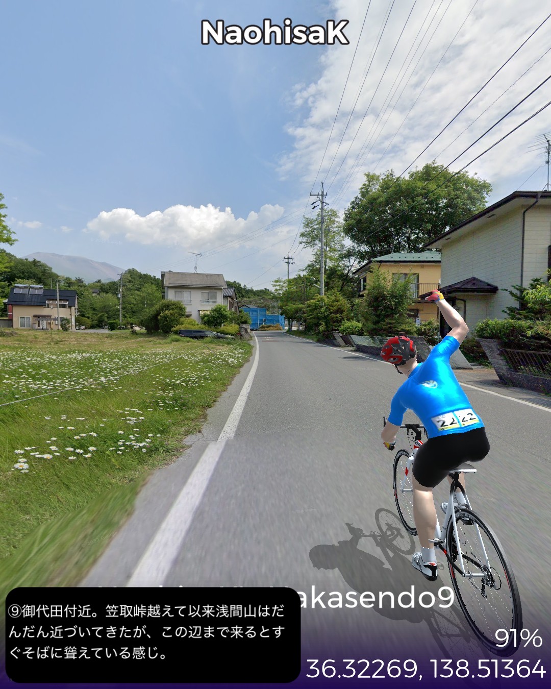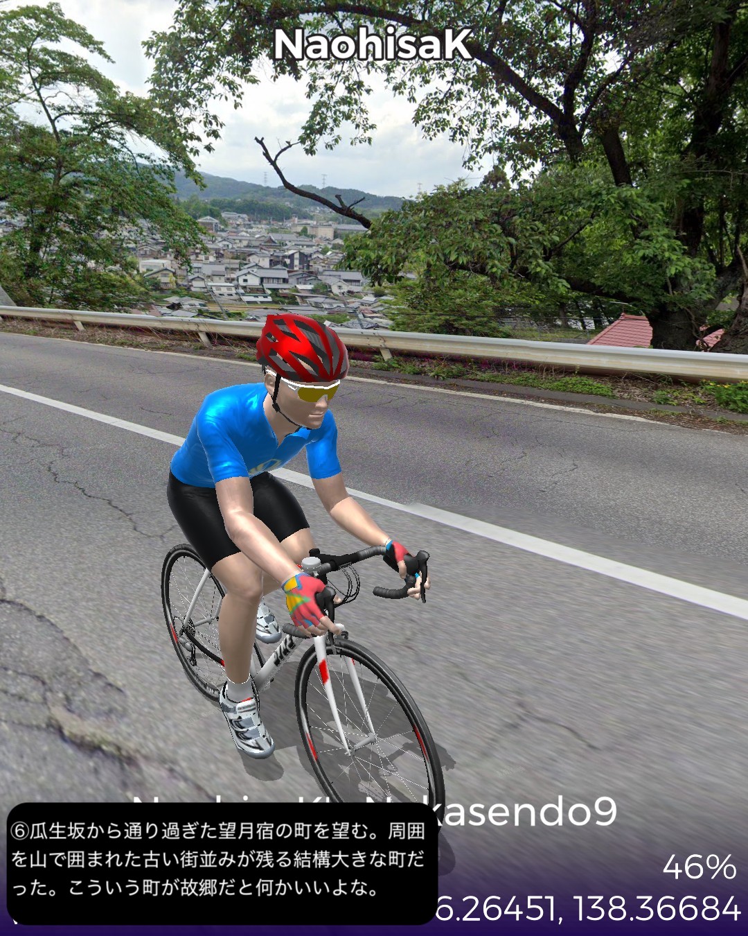 VRサイクリング 中山道9日目。これぞ中山道信濃路の巻。入れ替わり立ち替わりの宿場町。和田宿から長久保宿、笠取峠を越えて芦田宿、そこからは茂田井間宿、望月宿、八幡宿、塩名田宿、岩村田宿、小田井宿、と次々と通り過ぎる怒涛の宿場絵巻。ゴールは軽井沢間近のリゾートムードの追分宿という42kmの行程。どの宿場も街並みの保存を競って行っていて独自の雰囲気で中山道の街道ロマンを高めていて興味深い。その中でも間宿ながら起伏のある田舎の狭い道筋に白壁の土蔵や土塀の家が連なり独特の街道情緒が感じられて好きだ。実はリアル中山道歩きでここを通って魅了されていたのだ。その他、千曲川沿いに川魚料理の料亭が並ぶ塩名田宿も捨てがたい。軽井沢に八ヶ岳や霧ヶ峰、美ヶ原、小諸、上田などの著名な観光地に囲まれていながらこの中山道沿いのエリアは、エアポケットのように一般に知られていない地域であるが、逆に観光地でない分、昔ながらの日本の原風景、街道風景が保持されているのかもしれない。次回は軽井沢から碓氷峠を越えて上州路に下ってゆく。