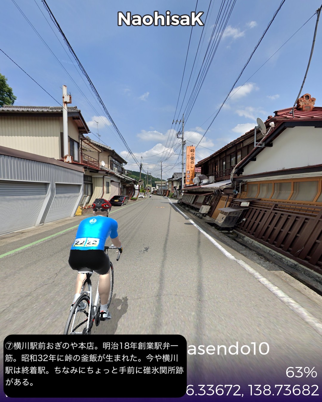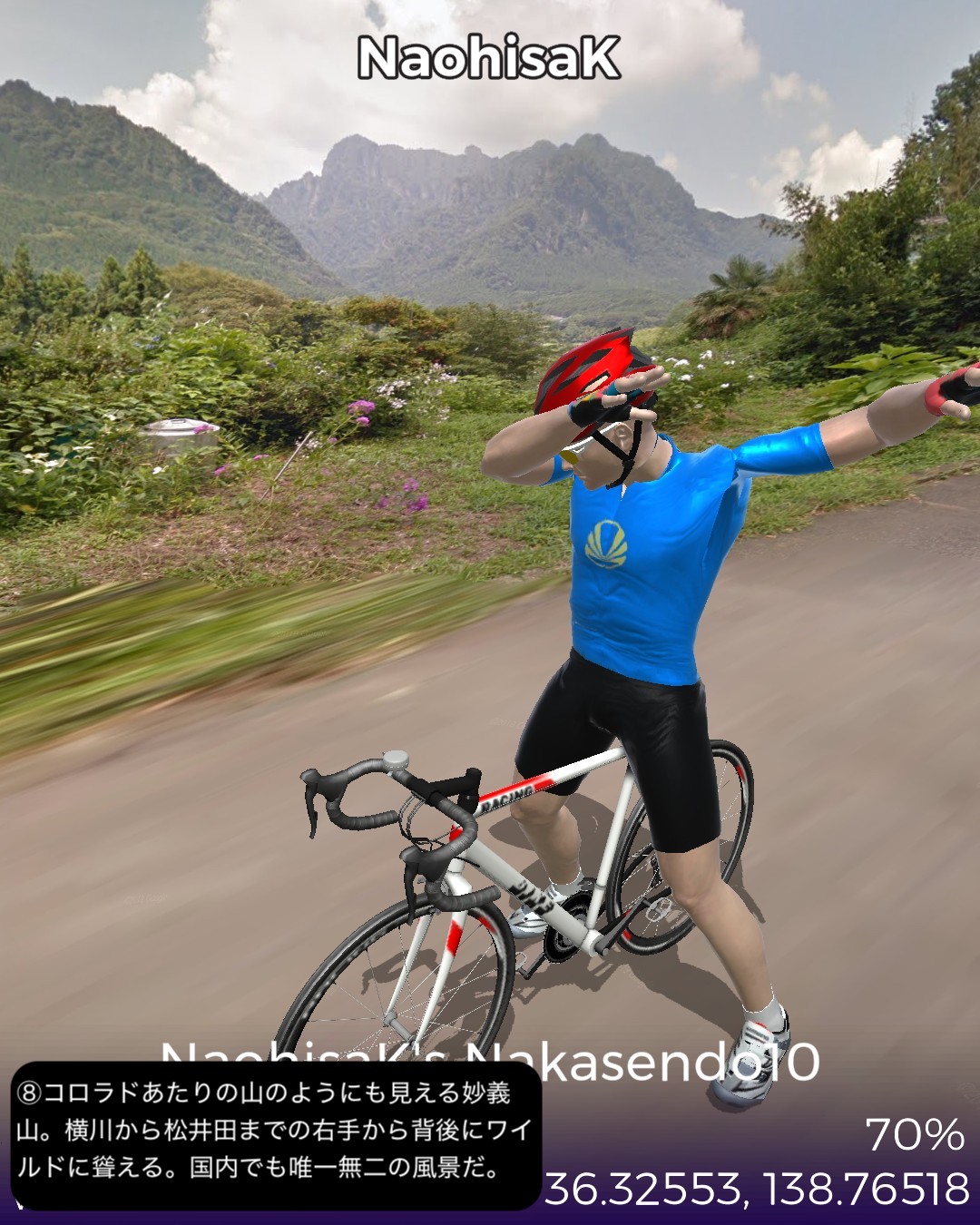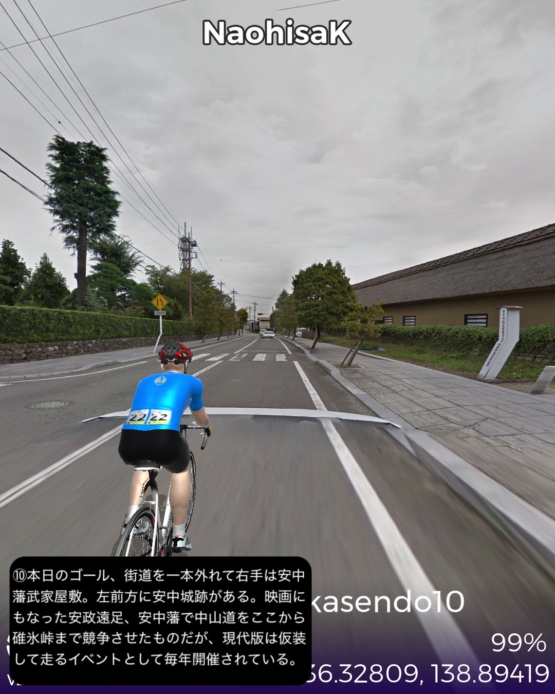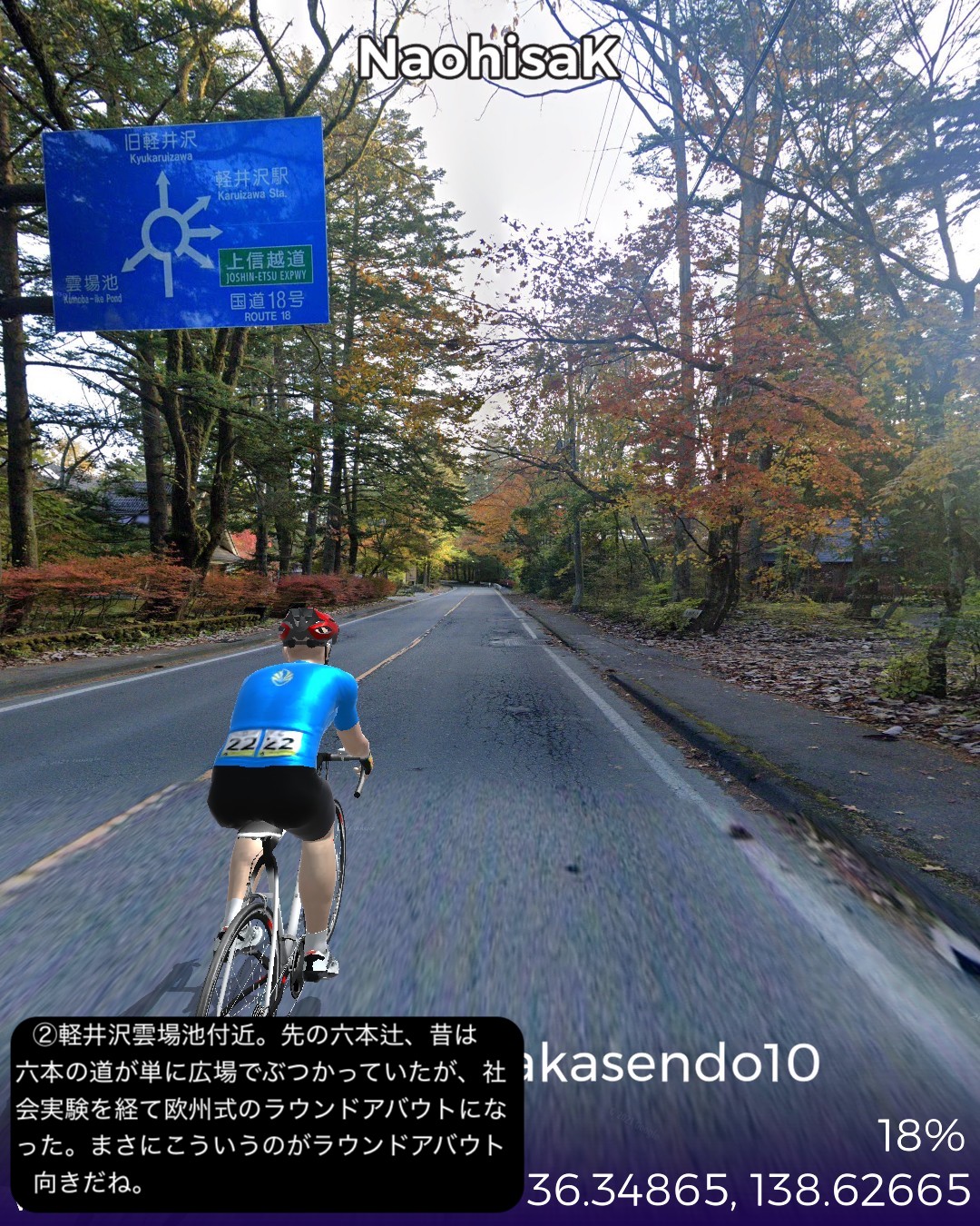 VRサイクリング 中山道10日目。追分宿を出発し、リゾート地軽井沢エリアの沓掛宿、軽井沢宿を通り、碓氷峠を越えて上州路へ下り、坂本宿、松井田宿を経由して城下町安中宿へ至る44kmの行程。軽井沢エリアはやはり街道情緒というよりリゾートムードだね。旧軽井沢銀座が実は宿場町だったというのは知らない人の方が多いのではないだろうか。その先碓氷峠を越えると群馬県、上州路に入る。碓氷峠の中山道旧道は街道随一の難所の山道で以前リアル街道歩きで通った時はその洗礼を受けたが、今回はルート設定ができないので国道18号旧道で下った。車でも碓氷バイパスか上信越道経由しか記憶がないので多分(VRではあるが)初めて利用することになったが、周囲の山や麓の眺めもさることながら、昔のアブト式鉄道の橋梁やトンネルが垣間見えたり、184ものカーブのダウンヒルも気分が良く飽きさせない。特に素晴らしかったのは碓氷第三橋梁。そびえ立つ四連アーチ式の煉瓦造りの鉄道橋の眺めは圧巻。紅葉の頃はさらに素晴らしいであろう。碓氷峠を下った後には右手に見える妙義山の異様とも言える山容を望みながら走る田舎道が、コロラドあたりの谷に迷い込んだかのような不思議な風景で飽きない。信濃路も良かったが上州路もなかなかのものだ。