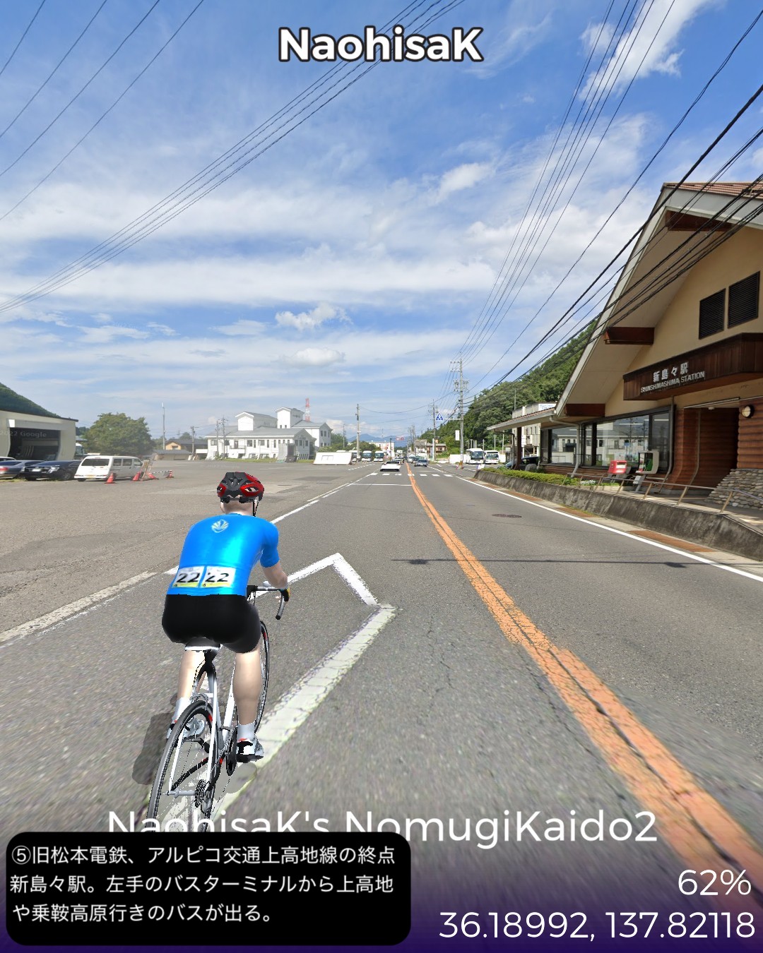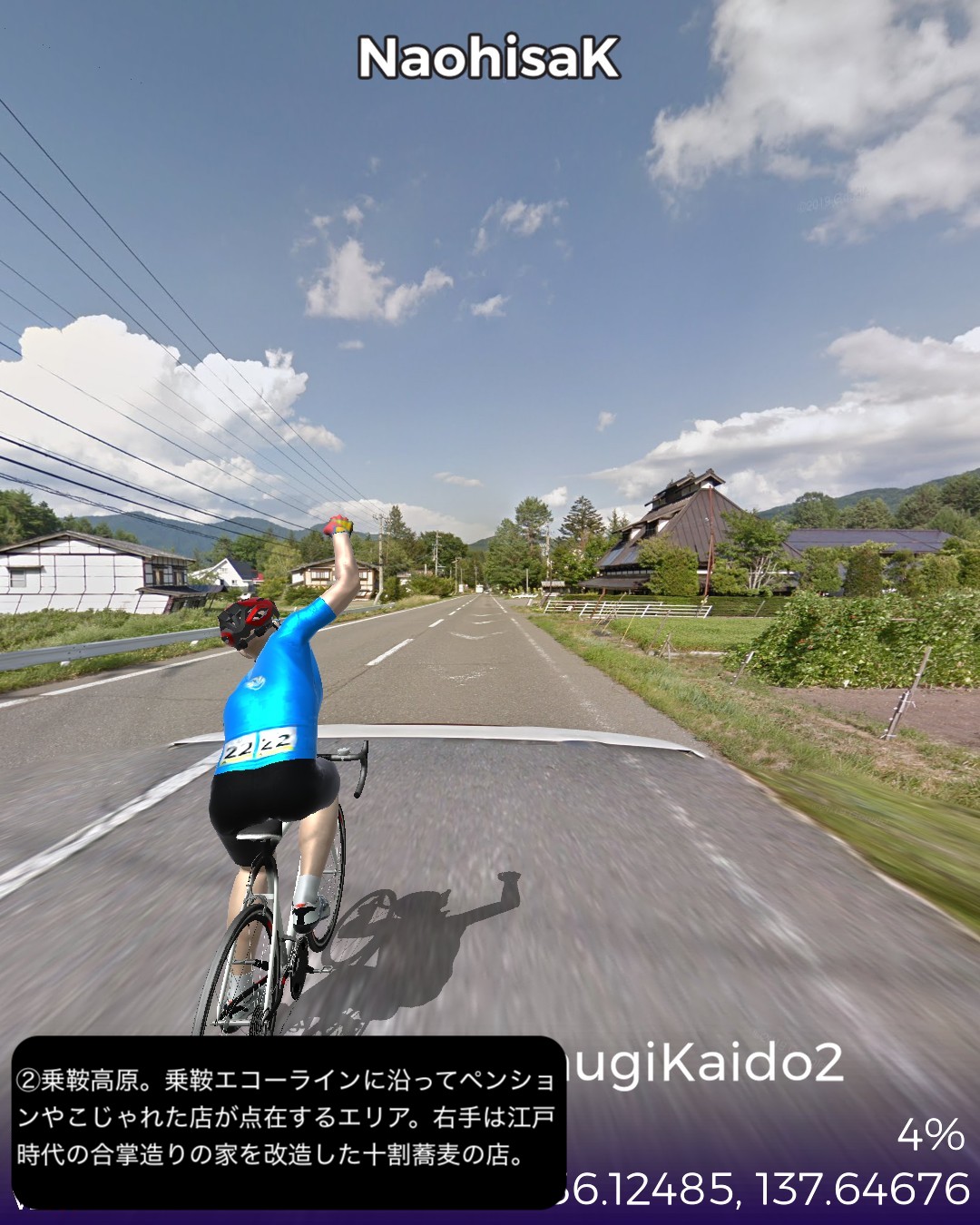 VRサイクリング、北国西脇往還2日目として麻績宿をスタートし聖高原…