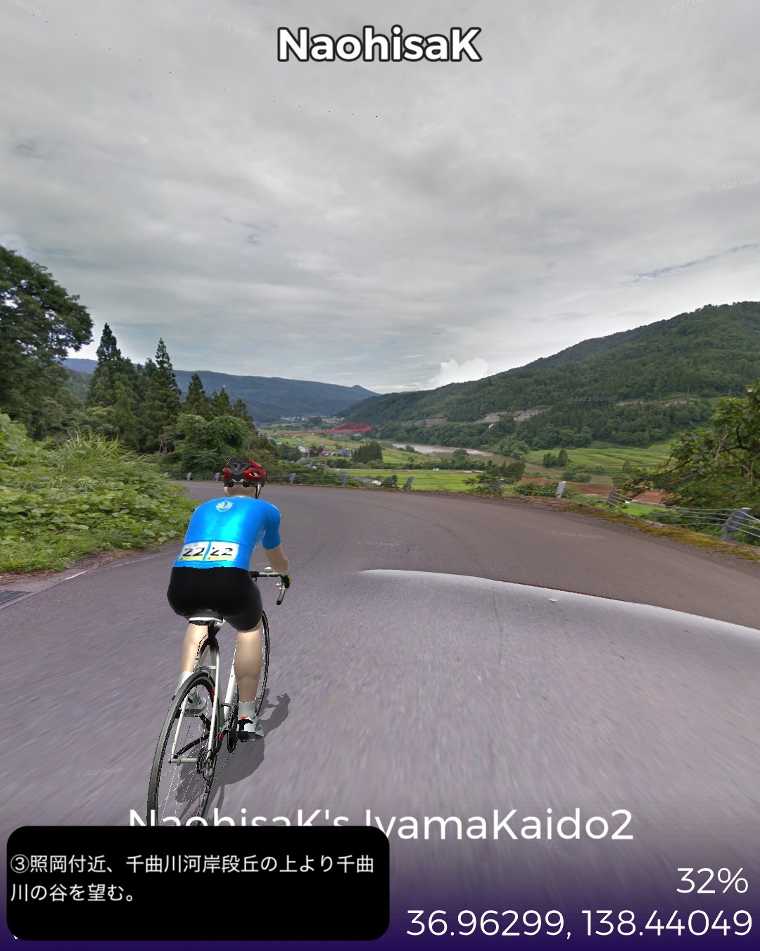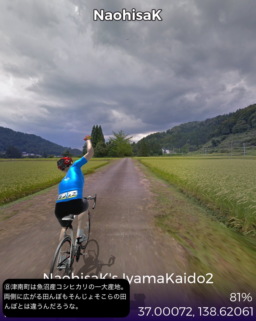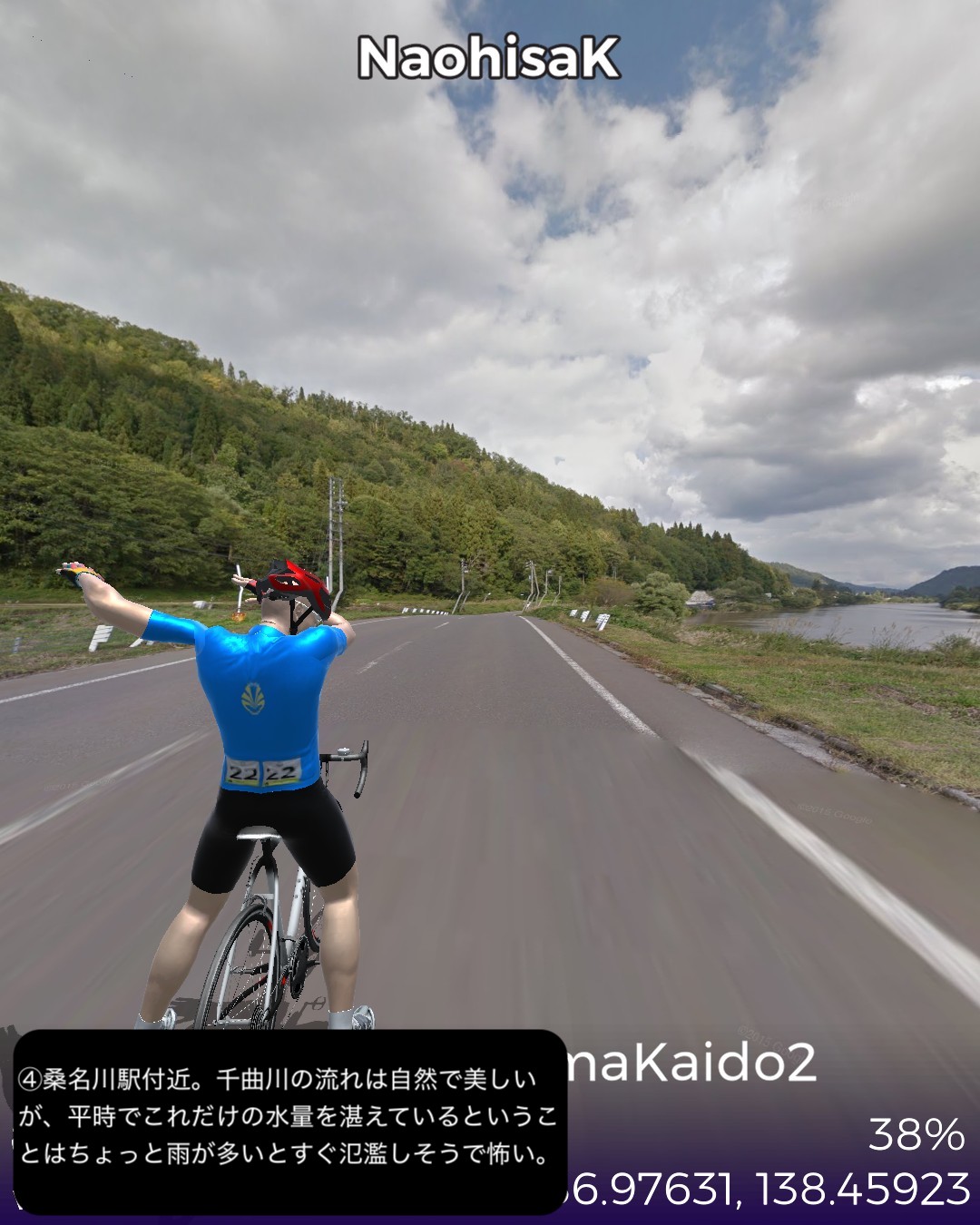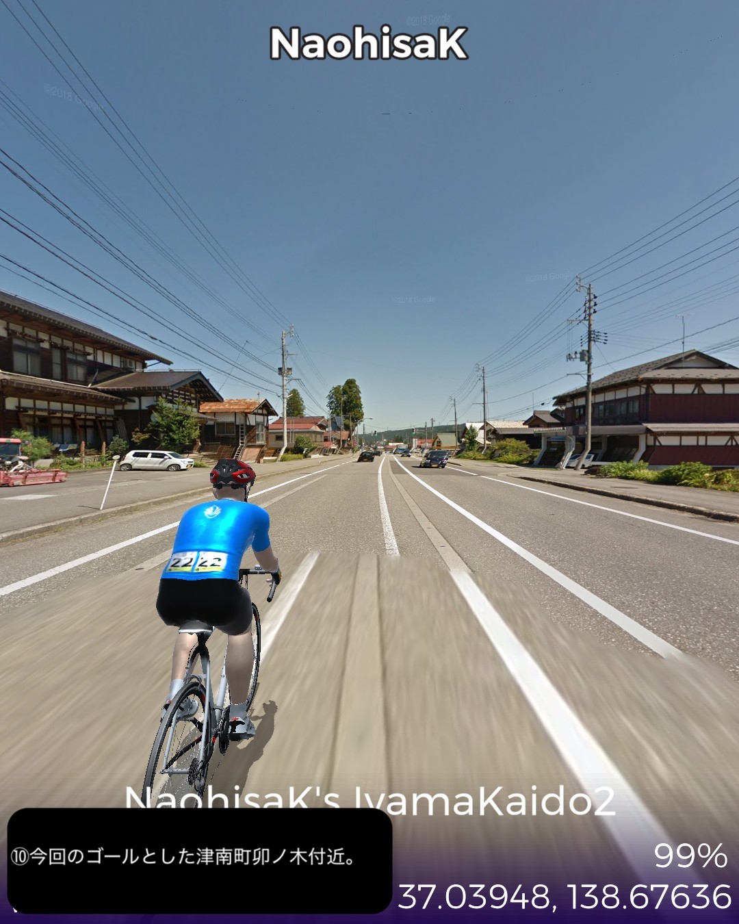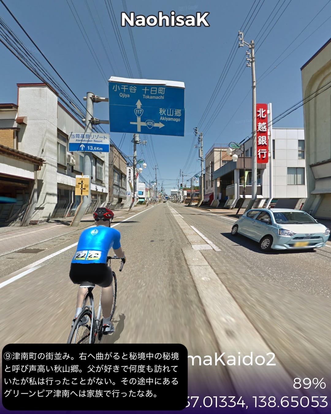 VRサイクリング 信濃国から越後国へさらに千曲川から信濃川と共に下ってゆく。飯山街道2日目として前回野沢温泉へ街道から外れた飯山市街北の常盤付近をスタートし野沢温泉の向かい側のスキー場戸狩温泉から千曲川の河岸段丘上のなべくら高原へ登り、また千曲川左岸を飯山線に沿って長野県最北部の栄村森集落まで進む。ここで新潟県(あるいは越後国)へ越境すると共に街道としては越後善光寺街道に入り1日目として魚沼産コシヒカリの一大産地津南町を進み卯ノ木集落をゴールとする39kmの行程。スタート地点ゴール地点とも大きな町でも宿場町でもない曖昧な場所となってしまったが、ルート全体もこれと言って名所史跡ビューポイント・ランドマークのないジミーな行程であった。前回から引き続き千曲川の流れに沿って進んでゆくのだが、下流にいくに従ってまるで上流に遡ってゆくかのごとく山地が深くなり流れが急になってゆくのが不思議であった。それからこの地帯では豪雪と千曲川・信濃川の氾濫に備えて3階建など高い家屋が多いのは興味深かった。さて次回からはリアルでもほとんど不案内な越後の国、新潟県を進んでゆく。