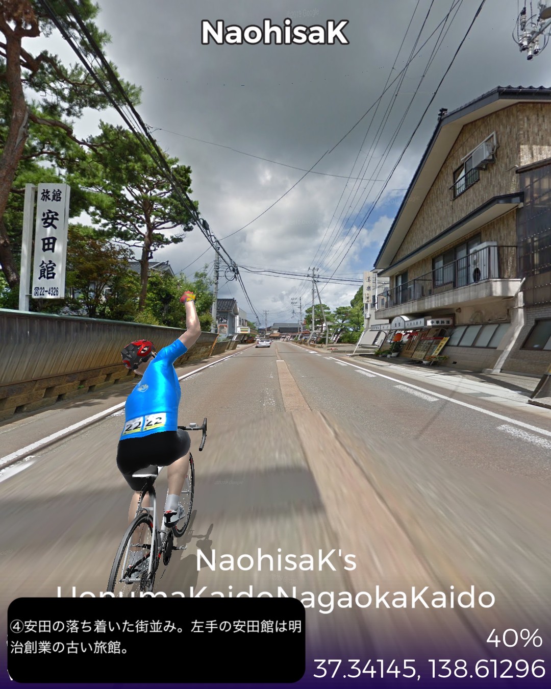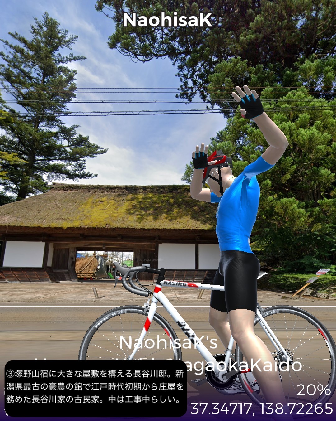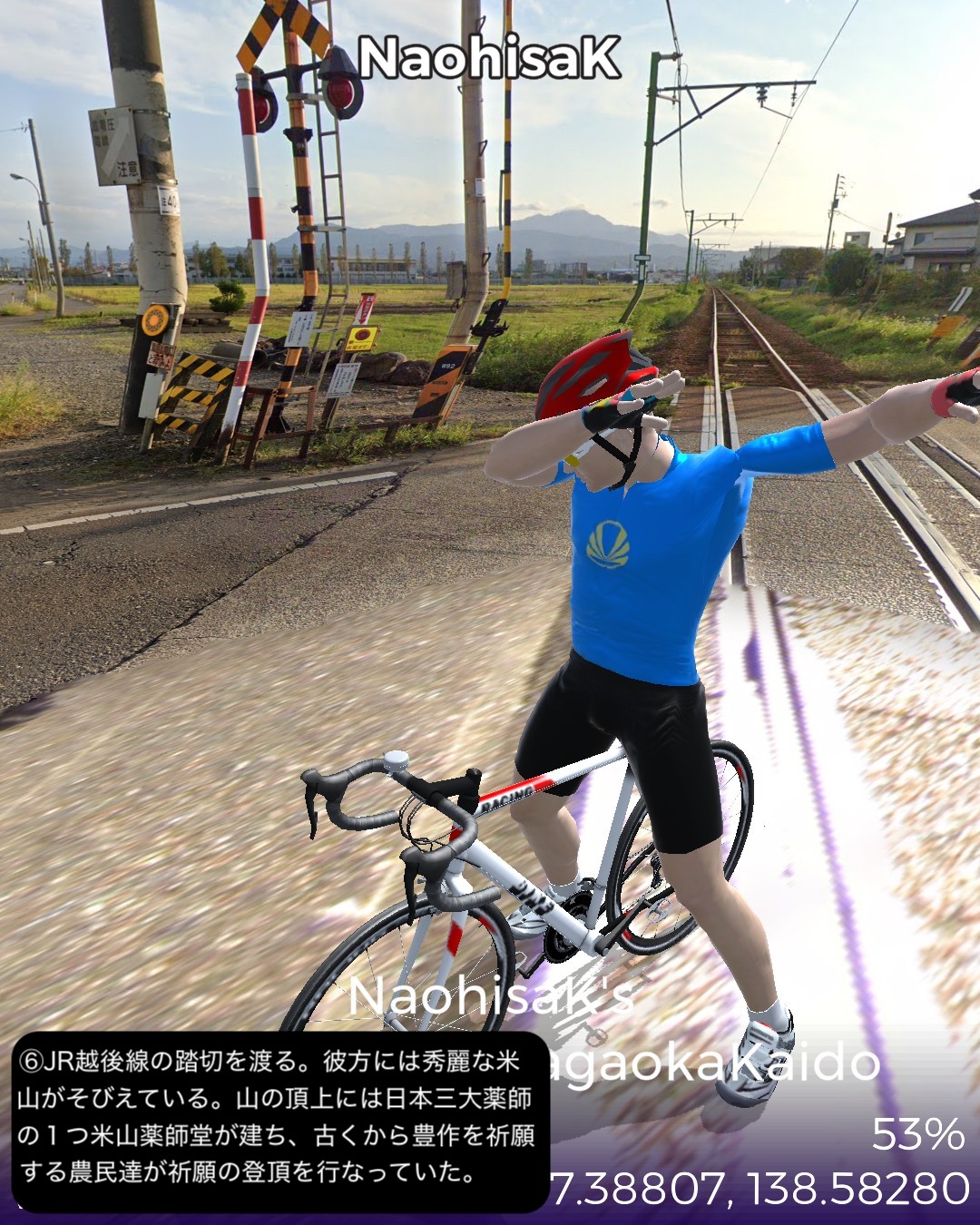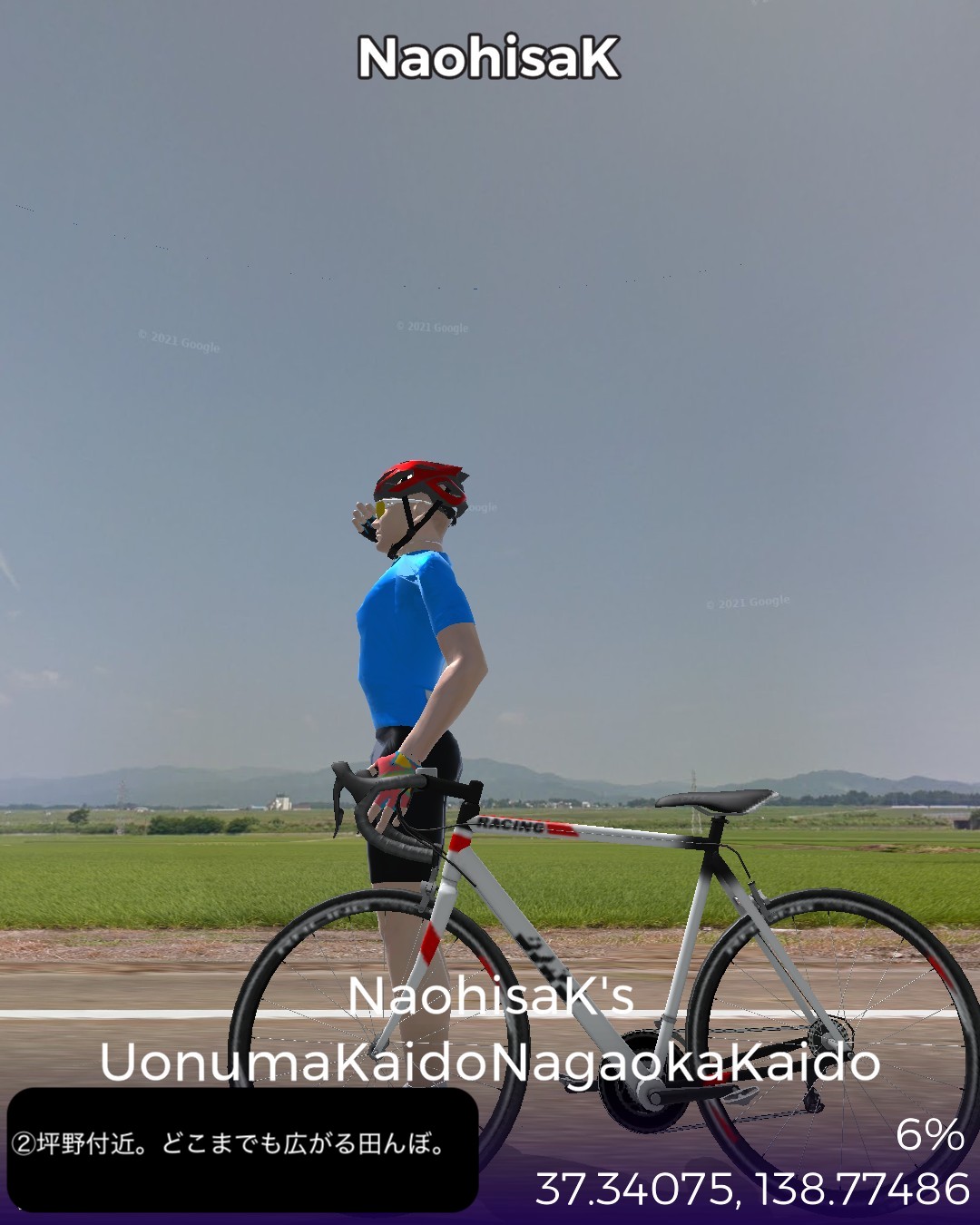 VRサイクリング 今回は越後の大きな町を2つの街道でリンクしてゆく。魚沼街道で錦鯉と織物の街小千谷を出発し西へ向かい海辺の町柏崎まで行き、そこから長岡街道でまた内陸の交通の要衝で新潟県第二の都市長岡へ至る71kmの長丁場。ルートとした内陸の小千谷・長岡と海辺の柏崎の間には深い山地はなくなだらかな丘陵と平野である。よって米どころ越後だけにルート全体に田園風景が広がっているが、マイナーな街道で旧道が定かでないこともありまたしても街道筋らしい名所・史跡には乏しかった。長岡街道沿いの柏崎の北東部、刈羽、西山地区も田園と丘陵しかないある意味殺風景な地域であったが、刈羽には海岸沿いに現在停止中の日本最大の原子力発電所がある。近々一部が再稼働するようだが今後の利用シナリオは日本のエネルギー供給において重要なキーファクタとなるかもしれない。その隣の西山地区には油田(あぶらでん)という地名がありもしやと思って調べてみると明治大正期には日本三大油田の1つ西山油田があった地域のようだ。今は地名以外に痕跡も見当たらなかった。古今のエネルギー供給地となっていることが興味深い。ちなみに西山地区はかの田中角栄氏の生家があって田中角栄記念館というのが建っている。長岡は郊外が広い都市で市街地から遠いところから家並が続いており、また通り沿いの郊外店舗が他の地域に比べて妙に大きいのが印象的だった。そして有名な長岡花火大会が開催される信濃川の河原は対岸が霞むほど広い。さすが日本一の川の下流。さて次回はさらに新潟へ向かって進んでゆく。