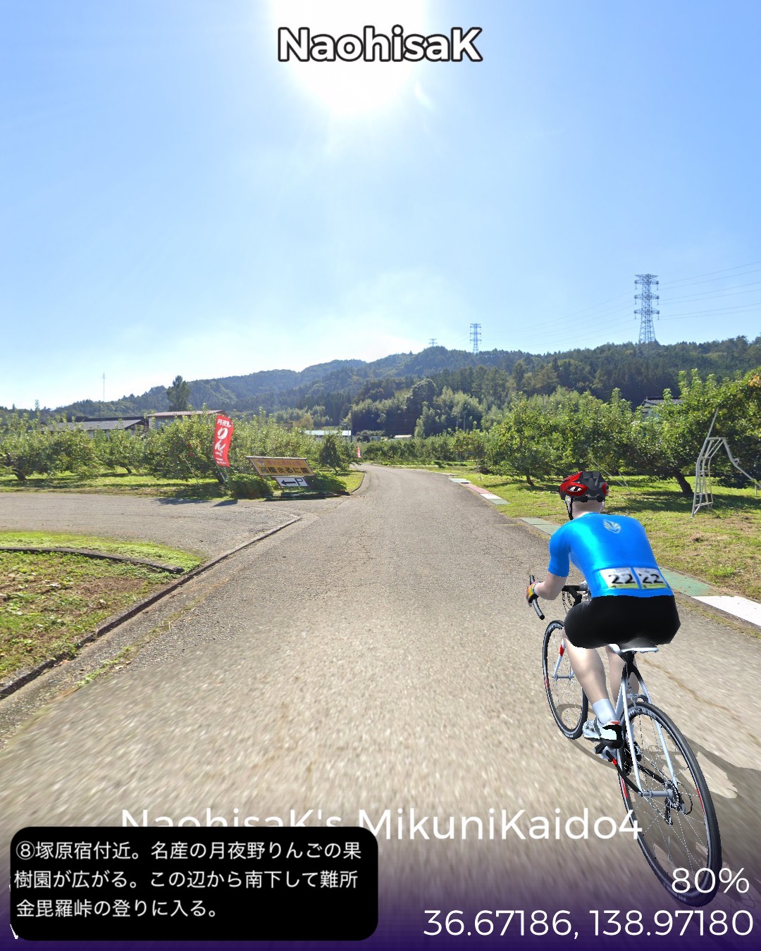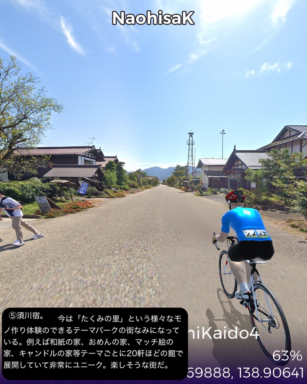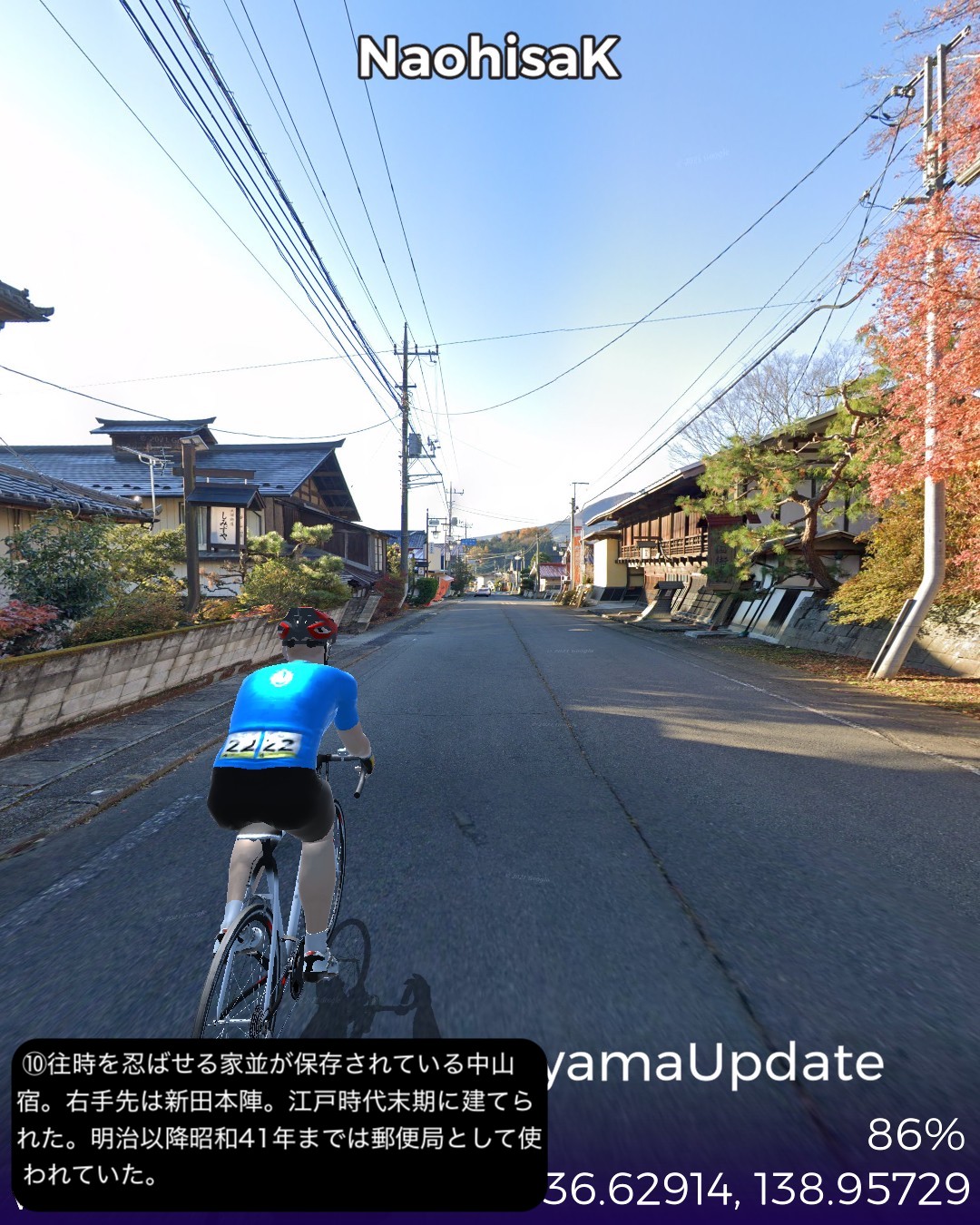 VRサイクリング 中山道10日目。追分宿を出発し、リゾート地軽井沢…