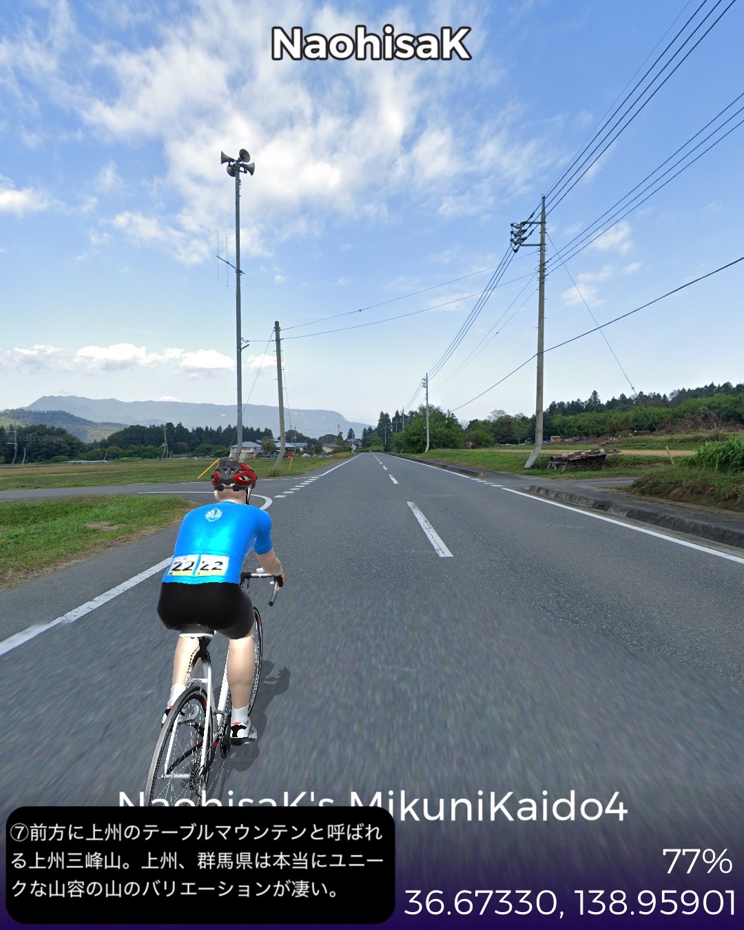 VRサイクリング 三国街道5日目。上越国境から連なる山地から関東平…