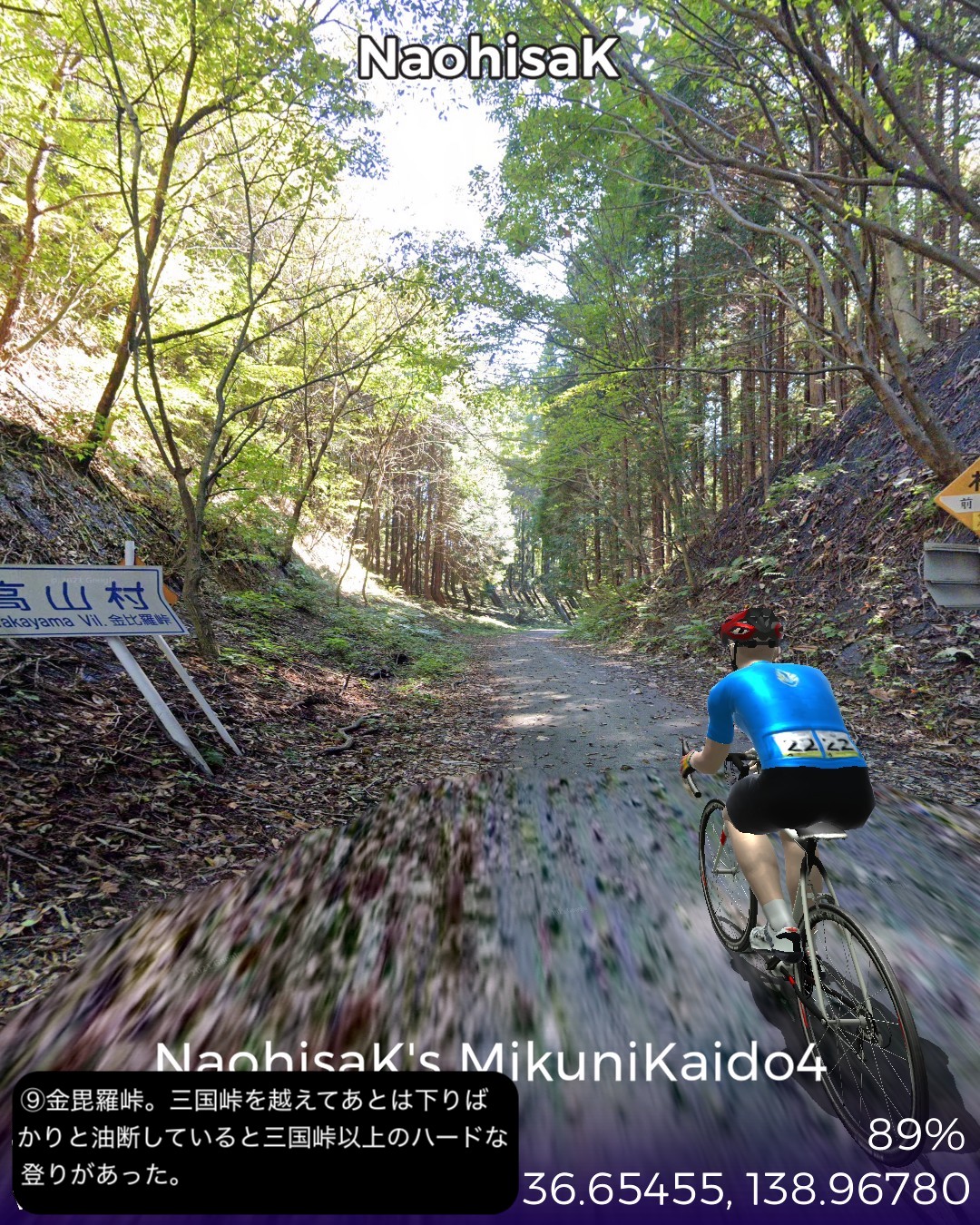 VRサイクリング、中山道6日目 木曽路をとにかく進んでゆくの巻。日…