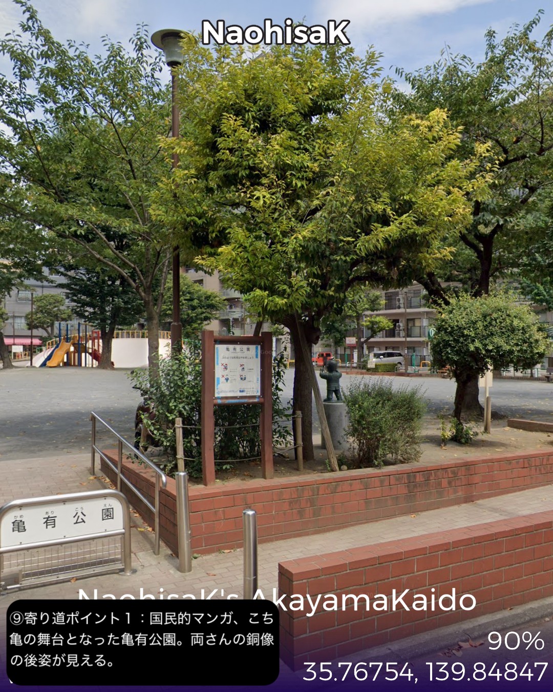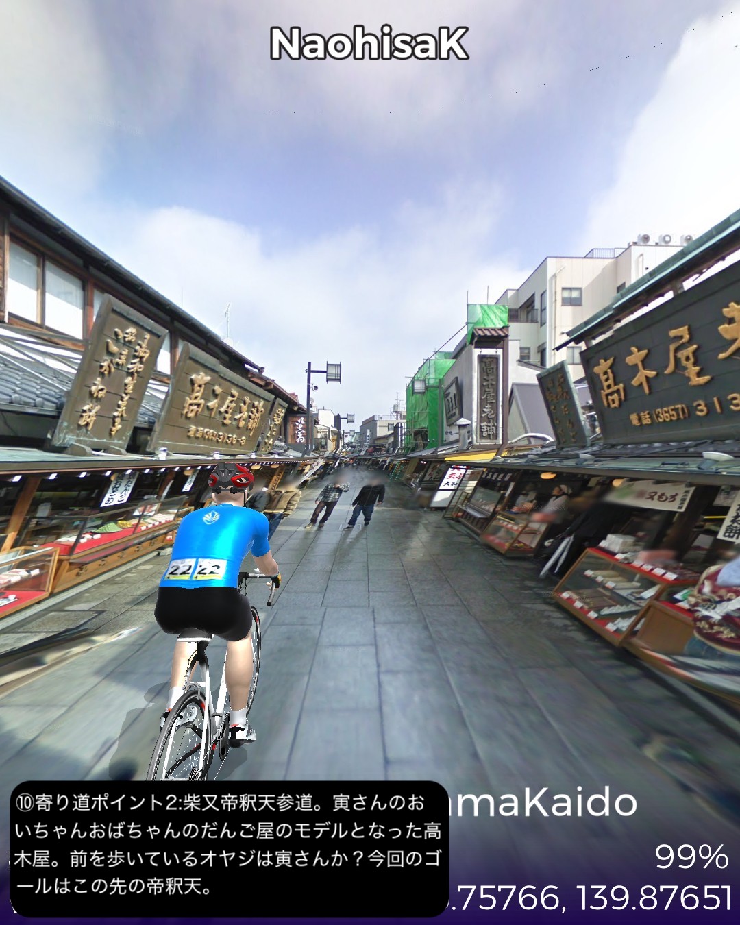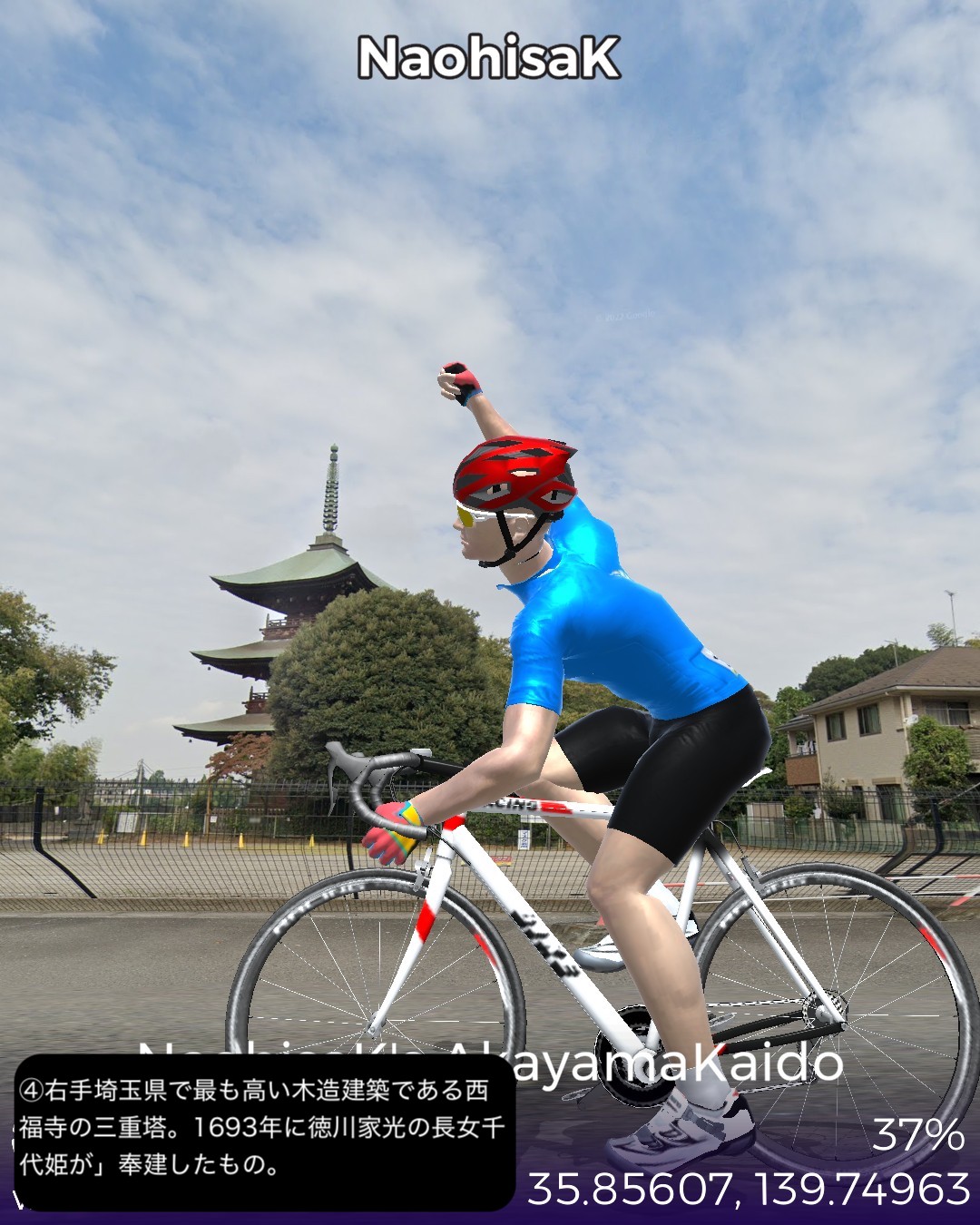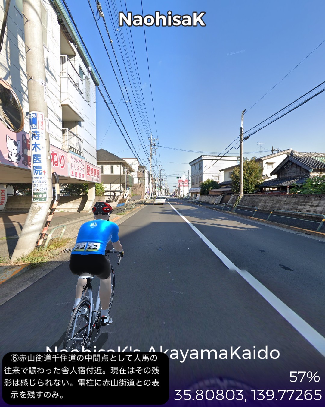 VRサイクリング 赤山街道の3つの道筋のうち越谷道から千住道へ繋げて埼玉県東部の田園地帯から東京都内の下町に入る回。越谷道の端点杉浦陣屋のある松伏を出て越谷を通り外環川口東IC近くにある赤山城址(赤山陣屋)に至る。そこから千住道に入って足立区の舎人を通り、ちょっと脇道に逸れて西新井大師に参拝した後千住道終点の小菅。さらに次回からの鎌倉街道下道へ繋がる中川橋へ至る。そこから先は寄り道モードで柴又帝釈天前まで進むトータル38kmの行程。赤山街道は非常に特殊な成り立ちである。江戸幕府の関東全域の天領を治める要職、関東郡代を代々継承した伊奈氏の居城、赤山城(赤山陣屋)を中心に3方向に赤山街道が整備された。与野方面へ向かう大宮道、越谷方面へ向かう越谷道、葛飾方面へ向かう千住道があった。伊奈氏とその家来達は傑出した土木技術を有し、単に天領を治めるだけでなく、治水や新田開発の工事を受け持った。赤山街道は、赤山陣屋という本拠地から各地域の拠点を結び物資、資材の運搬などにも利用された。次回から葛飾区の中川橋をスタートして鎌倉街道下道を辿って再度鎌倉を目指す。