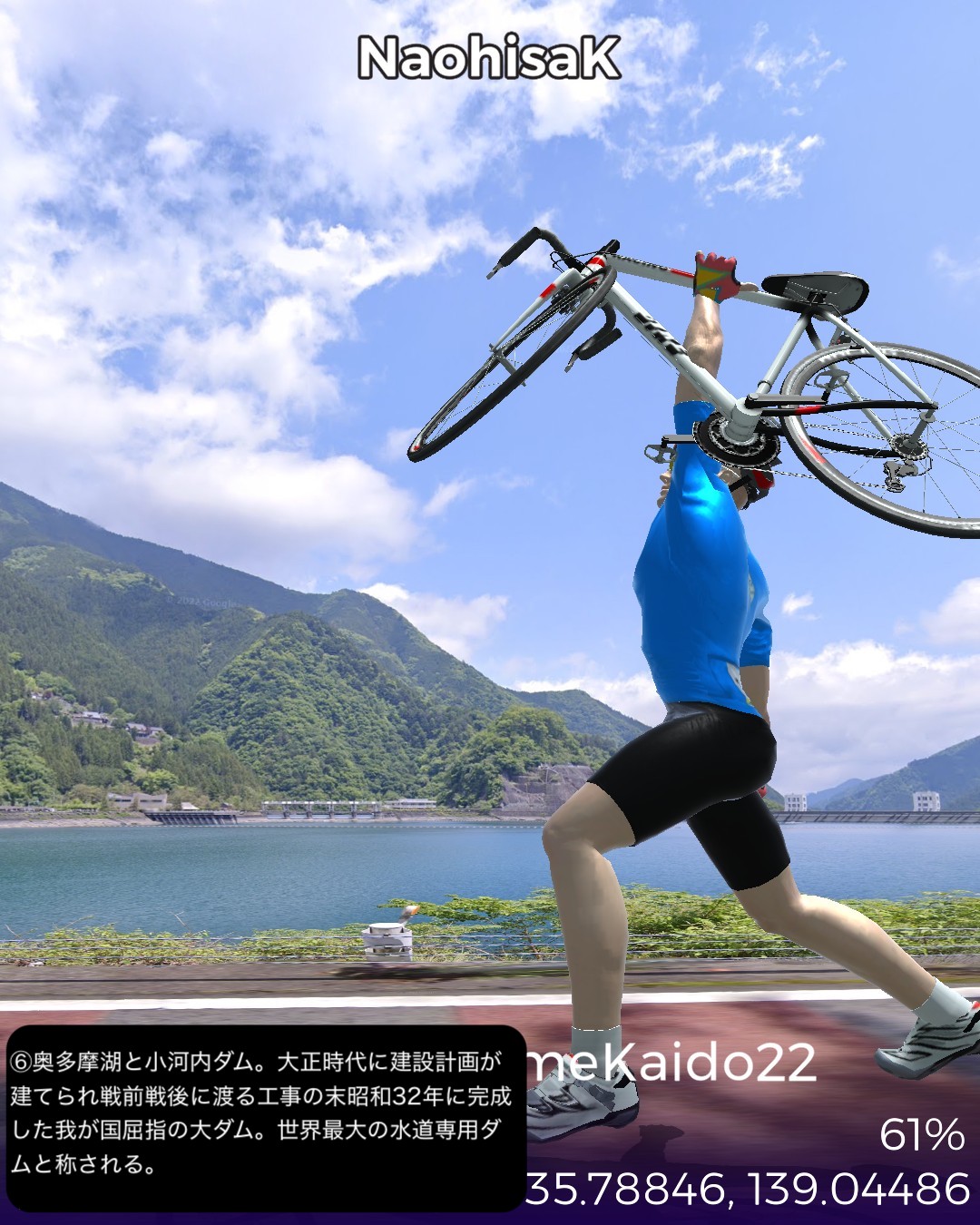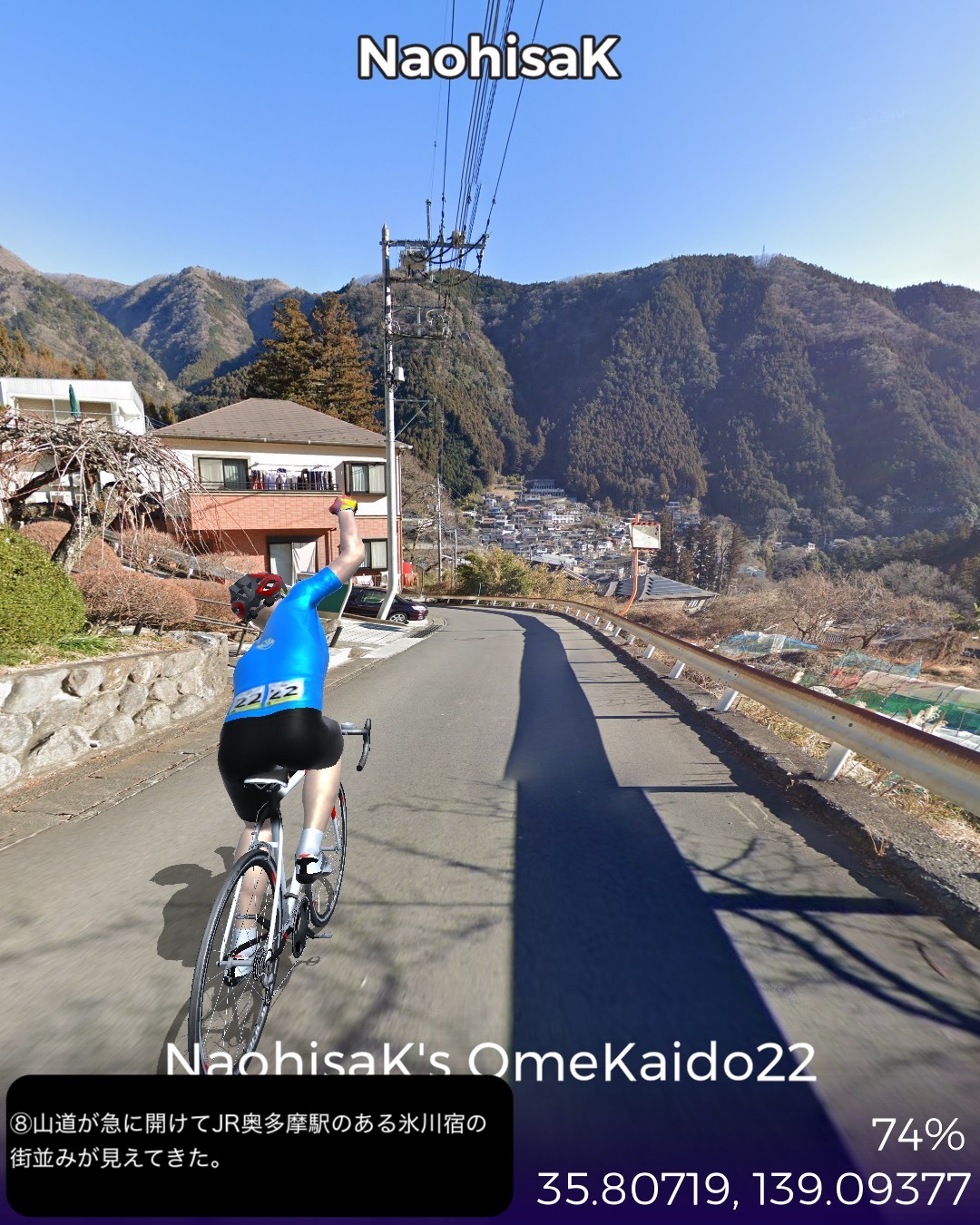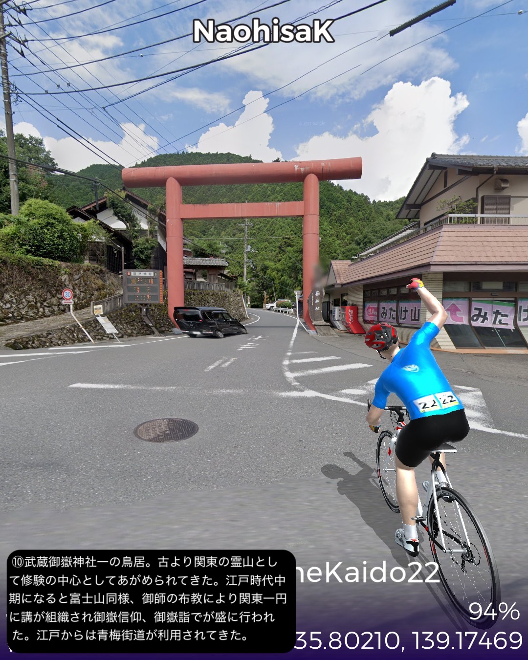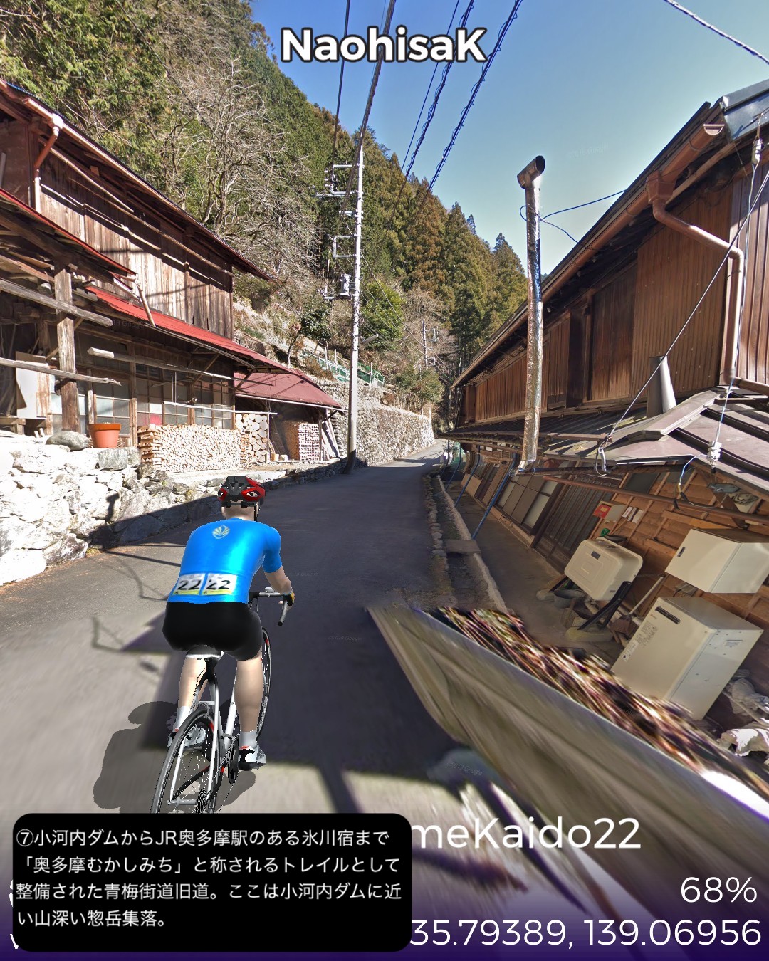 VRサイクリング、3/1以来久々に戻ってきた青梅街道2日目。甲州街道吉野宿のあった藤野を出発し北西へ向かう。のどかな山里が続きいくつかの低い峠を越え、小菅村を経て奥多摩湖の奥に到達。ここから青梅街道に入り奥多摩湖北岸を通り抜け小河内ダムを越えると深い谷間の旧道を通りJR青梅線の終着駅奥多摩駅のある氷川宿。ここからは線路に沿った道に沿って御嶽駅まで行きそこから街道を外れて武蔵御嶽神社へ向かう。神社の本殿のある山の上までは行けず御嶽ケーブルの山麓駅を終点とする、またまた超長丁場73kmの行程。小河内ダムから氷川宿までは「奥多摩むかしみち」と名付けられたトレイルコースとして整備された青梅街道旧道をゆく。ここが東京都とは思えないほど山梨に負けない深山幽谷の世界が素晴らしい。実は15年ほど前にこの道を奥多摩駅から小河内ダムまでウォーキングしたので記憶に新しかった。参詣と巡礼シリーズの一環として武蔵御嶽神社をゴールとした。武蔵御嶽神社も古より関東の霊山として信仰を集めてきた。富士山、大山と同様御師が布教活動を行い、関東一円に組織された御嶽講と繋がって江戸時代には盛んに御嶽詣でが行われた。その参詣道となったのが青梅街道である。