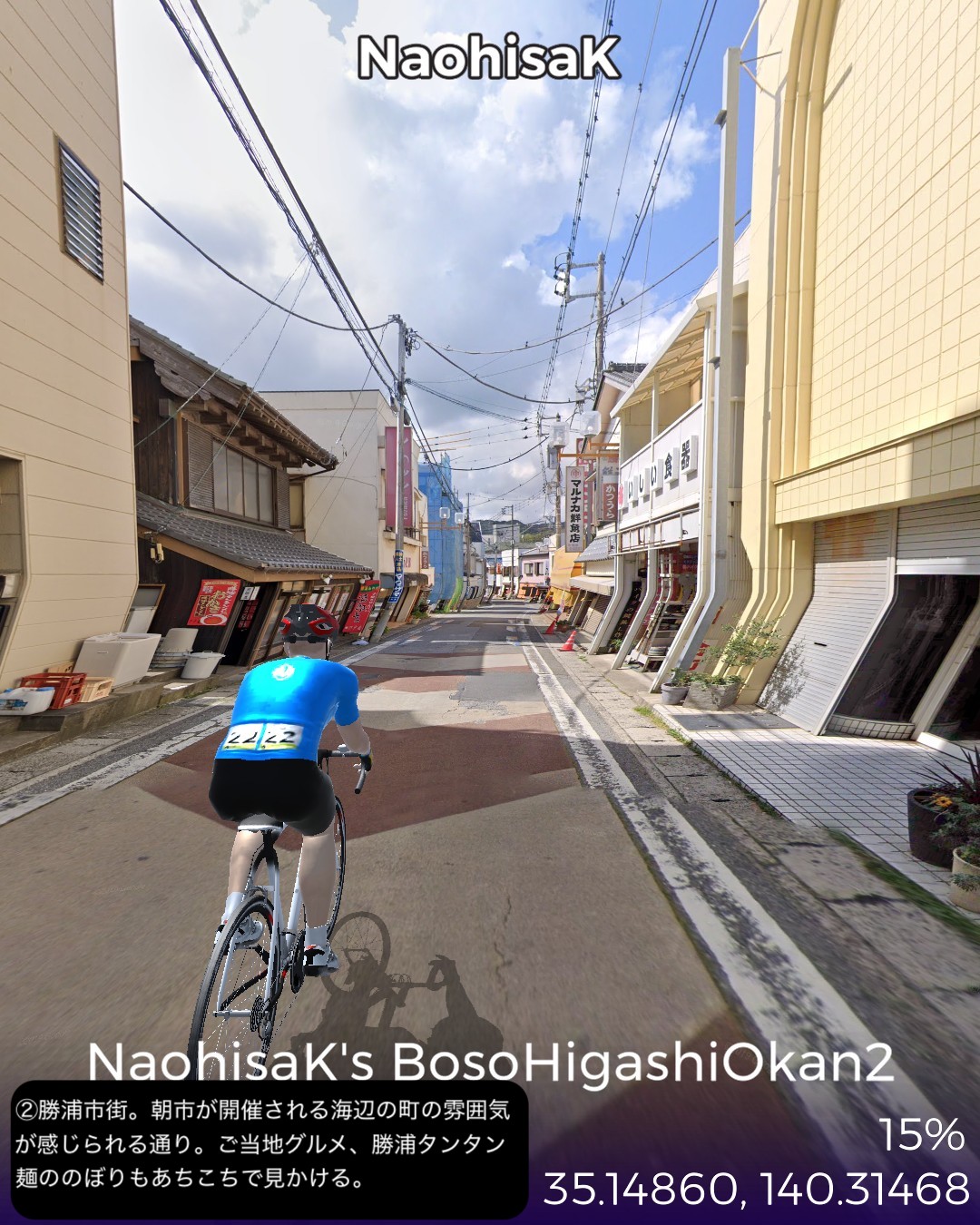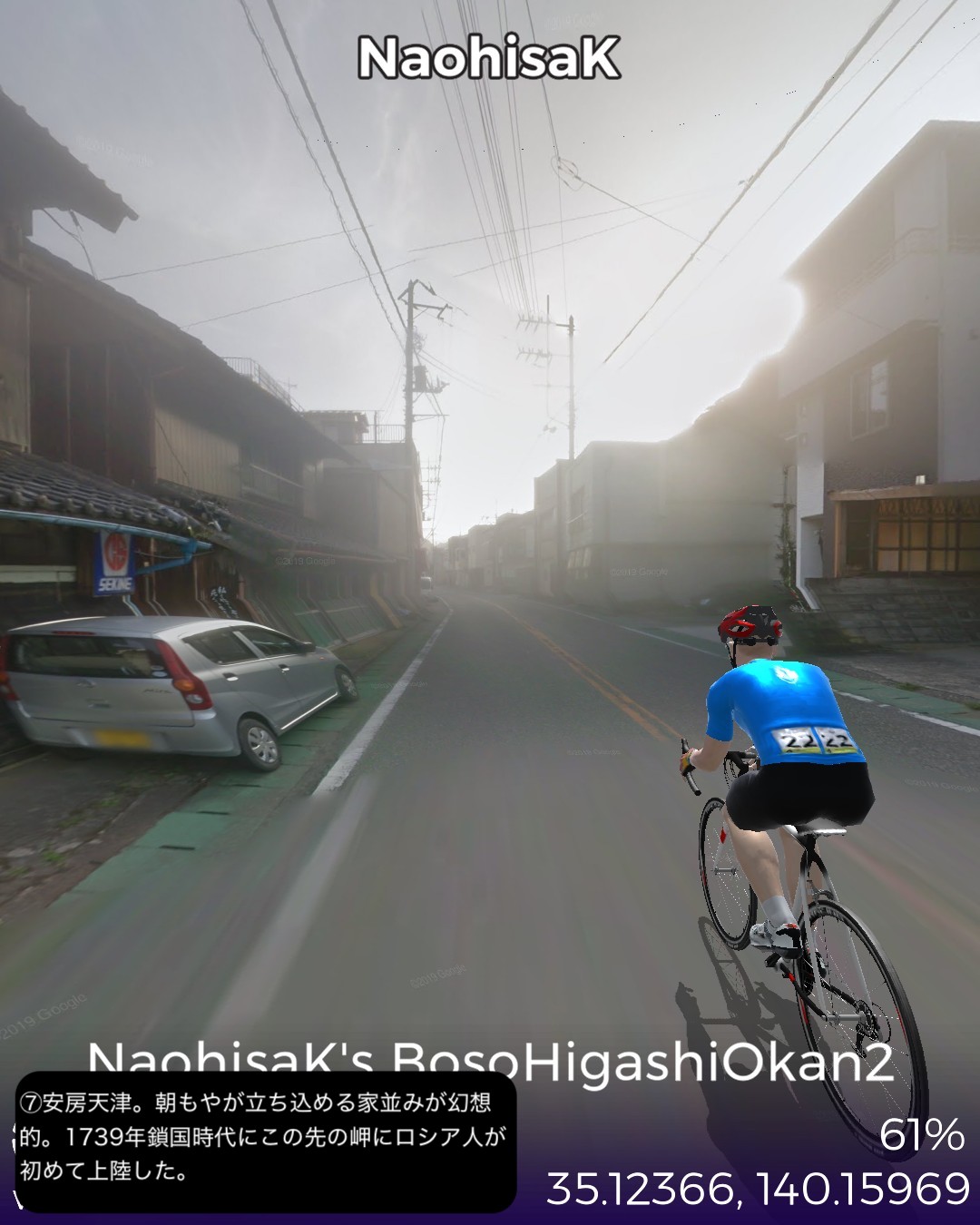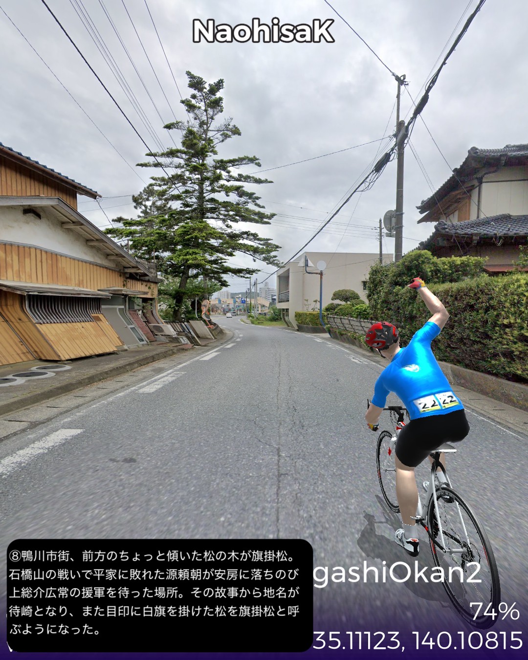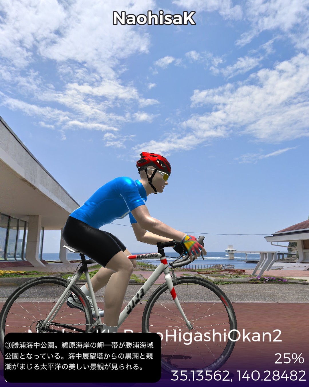 VRサイクリング 房総東往還2日目。いよいよ外房のゴールデンルート。御宿を出発し、今回はずっと海岸沿いの絶景街道を進む。朝市と坦々麺の町勝浦、日蓮宗の聖地と真鯛の町小湊、房総一の観光スポット鴨川シーワールドを有する鴨川を経て、花畑の町江見をゴールとする43kmの行程。国道から離れてほぼ海岸線に沿った旧道を走ったので絶景の海岸美と海岸沿いの漁港や鄙びた集落を愛でた今までのルートでもベスト10に入りそうな神回であった。首都圏に近いので海水浴場などの行楽地、リゾート地のイメージで縛られているが、紀州や九州、四国に負けない海岸美は再認識されるべきであろう。特に「おせんころがし」というおどろおどろしい地名のついた上総と安房の国境地帯の断崖絶壁の道は悲話の伝説とミステリアスな現代の殺人事件も背景にインパクト大であった。次回は早くも館山から内房へと進む。
