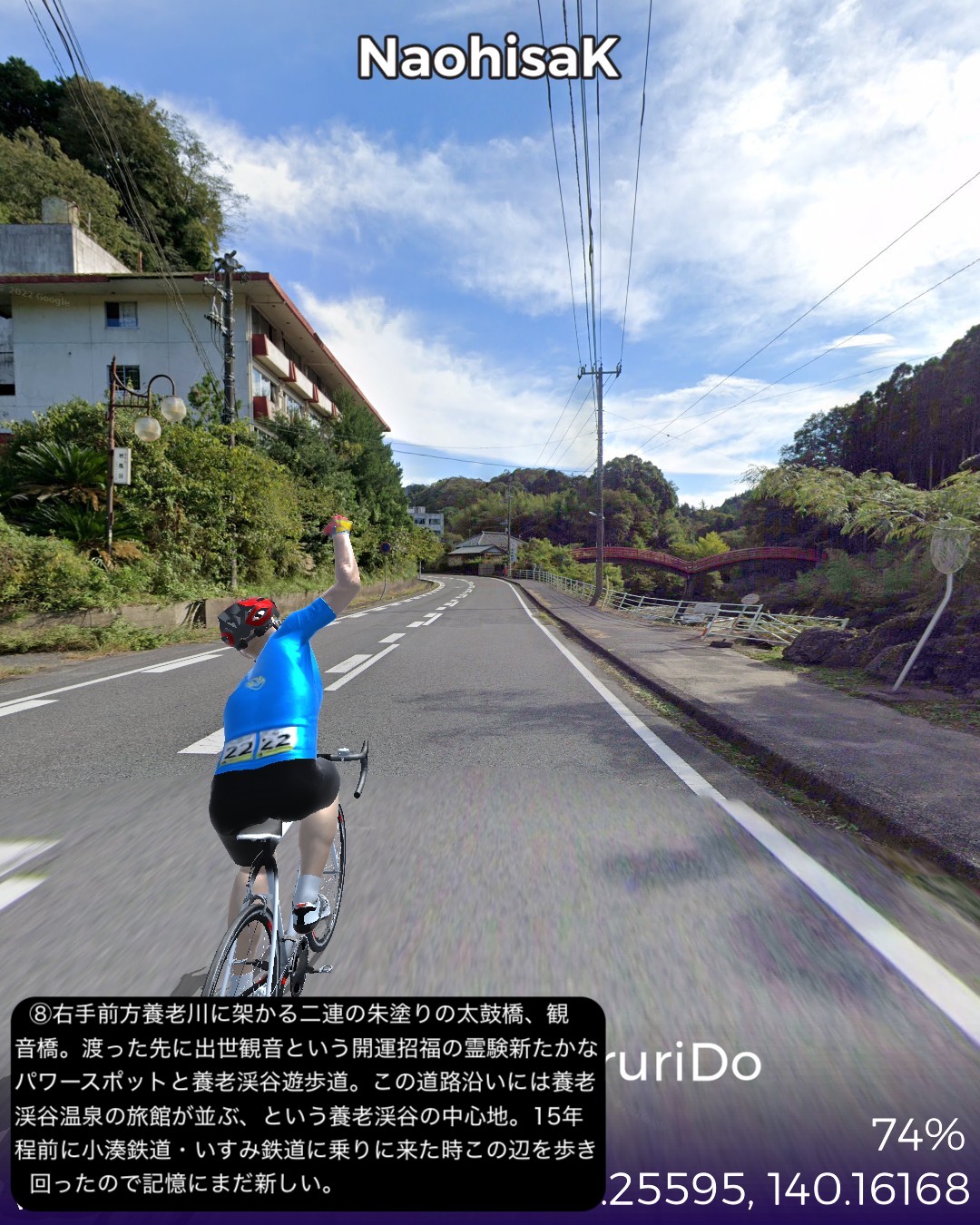 VRサイクリング 成田街道2日目。参詣目的地の成田山新勝寺へ辿り着…