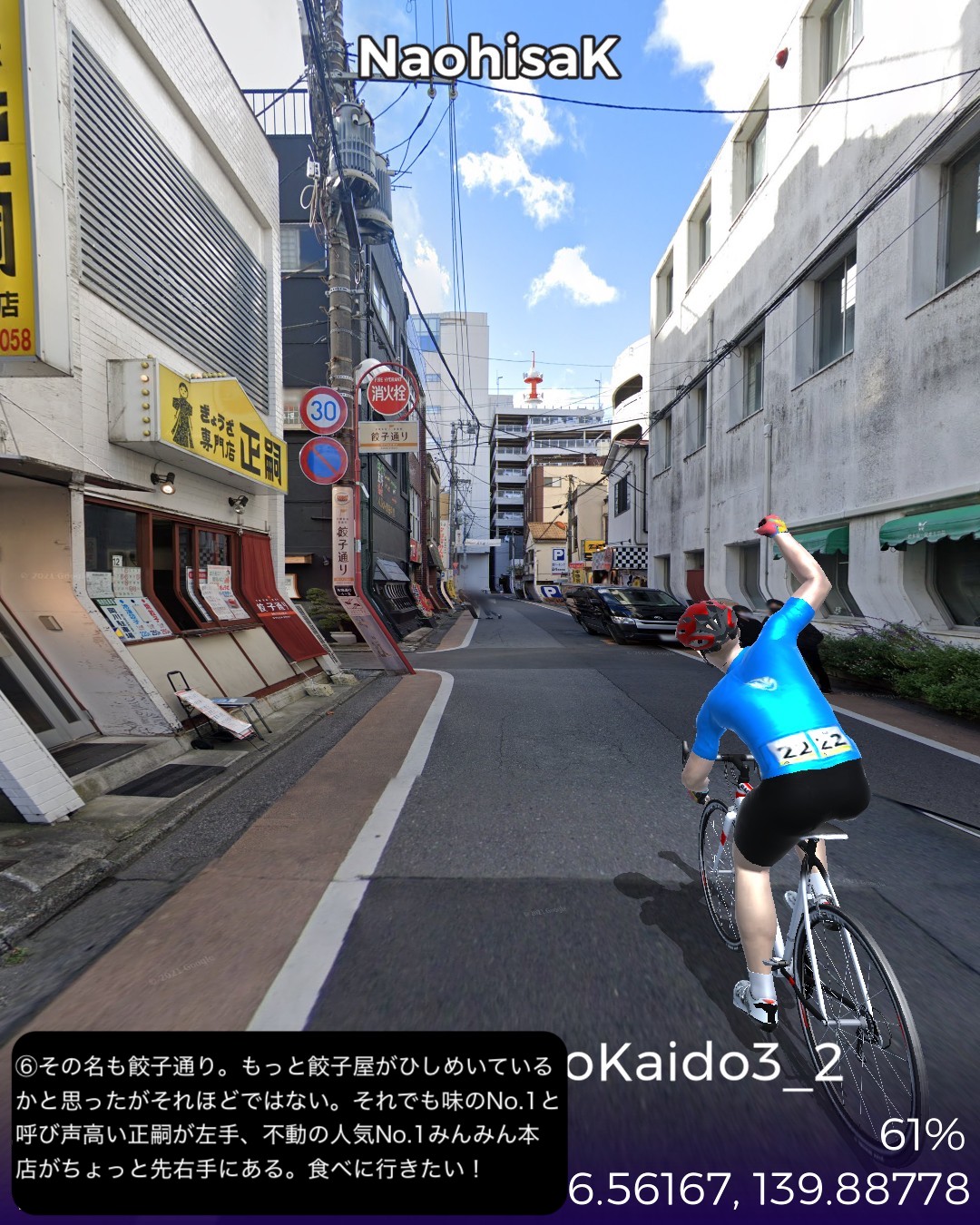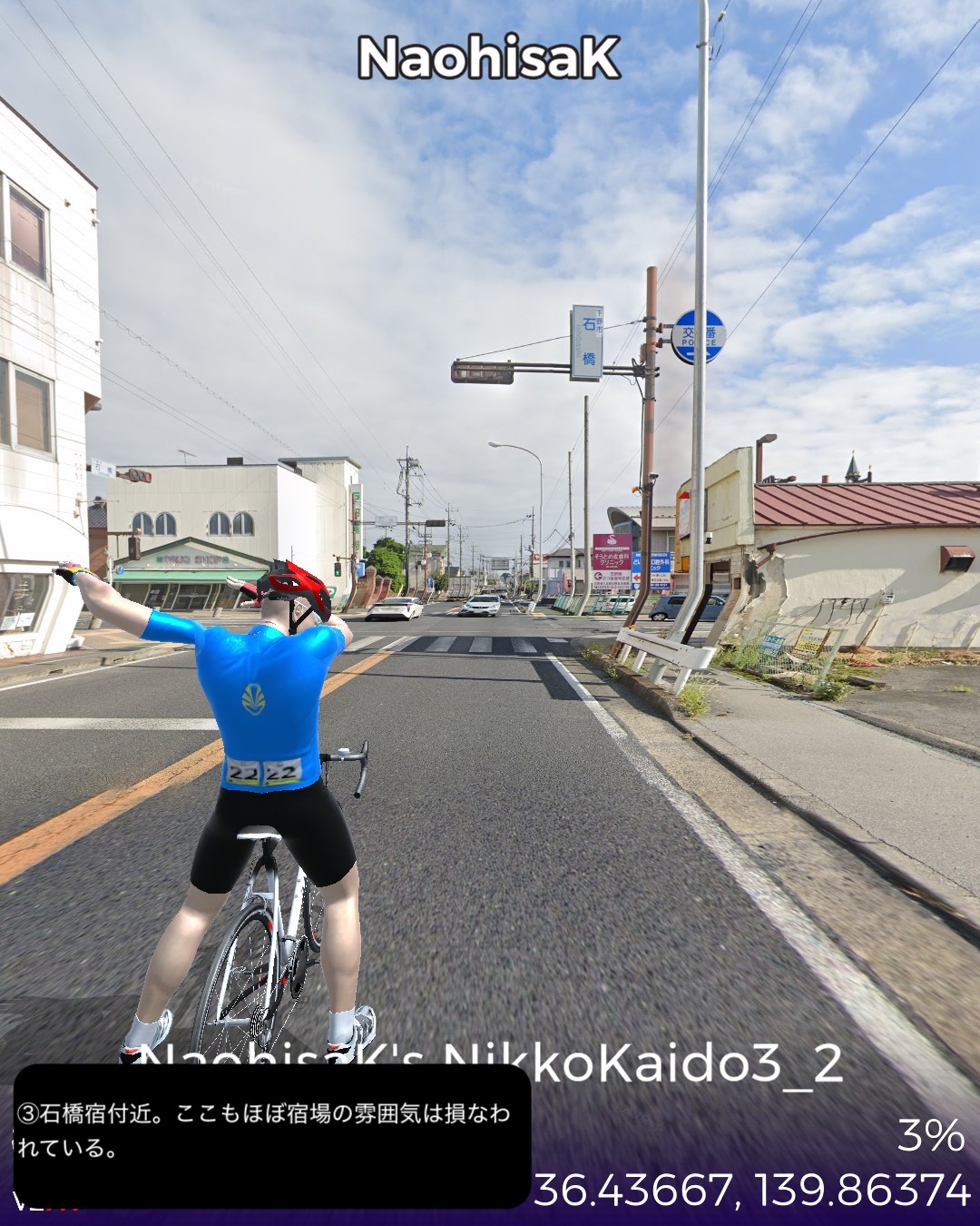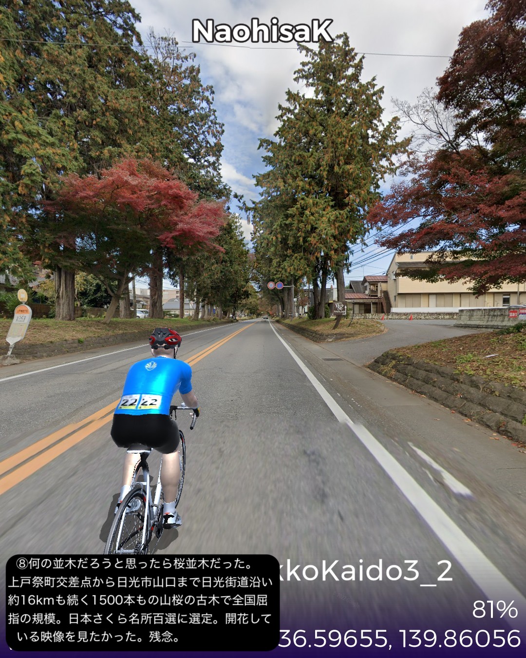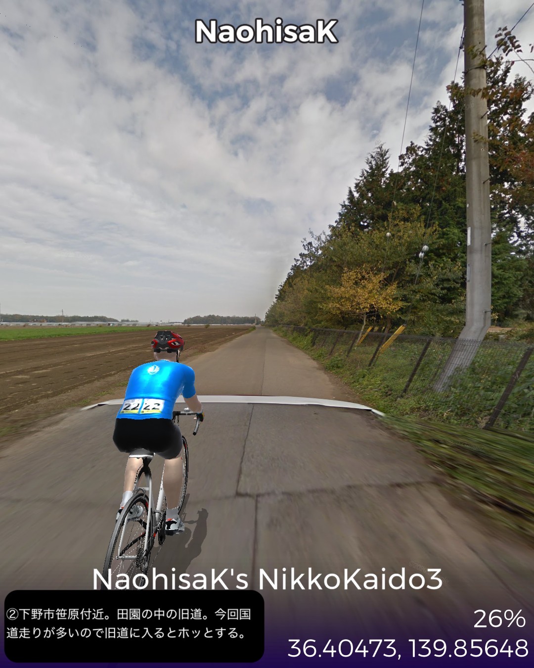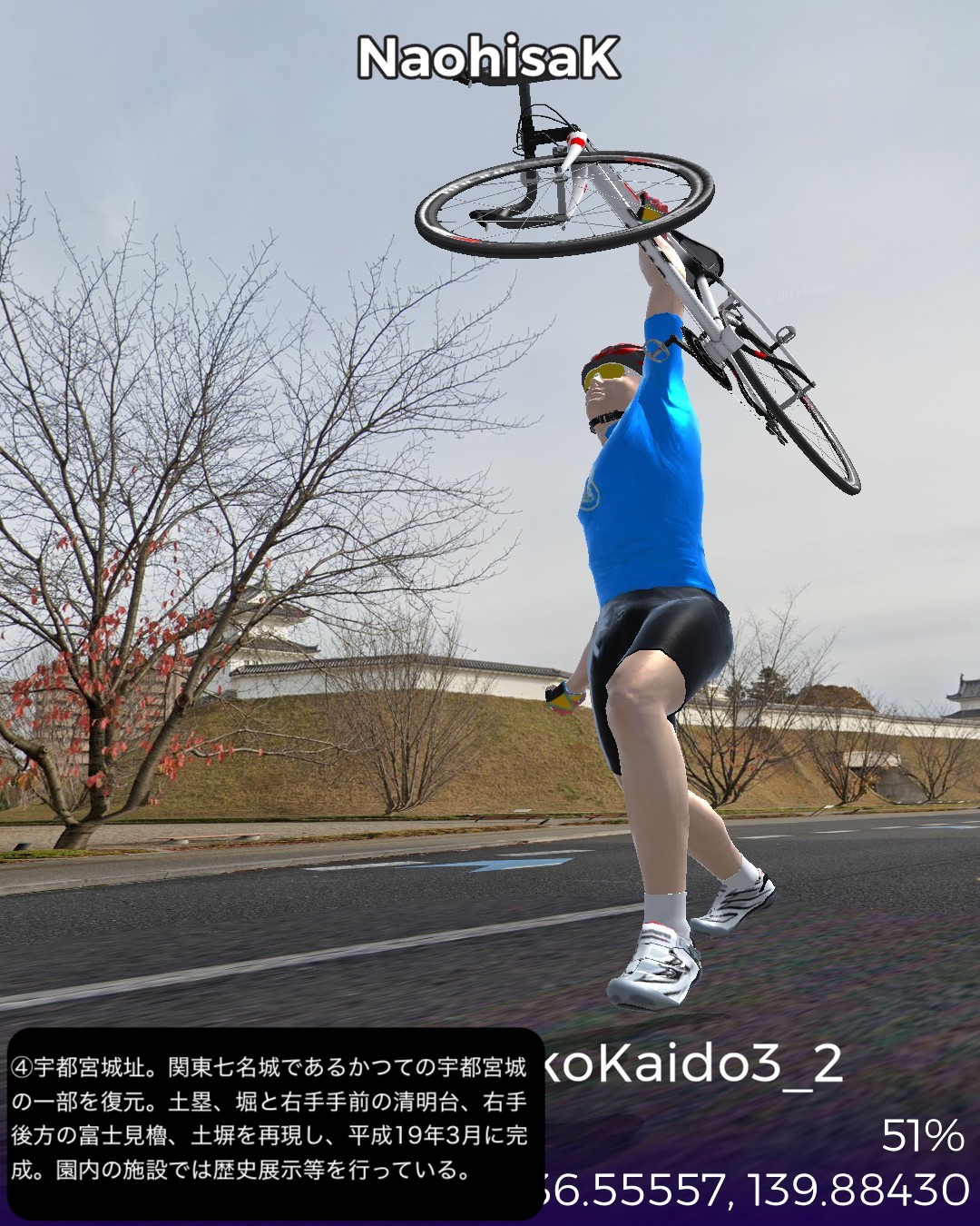 VRサイクリング、日光街道3日目。結果的には宇都宮観光ルート。栃木県南部の中心都市小山市の小山宿を出発し、新田宿、小金井宿、石橋宿、雀宮宿とほぼ国道4号線で通り過ぎ宇都宮市街に入ったところで、街道を外れて、宇都宮城址、JR宇都宮駅、餃子通り、宇都宮二荒山神社、松が峰教会と宇都宮のスポットを一巡り。街道に戻って日光へ向けてしばらく北へ走った後再度街道を外れて寄り道モード。行ってみたかった大谷石の産地大谷まで進む44kmの行程。宇都宮までの国道走りはやはり見るべきものはない。日本中どこへ行っても国道は同じように沿道店舗が建ち並びちょっとした名所史跡は隠れてしまうので面白くないのである。その分大谷も含めた宇都宮巡りは楽しかった。宇都宮市街はしばらく田舎を走ってきた流れからすると目まぐるしい大都市だが、名所史跡はなかなか立派で見応えがありそうだし、餃子グルメも含め魅力的な街だ。宇都宮の先の街道には日本屈指の山桜古木の桜並木が延々と続く区間があり、残念ながら外れのシーズンだったが開花のシーズンは素晴らしい眺めだと想像できる。何よりもゴールの大谷の景観は唯一無二で素晴らしい。我が実家の塀も大谷石だったが、昔は少なくとも東京近郊では大谷石の塀が多かった。その大谷石の唯一の産地大谷はまさにそこらじゅうの山が大谷石でできているのが露出した崖面でわかる。野球場が入るほどの大空間が広がる地下採石場跡は是非行って見たい場所だ。日本屈指の洞窟に展開する石仏が見られる大谷観音も同様に必見だな。まぁこういうのはリアルに行かないと見れないんだけれど。次回は街道の終点日光へ到達する。