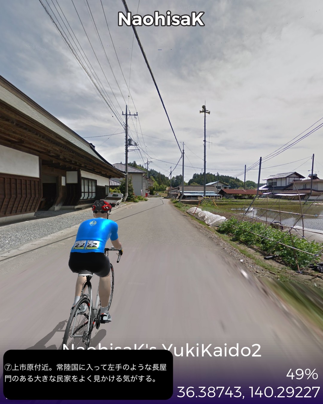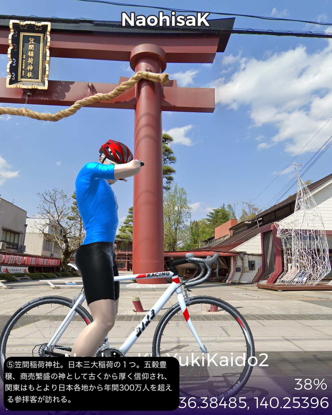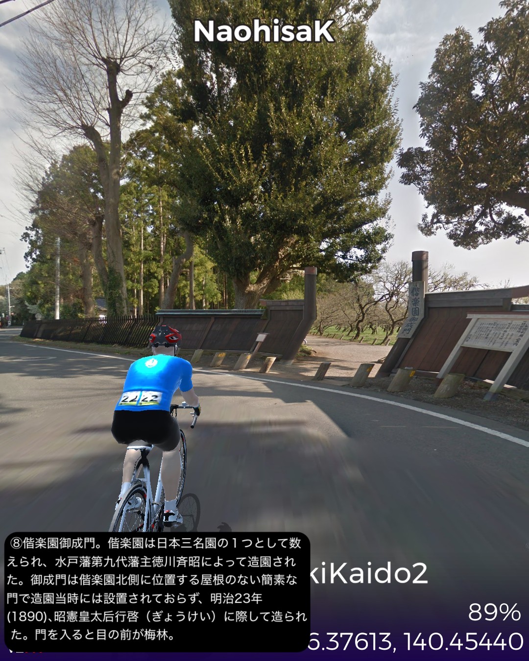 VRサイクリング、結城街道2日目。北関東横断完結編。水戸へ到着の巻。岩瀬を出発し、平地と山地の境を縫って進むと日本三大稲荷の1つ笠間稲荷神社のある城下町の笠間市街へ入ってゆく。笠間市街を抜けて田園地帯の広がりを感じるとしばらくして水戸市街へ入る。日本三名園の1つ(なんか今日は日本三XXが多いな)偕楽園をかすって水戸駅の南東の町外れにある旧水戸宿付近、結城街道、水戸街道、陸前浜街道の起点終点が集まる昔の交通の要所、本町の交差点をゴールとする42kmの行程。主に山里と田園を抜けてゆく地味なルートであるが、やはり笠間と水戸が今日のポイントだな。途中の笠間は訪れたことがなかったが、高名な笠間稲荷神社があり、人気のある陶磁器笠間焼があり、また春のつつじと秋の菊で人を集めたりイベントも多いなかなか戦略的な観光都市だとわかった。御三家の1つ(やはり三XXが多い)水戸徳川家の城下町で県庁所在地の水戸は過去数回訪れてその都度偕楽園にも足を運んだたのを思い出す。やはり水戸といえば偕楽園と梅と納豆ですな。結構坂道が多い地形が複雑な町だというのは今回初めて認識した。次回は水戸から再度江戸へ向けて水戸街道をのぼる。