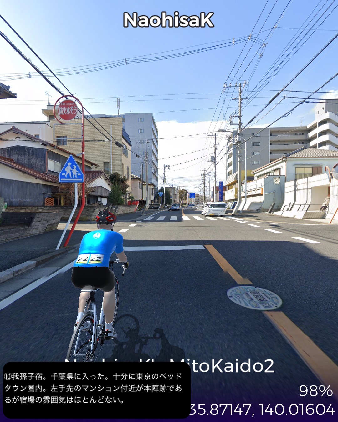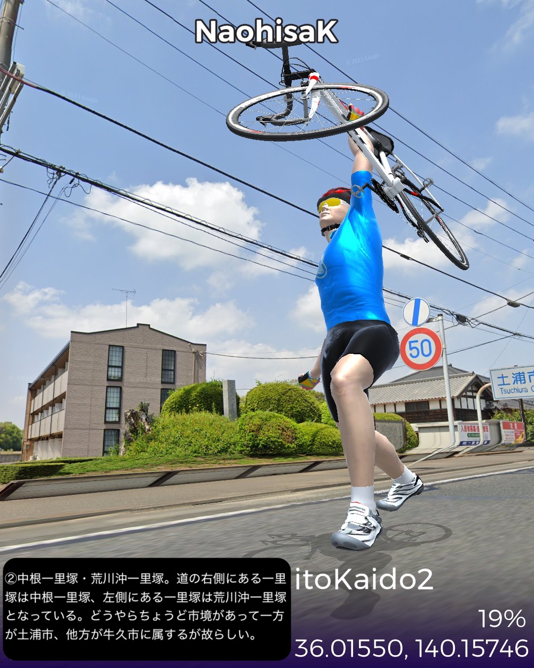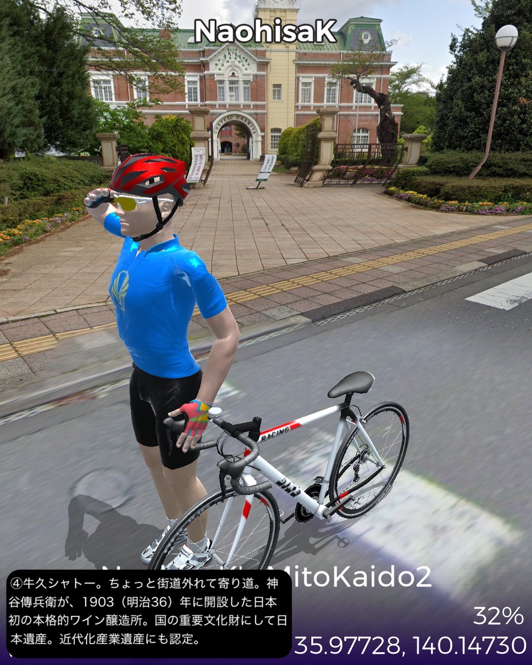 VRサイクリング 水戸街道2日目。河川の氾濫が頻繁に起きそうな地域を進む。前回つくば学園都市へ寄り道するために街道から外れた土浦近郊をスタートし、牛久宿で二箇所ほど寄り道して先へ進む。立派な旧家の屋敷が建ち並ぶ若柴宿、さらに藤代宿を経て田園の中を進むと利根川の辺取手宿に着く。利根川の長大な橋を渡り千葉県に入るとまもなくゴール我孫子宿に至る44kmの行程。牛久では日本初の本格的ワイン醸造所で国の重要文化財、日本遺産に輝く牛久シャトーの優美な館を愛で、絶景が広がっているわけではないがビオトープ な自然環境がしみじみ美しい牛久沼の周辺を巡ってみた。それにしても牛久沼から利根川水系をはさんで手賀沼のあるゴールの我孫子までの低地、(ひょっとしたらさらに江戸川、荒川のある江戸下町まで)は、街道を走っていても河川氾濫の脅威を感じる地域でもある。次回は水戸街道終点、もう何度目になるかわからないが江戸東京へ戻る。
