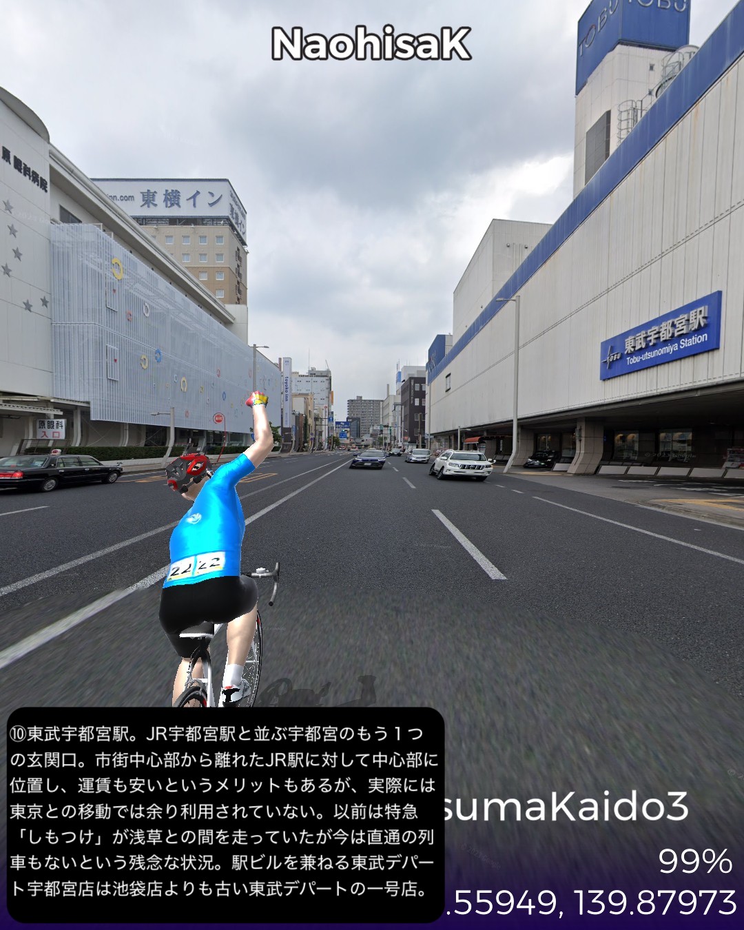 VRサイクリング 銚子道2日目。前回のゴール八日市場を出発し、JR…