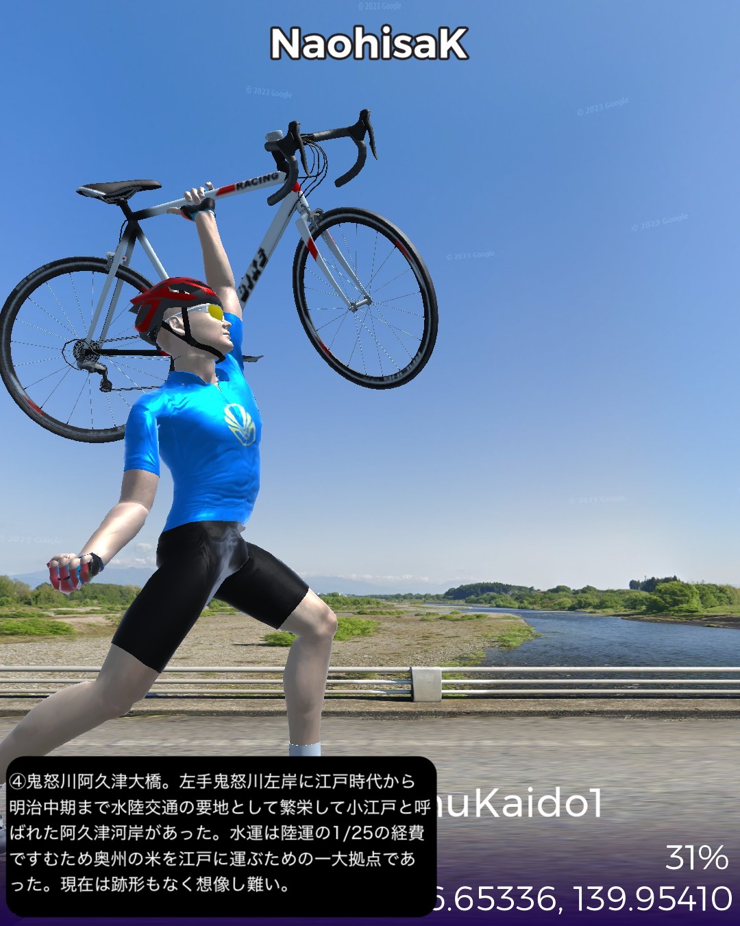 VRサイクリング、奥州街道6日目。杜の都、仙台に到着の巻。白石川沿…