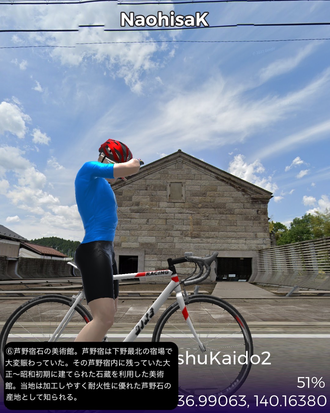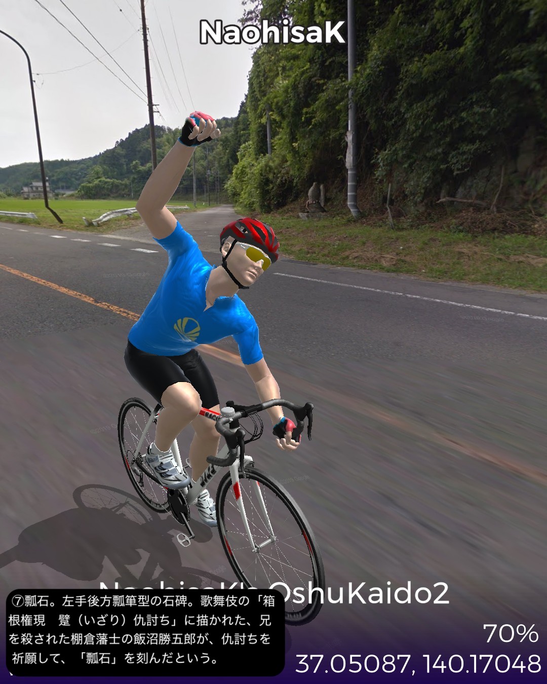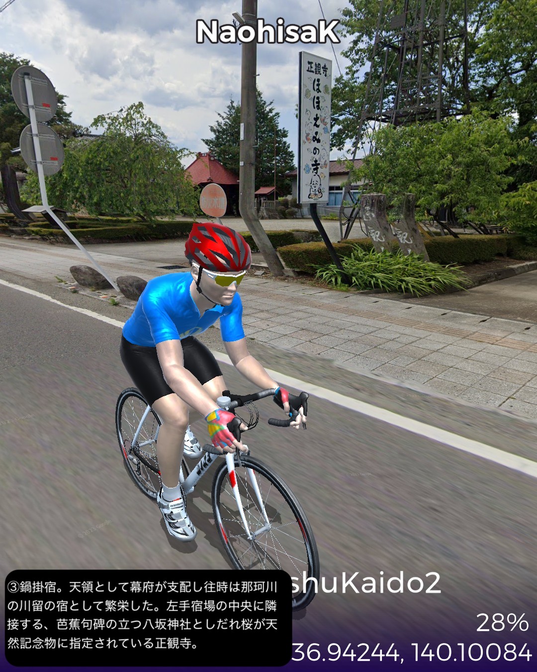 VRサイクリング 奥州街道が完了したところでしばし街道の縛りを外れ…