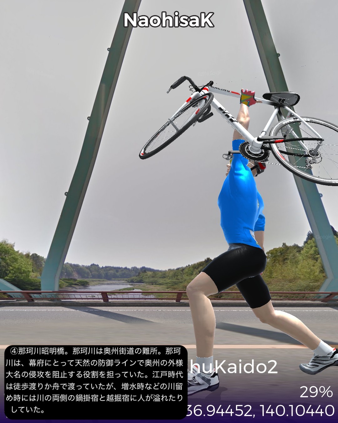 VRサイクリング、奥州街道6日目。杜の都、仙台に到着の巻。白石川沿…