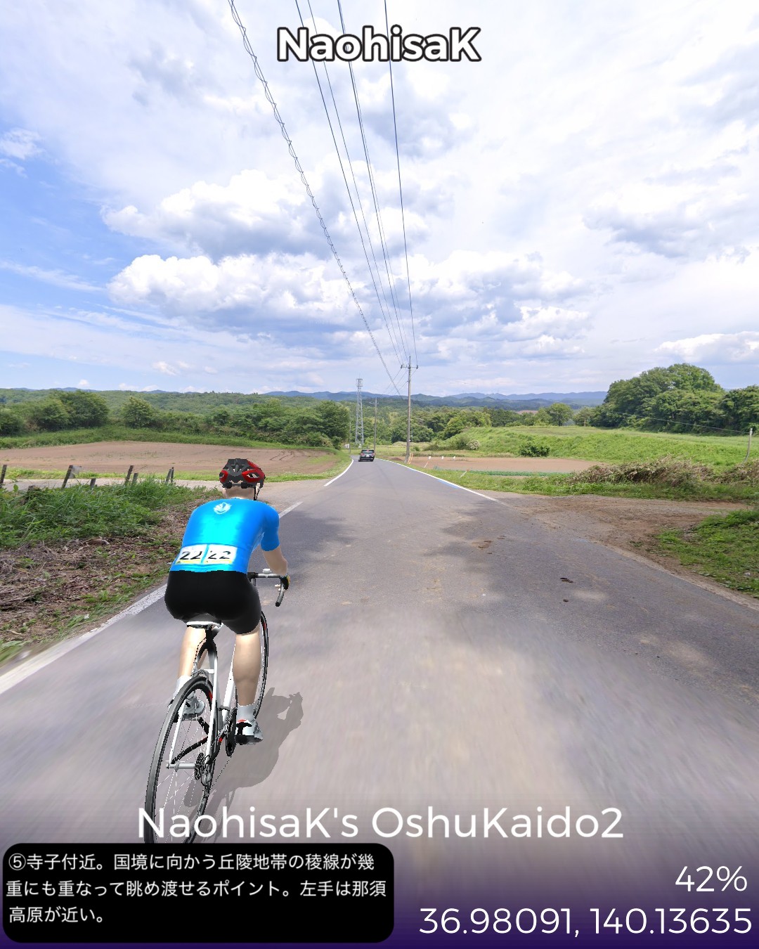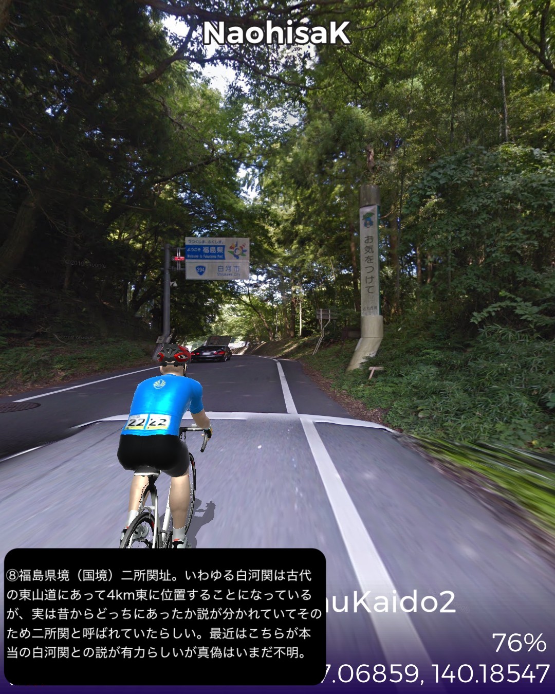 VRサイクリング、奥州街道3日目。阿武隈川流域の磐城国(福島県)中…