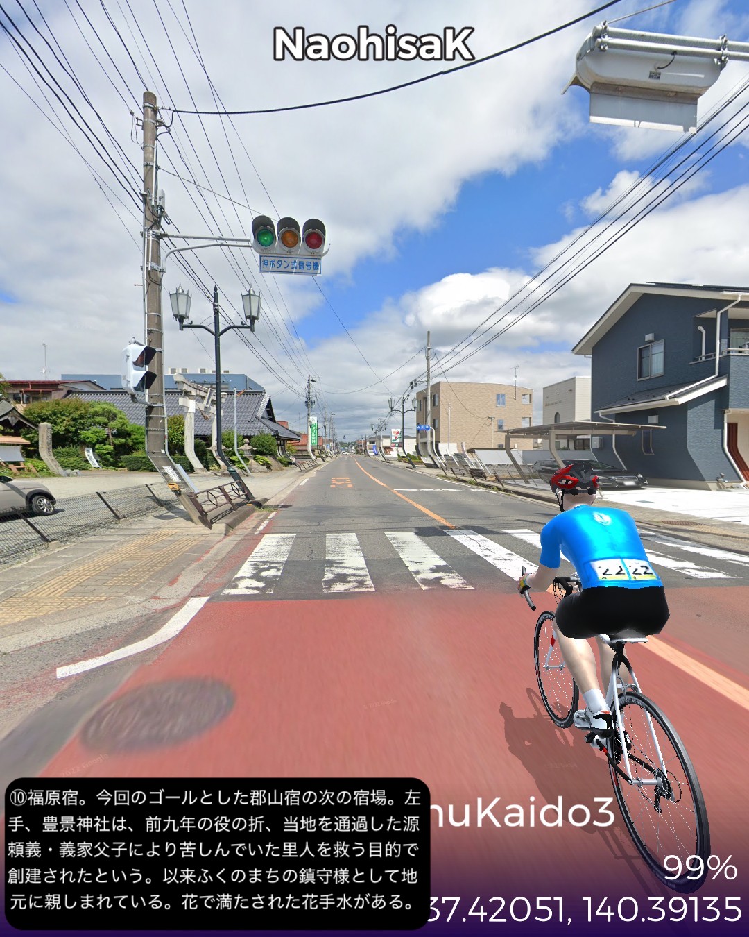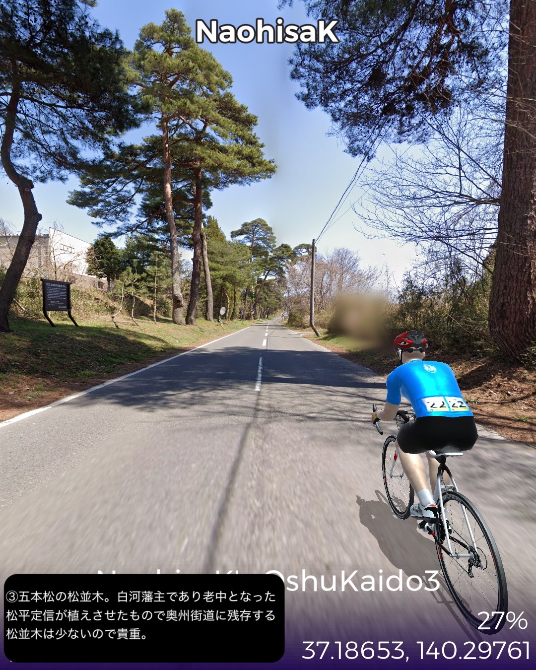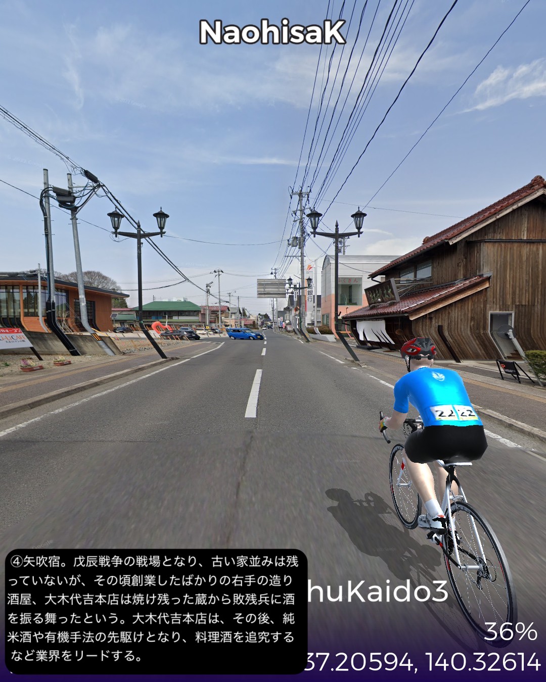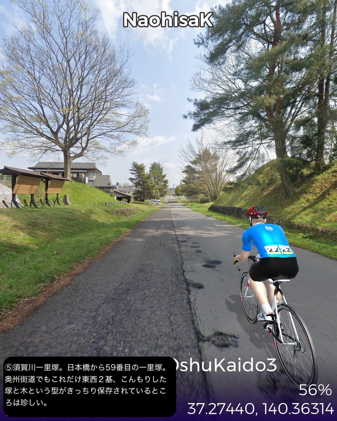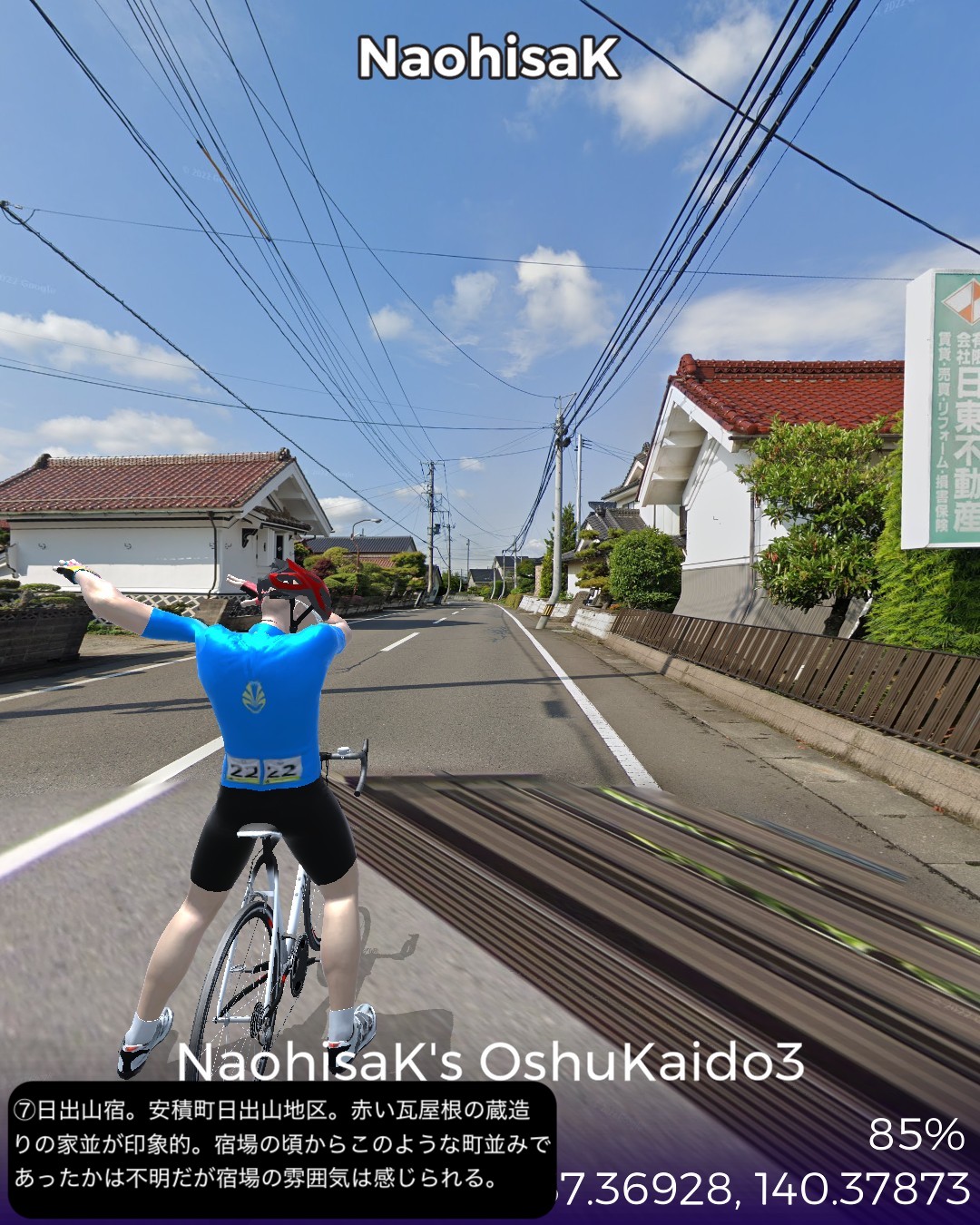 VRサイクリング 奥州街道が完了したところでしばし街道の縛りを外れ…