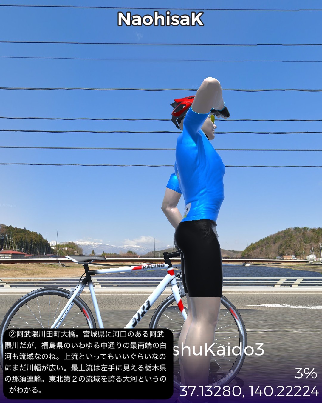 VRサイクリング 奥州街道4日目。盆地から眺める山々が美しい福島県…