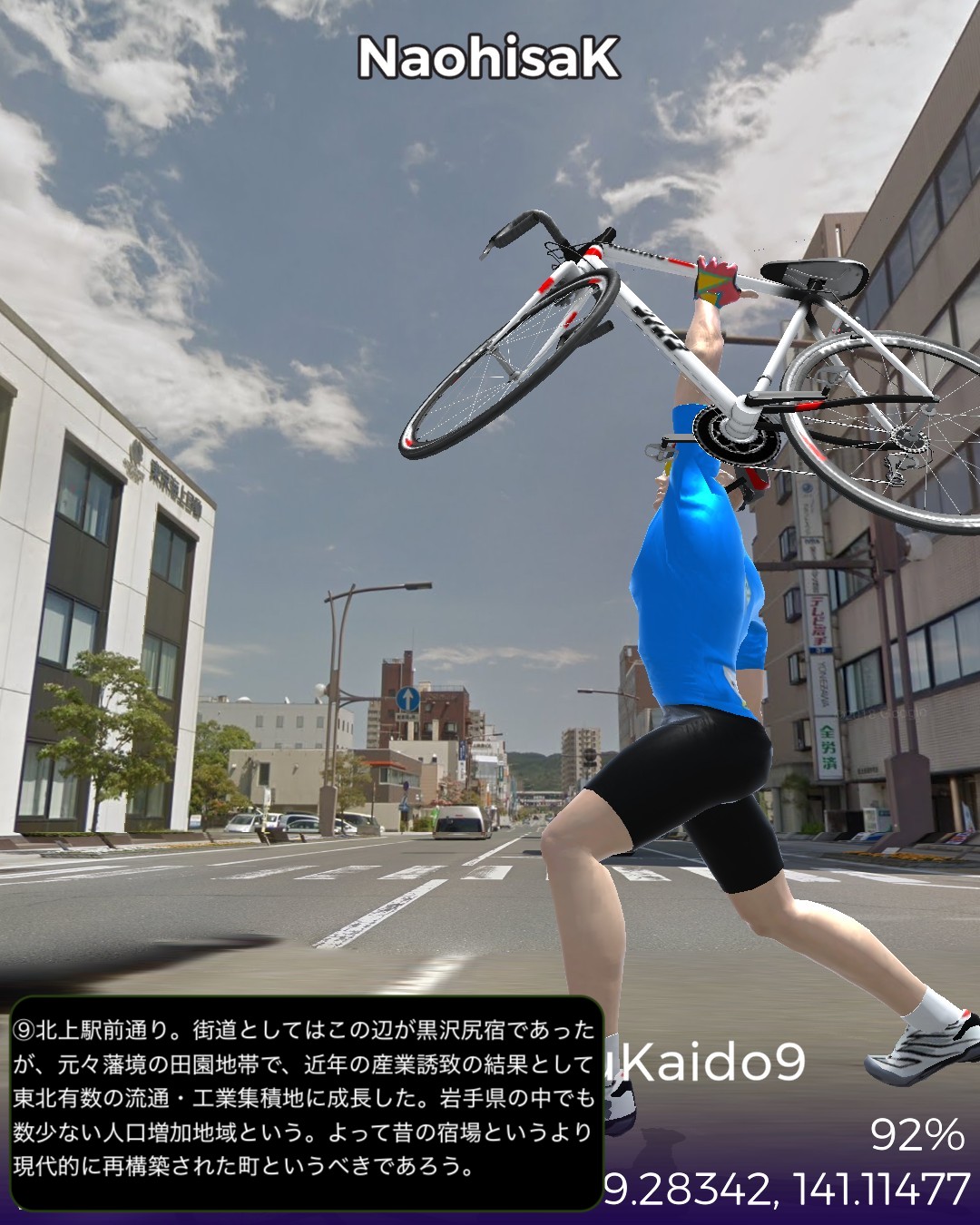 VRサイクリング 奥州街道11日目。南部藩の城下町、古い街並みをふ…