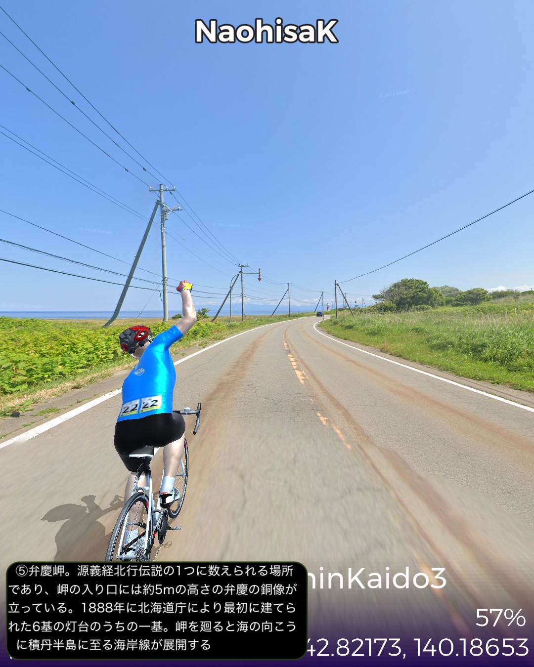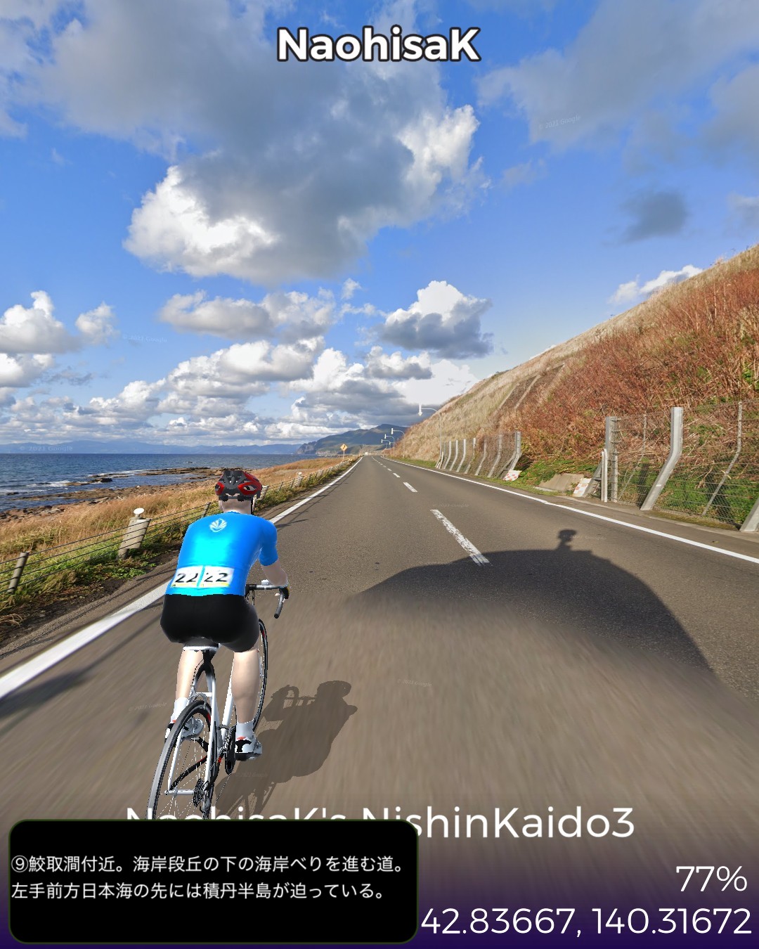 VRサイクリング、また海辺に戻ってきて、にしん街道4日目。今回は…