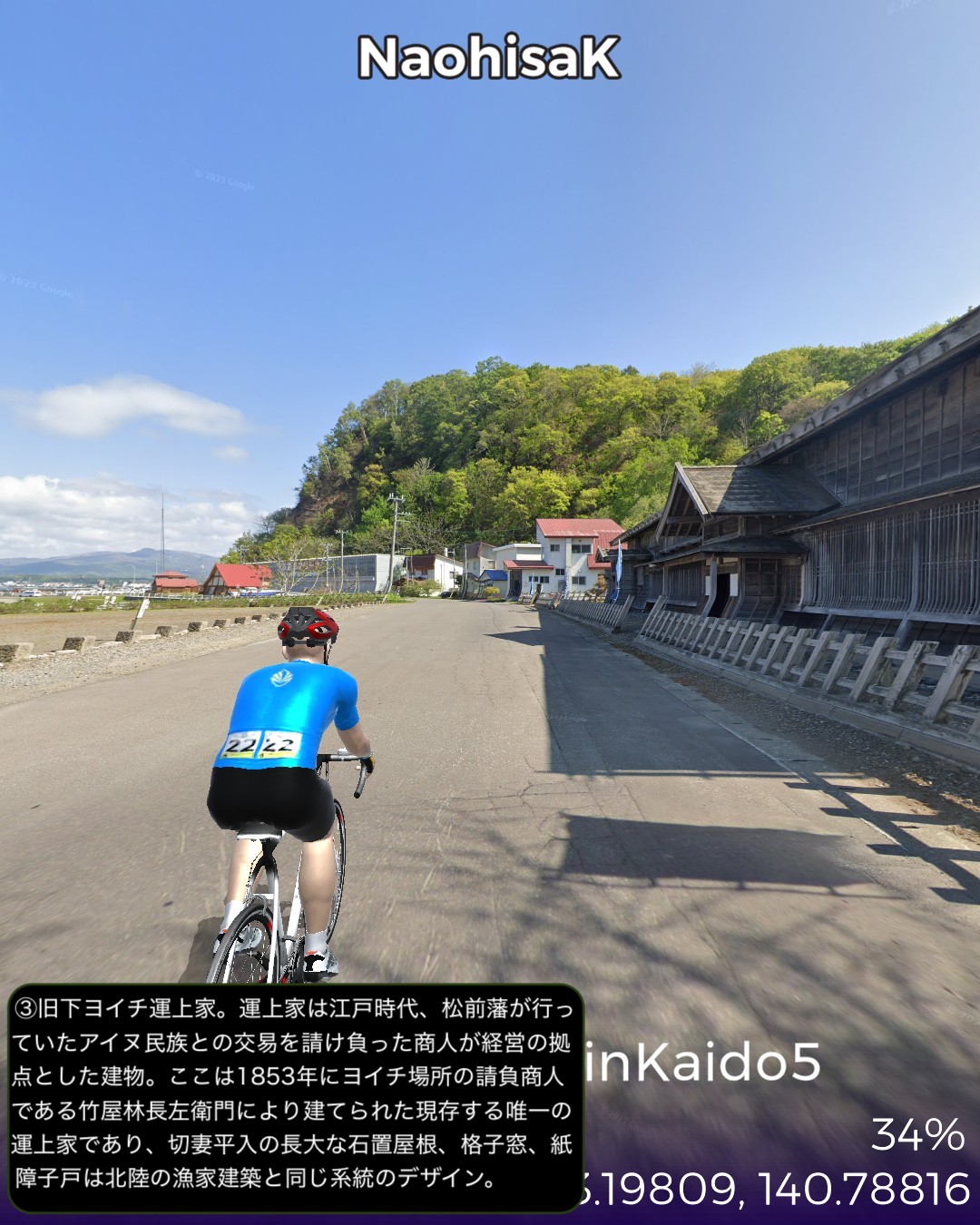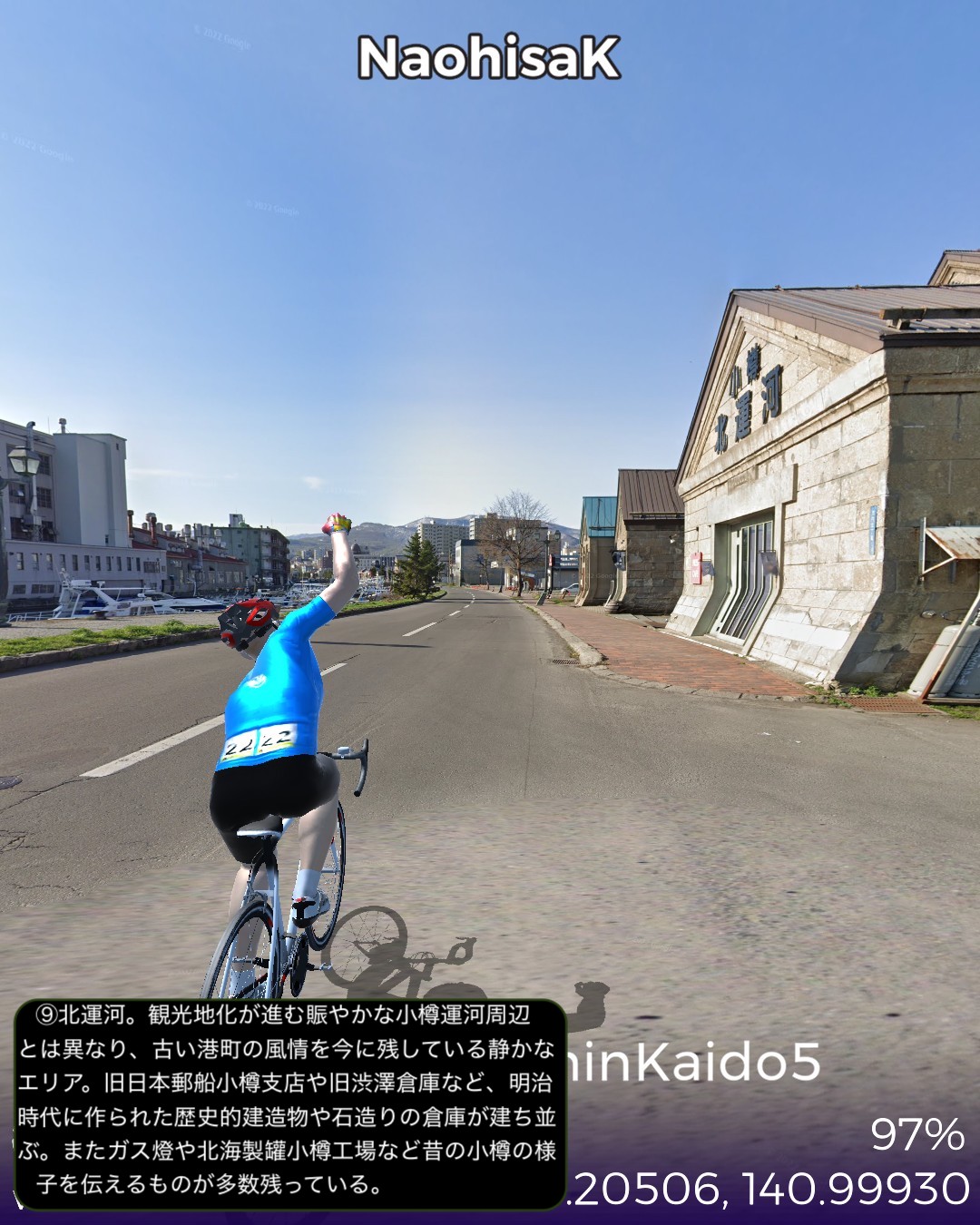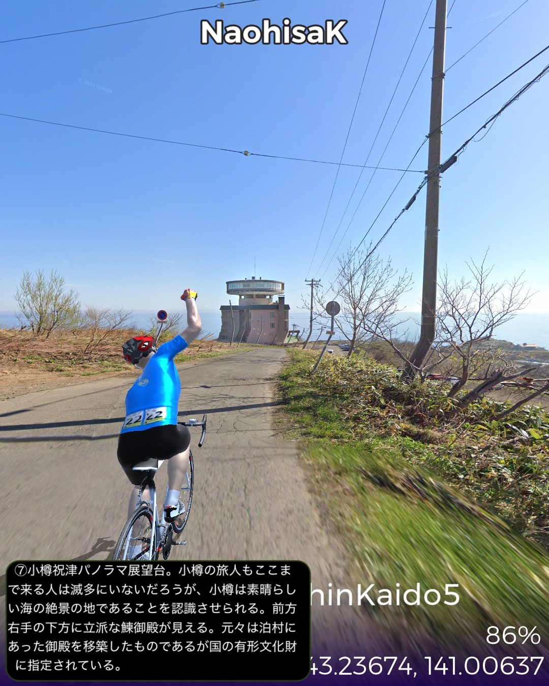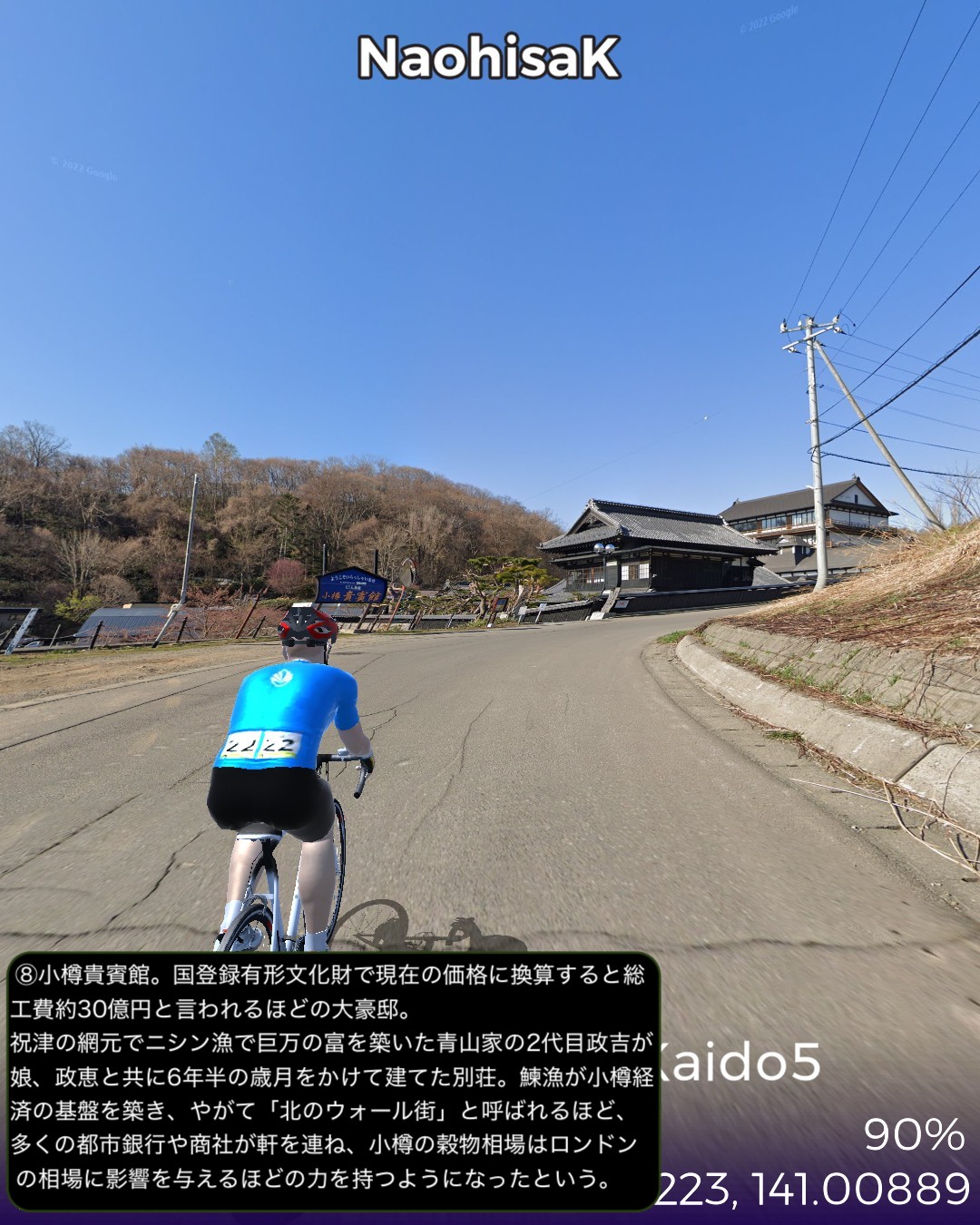 VRサイクリング にしん街道5日目。積丹半島根本の余市、小樽を攻略の巻。積丹半島観光のベースキャンプタウン美国を出発し、半島西海岸にも引けを取らない奇岩地帯を抜けると洋酒の町余市。ニッカのウィスキー蒸留所や町の南に広がる果樹園とワイナリーの丘陵地帯を廻った後、再度海岸線に沿って東に進み久々の都会小樽へ到着する66kmの行程。余市は以前から行ってみたい場所だったが、期待を裏切らない様々な魅力を有する町だ。他の沿岸の町同様ニシン漁で栄えた海岸には鰊御殿が残っているが、何と言ってもマッサンで有名になったニッカの創始者竹鶴政孝が建てた蒸留所の異国情緒溢れる建物群が目を引く。ニッカは当初ウィスキーの生産販売が軌道に乗るまで、当地産のりんごジュースを生産して凌いだというが、町の南の丘陵地帯にはそのりんごを含む果樹園とワイナリーがひしめいている。特にワイナリーはフランス、ドイツの本格品種によるガチの高級ワイン志向のブティックワイナリーが多く点在していて、今まで走ってきた中では甲州の勝沼や信州の塩尻に勝るとも劣らないワイナリー地帯となっていて驚いた。またワイナリーの丘の上から望む余市の町と海岸の風景が絶景なのだ。小樽は町の北西の祝津の岬の先端から下ってくると小樽運河付近だけをウロチョロする普通の観光コースでは見えてこない小樽の姿が見えてくる。ダイナミックな絶景の海岸線の中の狭い斜面に張り付いた大きな町だと分かる。そしてここまでのにしん街道で最も豪華な鰊御殿が二軒もあり、いくつもの番屋も残っていて、この辺がニシン漁で最も潤った場所だと理解できる。実際、小樽という都市の発展のベースはニシン漁で得た経済力であったようだ。一方で小樽市街のレトロでエキゾチックな街並みの魅惑も再認識した。二度ほど訪れた町であるがいずれも短い滞在だったので、いずれじっくり滞在したい町である。次回はいよいよ私の生まれ故郷札幌に到着予定。
