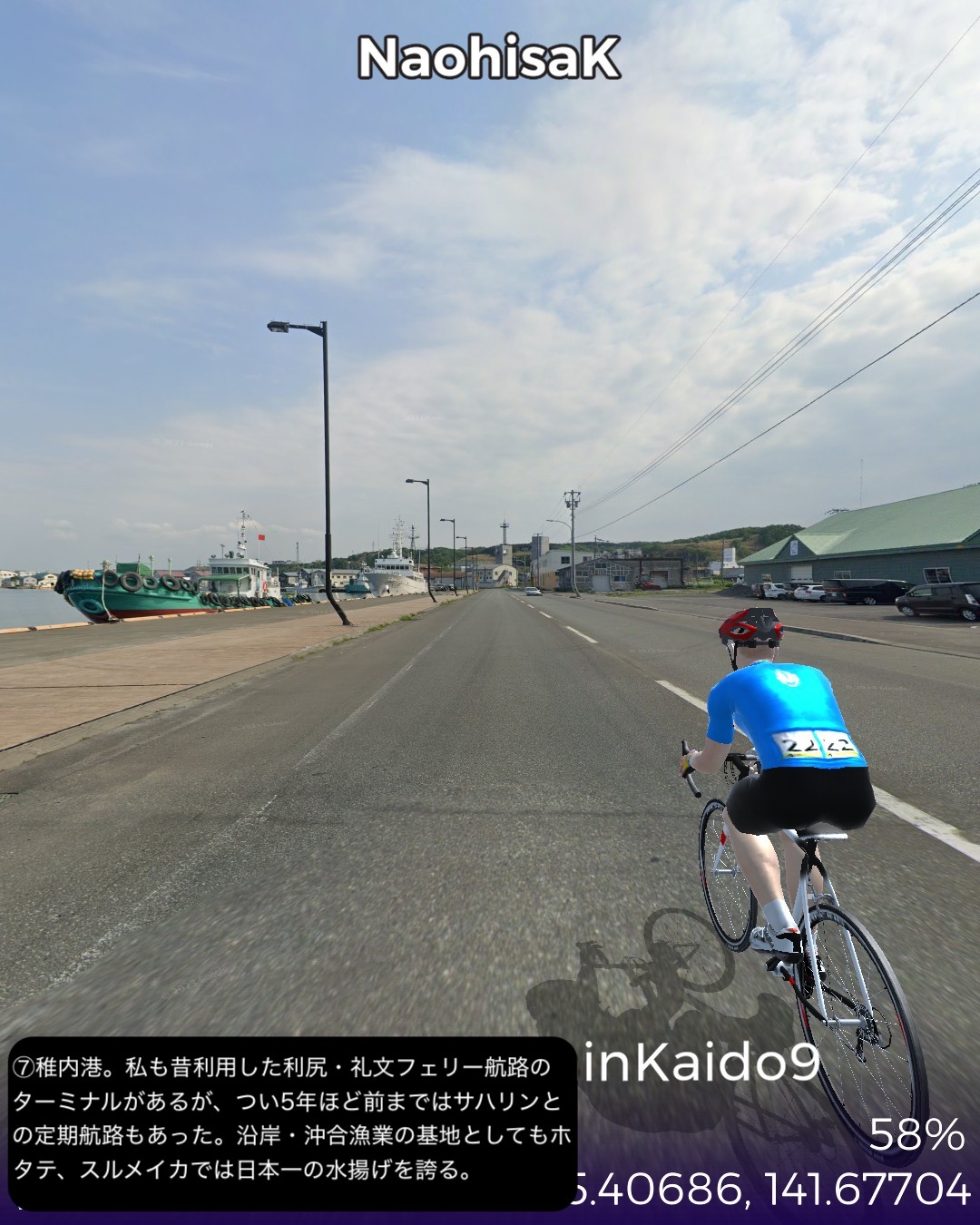 VRサイクリング にしん街道3日目。さらに日本海沿岸を北上。ガイド…