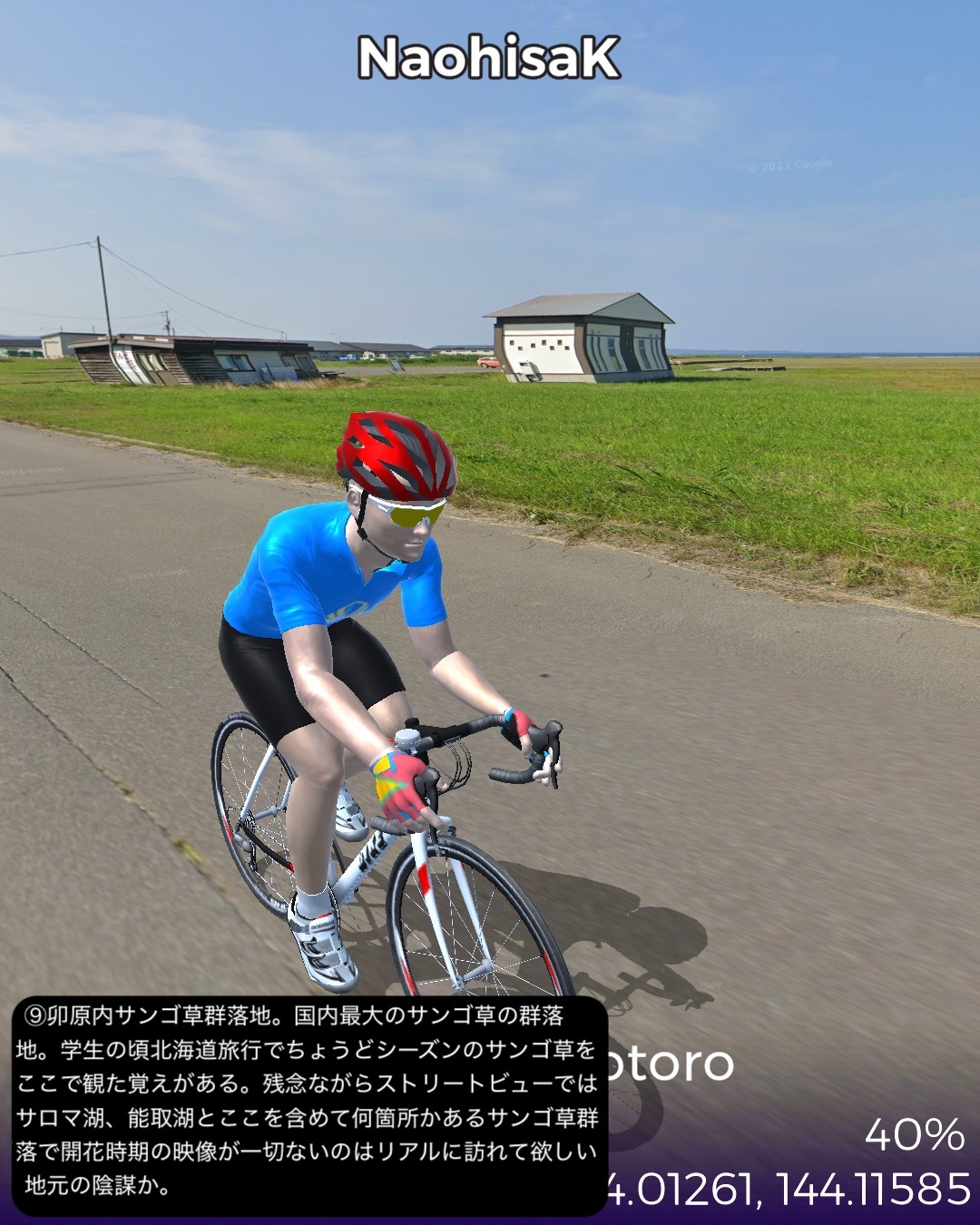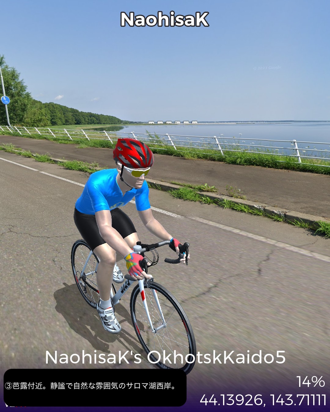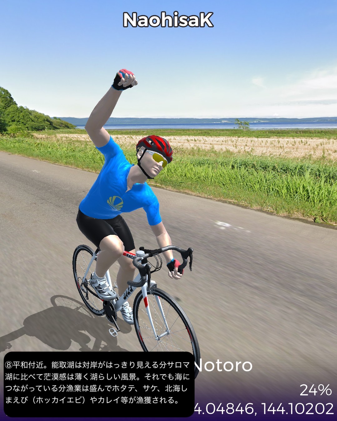 VRサイクリング、オホーツク街道4日目。今回はひたすら大きな2つの湖を回る旅。湧別は前回内陸の上湧別方面へ曲がった、海岸に近い錦町を起点に東へ進むが、すぐサロマ湖にぶつかりその西岸から南岸、東岸とほぼ湖岸付近を巡り、海沿いの町常呂へ。ここから東へ進むと能取湖にぶつかり、これをほぼ1周ぐるりと巡って能取岬をゴールとする97kmの行程。サロマ湖と能取湖はそれぞれ名物の夕陽とサンゴ草のビジュアルが得られずただ茫漠とした風景の湖岸を巡る単調な行軍となってしまった感はあるが、そんな中でもいくつか見かけた事物に興味深いトピックスがあった。サロマ湖は湖の割に漁港が多いなと思ったら、単に繋がっている海から魚が迷いこんでいることもあるが、それ以上にホタテの稚貝の養殖を確立し、それを北海道全土にバラまいて現在の北海道ホタテ黄金時代を切り開いた、という成功話があるらしい。次に常呂には観光的には地味ながら世界遺産の候補に挙がっている常呂遺跡があった。数千もの竪穴式住居での生活の痕跡が、数千年ものタイムスパンで続いていたというから凄い。今まで通ってきたオホーツク街道沿いにも宗谷岬付近や紋別付近にもここより規模は小さいが同様の長いスパンの遺跡に遭遇した。実はこんな辺境の地において、長い期間に渡ってオホーツク文化圏が構築されていたということらしく、知られざる歴史のロマンを感じる。この件はまた今後も蒸し返すことになるだろう。あと常呂の鄙びた街並みの中に立派な建物があると思ったら、オリンピックで活躍したカーリング女子チームのロコソラーレの本拠地である国内最大級のカーリングホールだった。いやぁビックリ。北見と言っていたから北見市街かと思っていたら常呂も北見市に含まれるということで、この鄙びた町にあのもぐもぐタイムの彼女達が住んでいるんだと思うとちょっと不思議な気持ちになる。次回は網走を越えて知床半島の付け根まで進む。