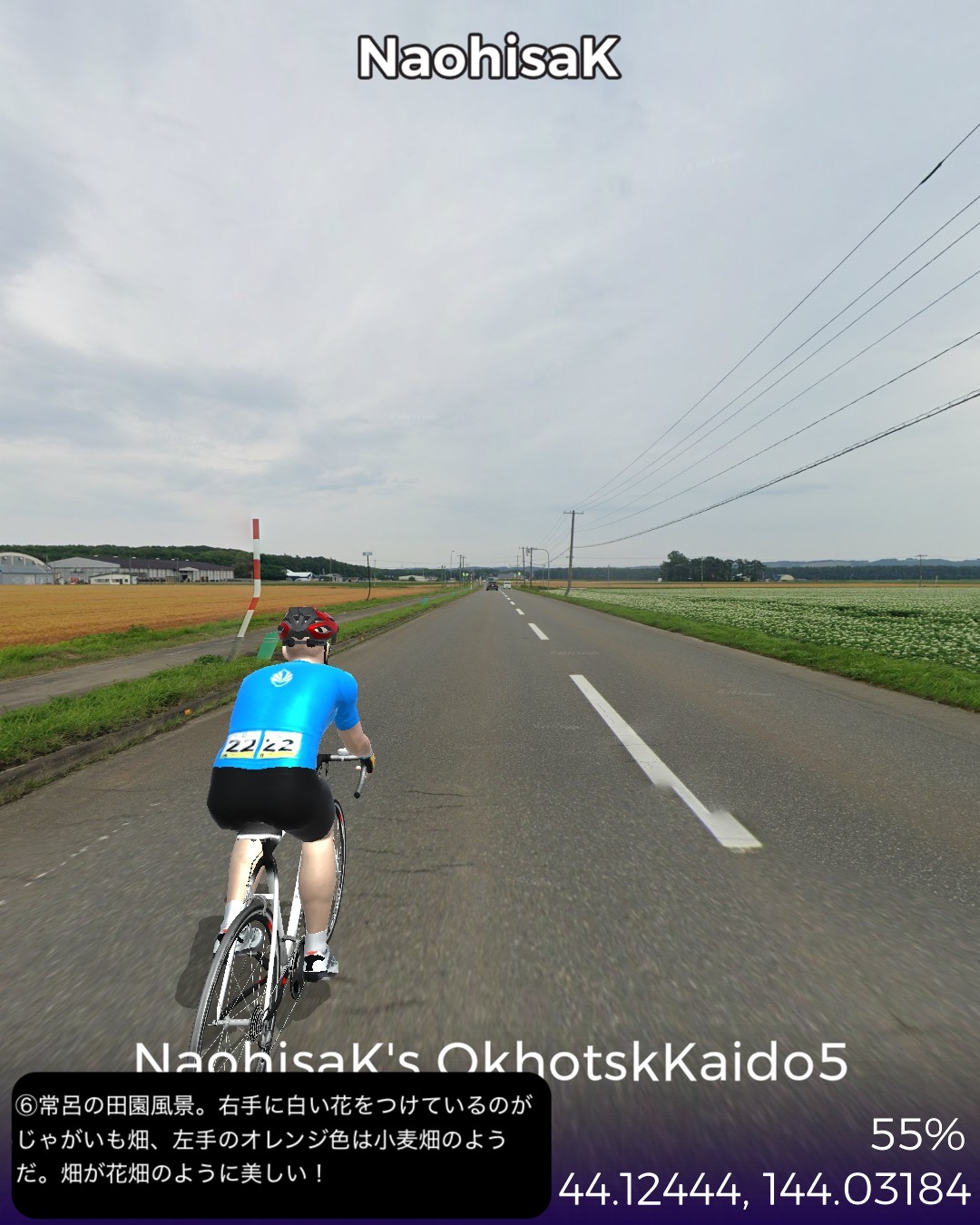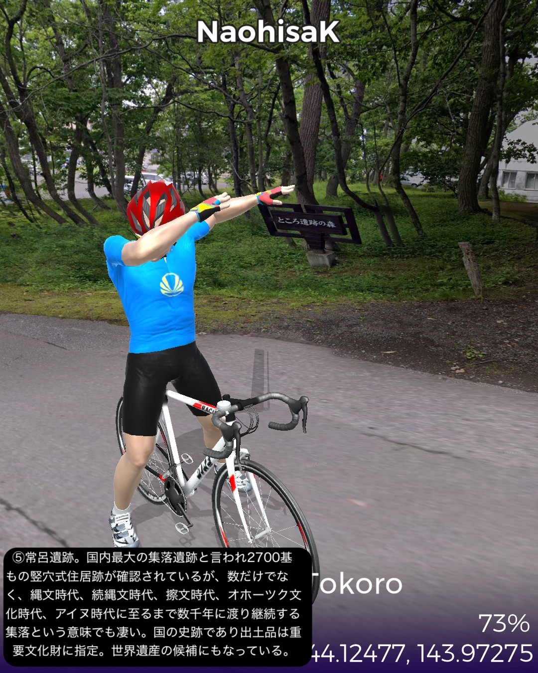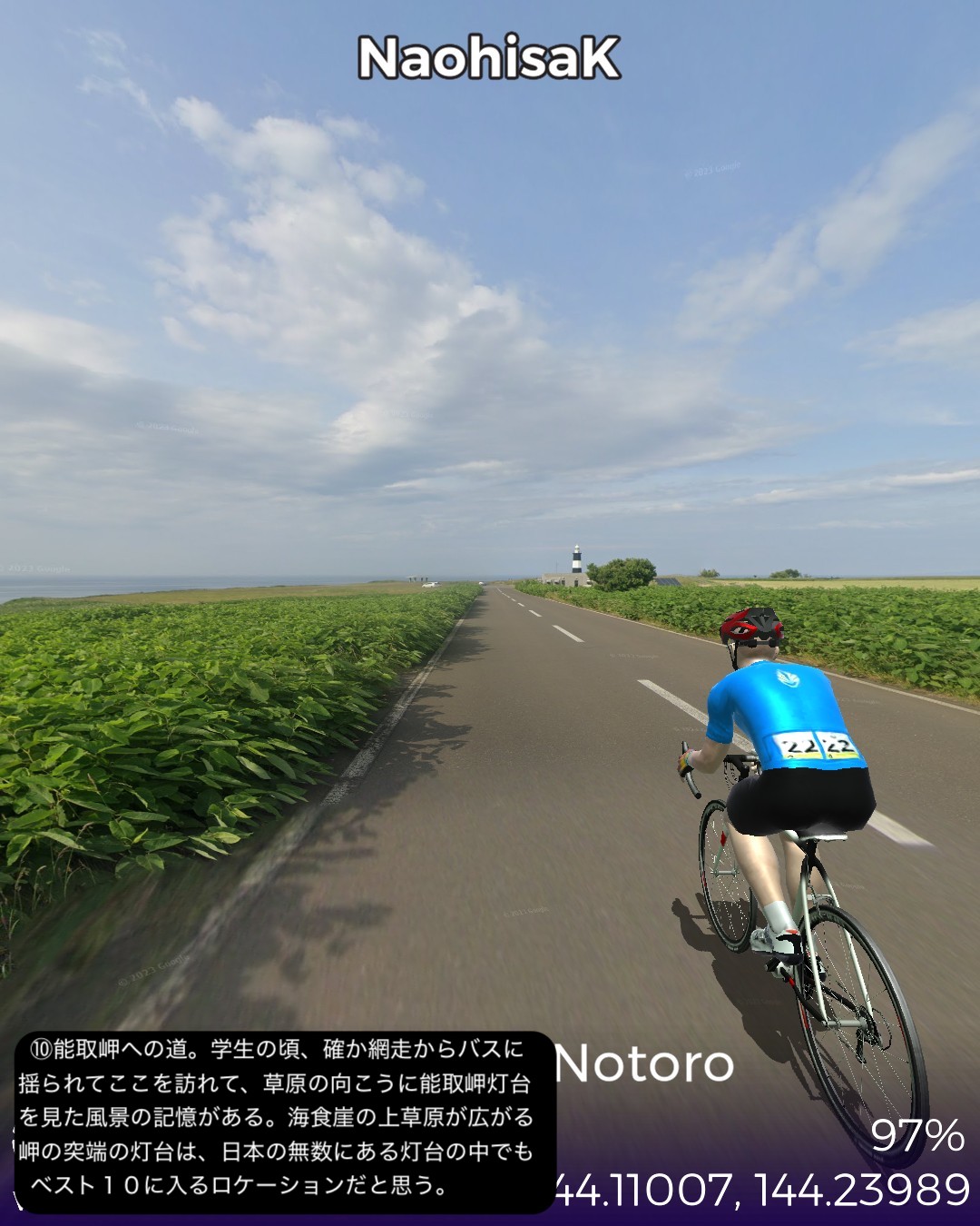 VRサイクリング、オホーツク街道4日目。今回はひたすら大きな2つの湖を回る旅。湧別は前回内陸の上湧別方面へ曲がった、海岸に近い錦町を起点に東へ進むが、すぐサロマ湖にぶつかりその西岸から南岸、東岸とほぼ湖岸付近を巡り、海沿いの町常呂へ。ここから東へ進むと能取湖にぶつかり、これをほぼ1周ぐるりと巡って能取岬をゴールとする97kmの行程。サロマ湖と能取湖はそれぞれ名物の夕陽とサンゴ草のビジュアルが得られずただ茫漠とした風景の湖岸を巡る単調な行軍となってしまった感はあるが、そんな中でもいくつか見かけた事物に興味深いトピックスがあった。サロマ湖は湖の割に漁港が多いなと思ったら、単に繋がっている海から魚が迷いこんでいることもあるが、それ以上にホタテの稚貝の養殖を確立し、それを北海道全土にバラまいて現在の北海道ホタテ黄金時代を切り開いた、という成功話があるらしい。次に常呂には観光的には地味ながら世界遺産の候補に挙がっている常呂遺跡があった。数千もの竪穴式住居での生活の痕跡が、数千年ものタイムスパンで続いていたというから凄い。今まで通ってきたオホーツク街道沿いにも宗谷岬付近や紋別付近にもここより規模は小さいが同様の長いスパンの遺跡に遭遇した。実はこんな辺境の地において、長い期間に渡ってオホーツク文化圏が構築されていたということらしく、知られざる歴史のロマンを感じる。この件はまた今後も蒸し返すことになるだろう。あと常呂の鄙びた街並みの中に立派な建物があると思ったら、オリンピックで活躍したカーリング女子チームのロコソラーレの本拠地である国内最大級のカーリングホールだった。いやぁビックリ。北見と言っていたから北見市街かと思っていたら常呂も北見市に含まれるということで、この鄙びた町にあのもぐもぐタイムの彼女達が住んでいるんだと思うとちょっと不思議な気持ちになる。次回は網走を越えて知床半島の付け根まで進む。