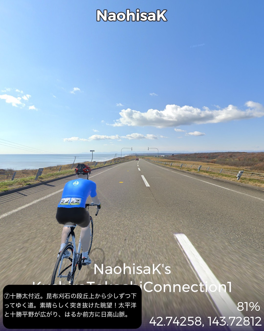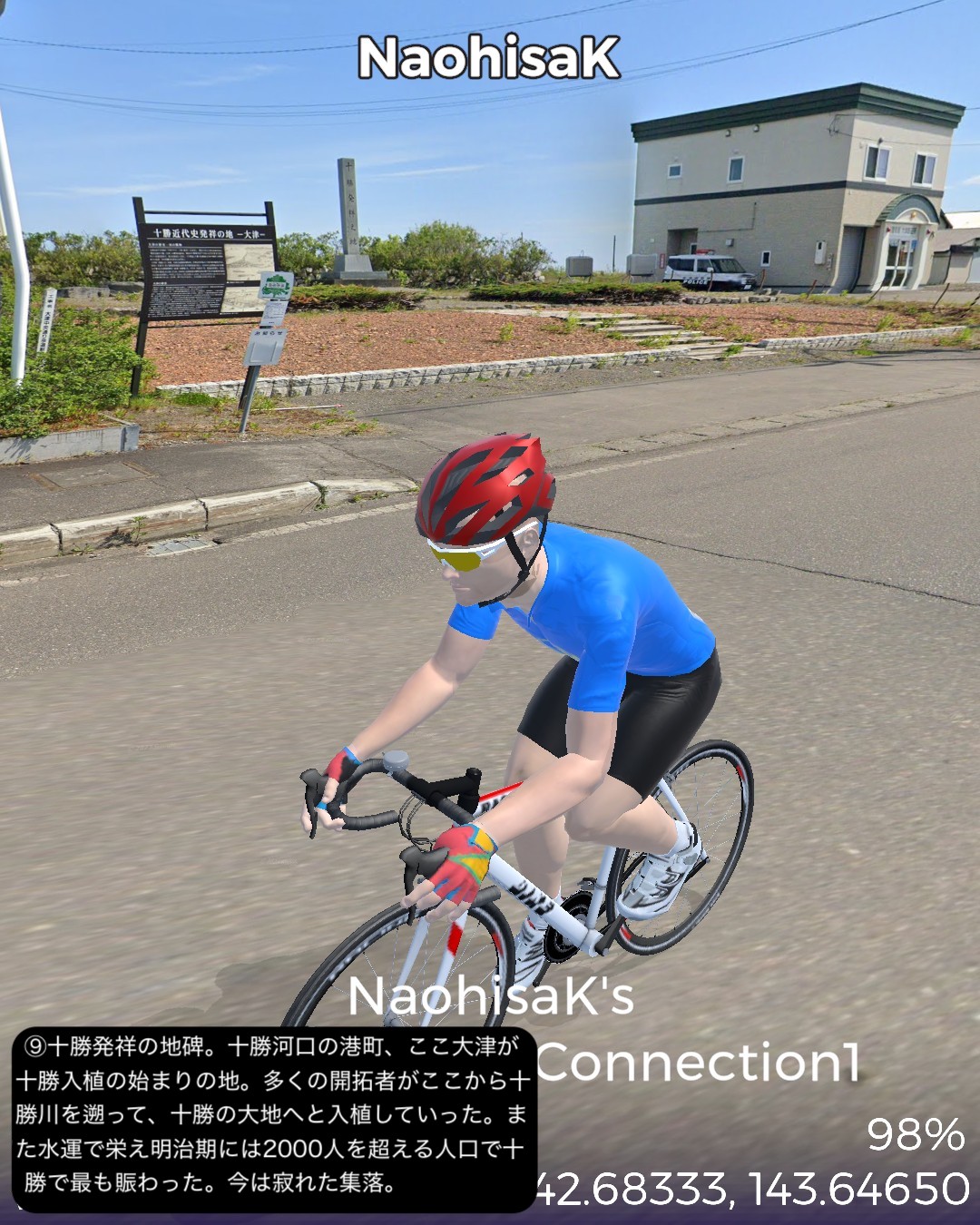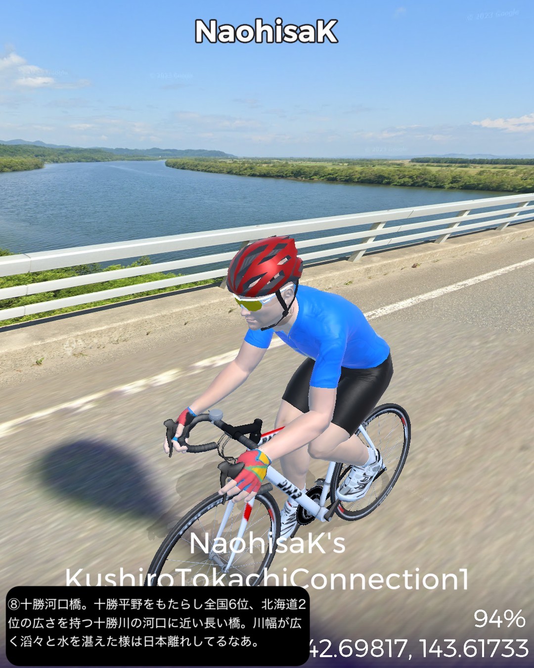 VRサイクリング 釧路から十勝方面へさらに太平洋岸を進む。お題としては釧路・十勝コネクション1日目とする。釧路は幣舞橋をスタートし、結構長い釧路市街を抜けて長い浜を突っ走り、北海道で石炭採掘を初めて行った町白糠を抜けるとまた北海道らしい段丘を登ったり下ったりの海岸道が続く。音別、さらに厚内まで進むと国道もJR根室本線も内陸に引っ込み地形は険しく秘境感が増す中をひたすら海岸近くを走り段丘から十勝平野に下ってゆき大河十勝川を渡ったところで十勝川河口の十勝発祥の港町というより港の集落大津に至る87kmの行程。国道とJR根室本線に沿って走るルート中盤までは、道北道東の海岸線を巡ってきた流れからは地味でビューポイントも少なかったが、国道も鉄道もなくなっ秘境感を増した昆布刈石付近からはなかなか楽しい道筋となった。特に昆布刈石の段丘から下る前方に十勝平野が広がり遠くに日高山脈が霞んで見える眺望は素晴らしかった。そして十勝川には日本離れした広さとワイルドさに圧倒された。河口の港町大津は鄙びた集落であるが、昔はここから十勝川を辿って入植が進んだ十勝発祥の地であり昔は水上交通の要所として賑わったという。今は厳冬期に見られるジュエリーアイスという魅惑的な自然現象で知る人ぞ知るスポットとなっている。これは見てみたい。次回は明治時代の十勝入植の経路を辿って帯広へ向かう。