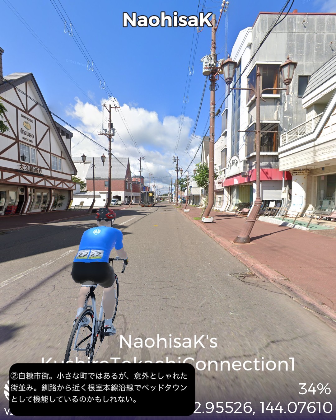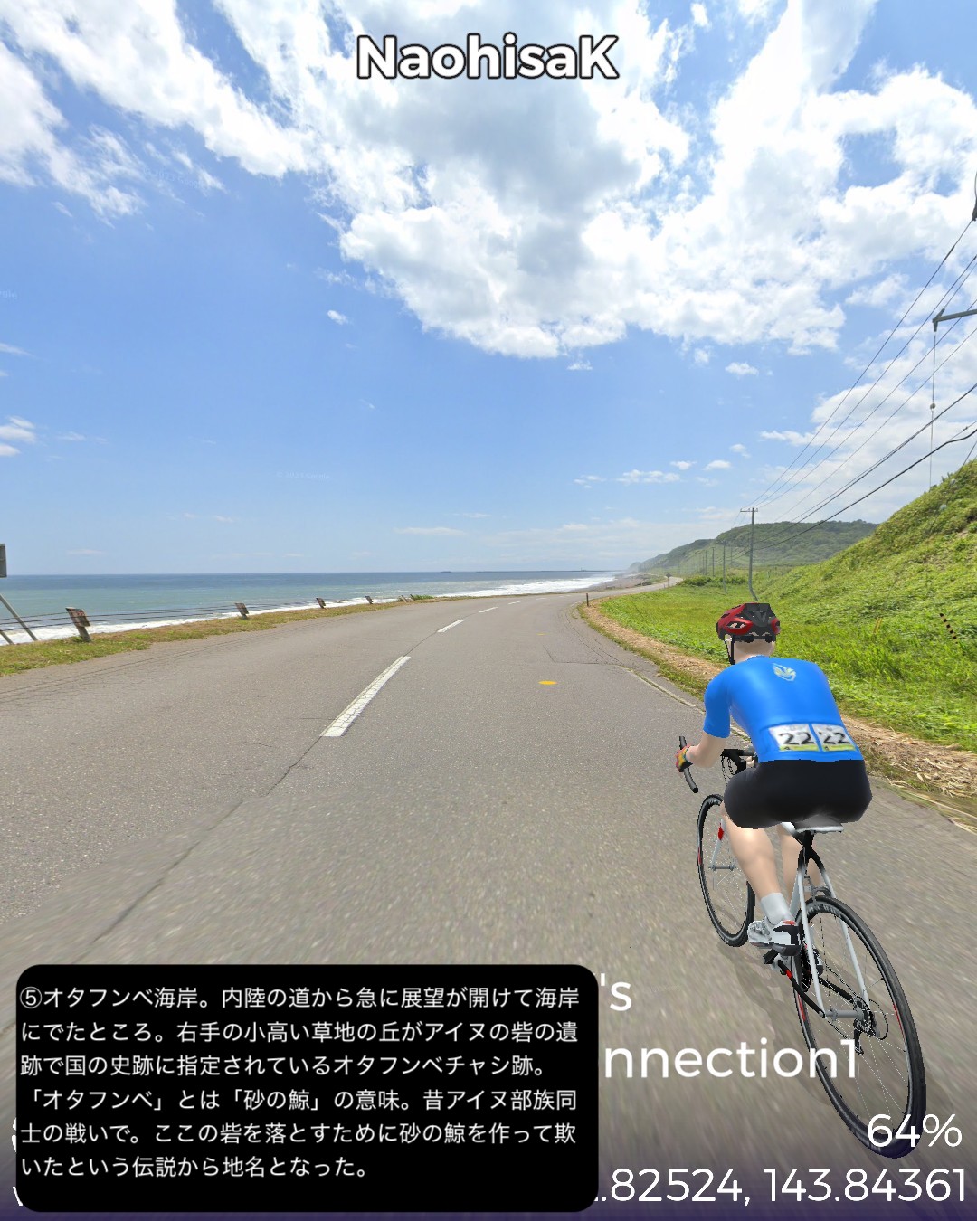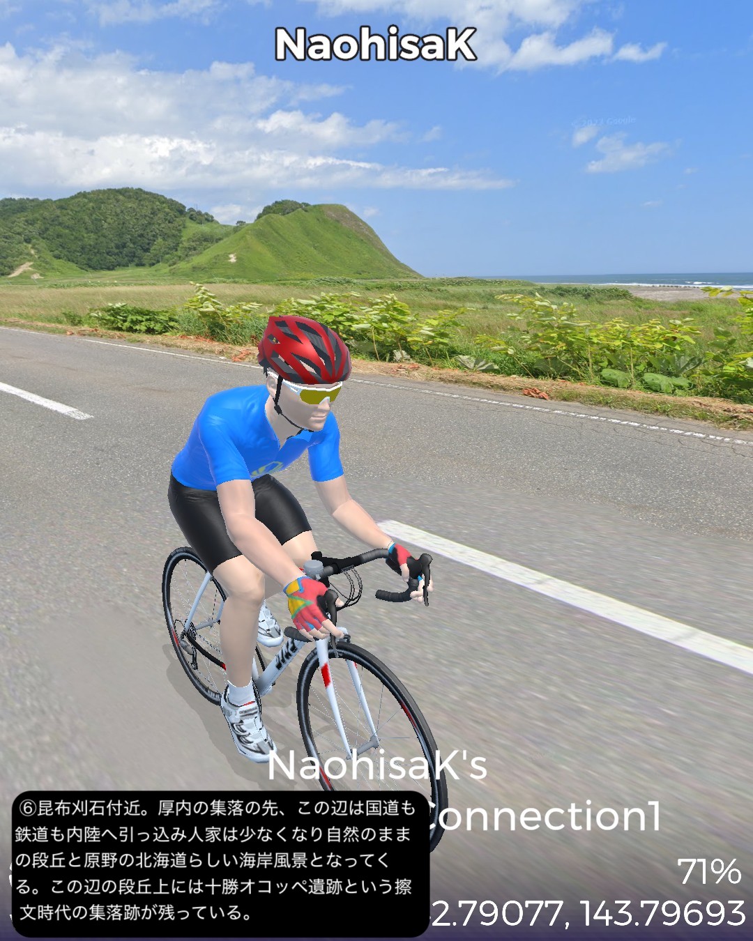 VRサイクリング 釧路から十勝方面へさらに太平洋岸を進む。お題としては釧路・十勝コネクション1日目とする。釧路は幣舞橋をスタートし、結構長い釧路市街を抜けて長い浜を突っ走り、北海道で石炭採掘を初めて行った町白糠を抜けるとまた北海道らしい段丘を登ったり下ったりの海岸道が続く。音別、さらに厚内まで進むと国道もJR根室本線も内陸に引っ込み地形は険しく秘境感が増す中をひたすら海岸近くを走り段丘から十勝平野に下ってゆき大河十勝川を渡ったところで十勝川河口の十勝発祥の港町というより港の集落大津に至る87kmの行程。国道とJR根室本線に沿って走るルート中盤までは、道北道東の海岸線を巡ってきた流れからは地味でビューポイントも少なかったが、国道も鉄道もなくなっ秘境感を増した昆布刈石付近からはなかなか楽しい道筋となった。特に昆布刈石の段丘から下る前方に十勝平野が広がり遠くに日高山脈が霞んで見える眺望は素晴らしかった。そして十勝川には日本離れした広さとワイルドさに圧倒された。河口の港町大津は鄙びた集落であるが、昔はここから十勝川を辿って入植が進んだ十勝発祥の地であり昔は水上交通の要所として賑わったという。今は厳冬期に見られるジュエリーアイスという魅惑的な自然現象で知る人ぞ知るスポットとなっている。これは見てみたい。次回は明治時代の十勝入植の経路を辿って帯広へ向かう。