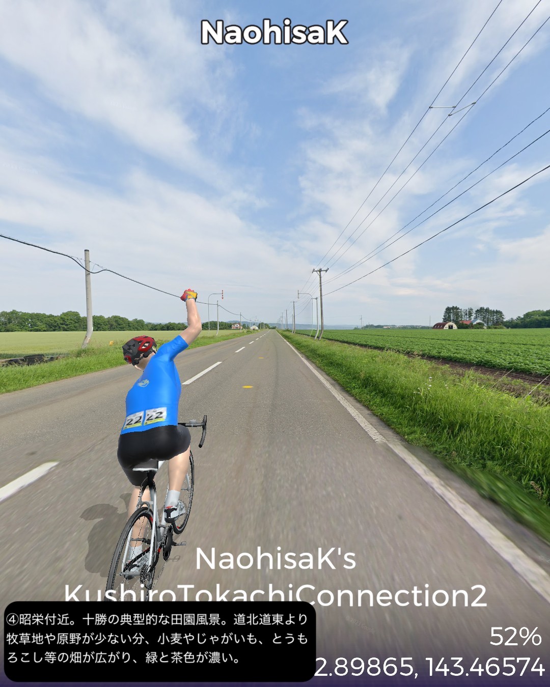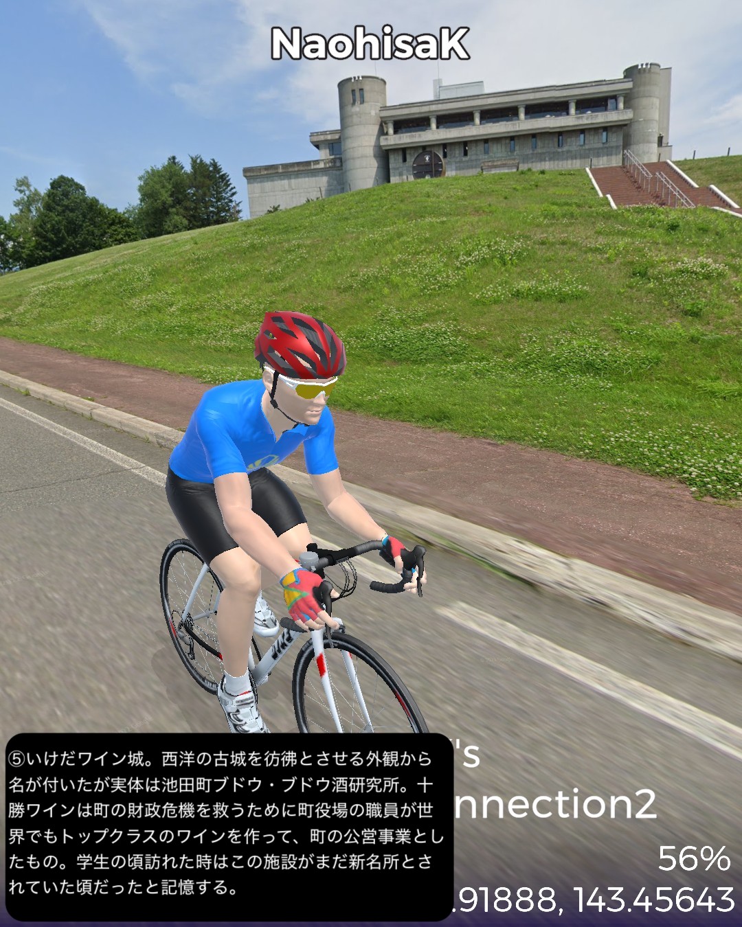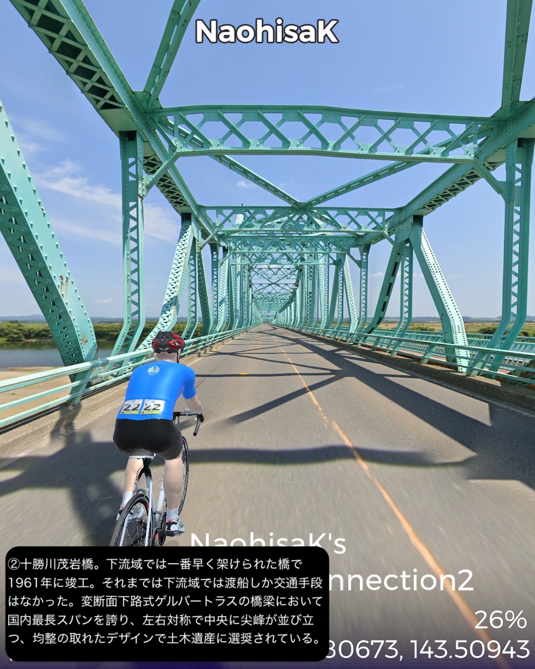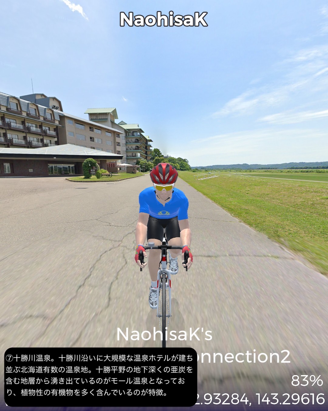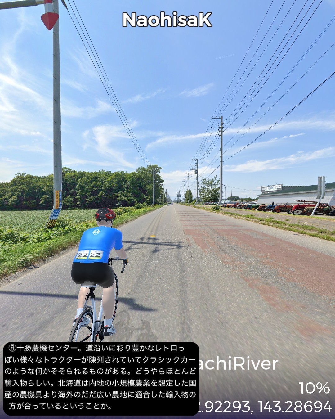 VRサイクリング 釧路・十勝コネクション 2日目。十勝入植の経路を辿ってひたすら十勝川沿いを上り十勝の中心都市帯広に至るの巻。十勝河口大橋を渡り切った地点をスタートし、まず十勝川右岸を上り茂岩付近で十勝川を渡りm豊頃から田園地帯を抜けてワイン王国池田に至る。その後十勝川沿いの大温泉地十勝川温泉を経て、大都市帯広に到達する62kmの行程。前回は釧路から海岸線沿いに南西方向を目指したが、今回は十勝川沿いに内陸の北西方向をへ進むルートとなった。自然条件のより厳しい道北道東から来るとこの十勝地域が十勝川の恩恵を受けた豊かな土地であることをひしひしと感じる。牧草地や原野が道北道東に比べて少ない分開拓された田園が広がり、緑や茶色が濃いのだ。日差しもより強く感じる。池田駅の裏手の山にそびえるいけだワイン城は、開館まもない頃の私の学生時代、まだ北海道の新たな観光スポットとしてもてはやされていた頃に訪れたので懐かしい。当時は日本はまだワインブーム以前だったし私もワインをほとんど嗜んでいなかった頃であったが、ここのケイブでワインの試飲をしたのを覚えている。池田町の財政難を乗り越える為に町役場の職員が世界的レベルのワインを造り上げたというが、この時代によくワインに目をつけたものだと感心する。どうやらその後もワインブームに乗って客を集めているとみた。帯広は思った以上に大都市で驚いた。釧路も道東では一番の賑わいだったが、帯広はよりモダンな大都市であった。多分町を支えている産業の規模が違うのであろう。
