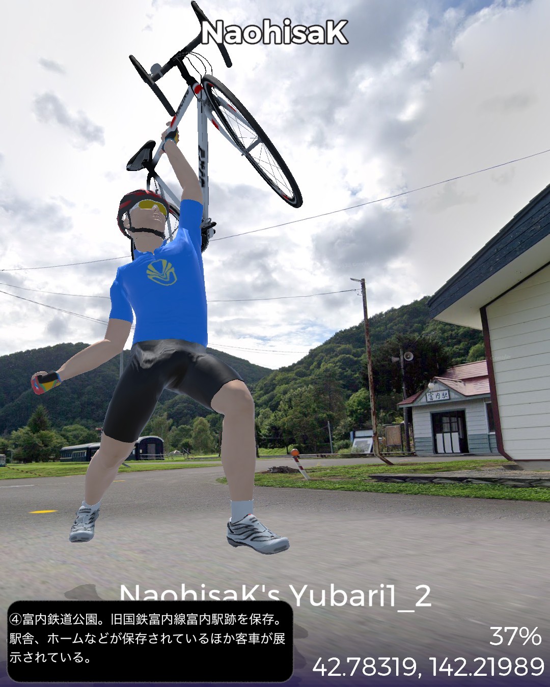 VRサイクリング 日高から内地へ方向転換し夕張を経由して一旦札幌へ向かう。題して夕張コネクション。その1日目。海沿いの日高町門別を出発し、沙流川に沿って山間へ向かう、平取町、コタンで知られる二風谷を抜け、国鉄富内線が通っていた富内、恐竜の町むかわ町穂別を経て、JR石勝線新夕張駅に出る。ここから最近廃線となった夕張支線に沿って進み夕張市街をゴールとする91kmの行程。なだらかな山地ではあるがいくつもの峠を越えるルート。特有の文化を有する二風谷コタンや、日本特有の恐竜カムイサウルスの化石が発見されたむかわ町穂別など小ネタの史跡はあれど、地味な山道をひたすら走る我慢のルートであった。ゴールの夕張は、炭鉱が閉鎖された後、観光や映画で町おこしをしているが成功しているとは言い難く、過疎化に歯止めがかからず自治体としての負債も増えている町と言われている。確かに団地などかつてはかなりの人口を抱えていたことが察せられるが全体に廃墟の町の雰囲気が漂う。リゾート開発などが一時期おこなれて立派なホテルも建っているが経営破綻したとのニュースもあり、ここも人気が感じられず廃墟っぽい。廃墟とリゾートでは噛み合わないので、いっそのこと軍艦島のような廃墟の町として売り出した方が良いのではないかと思ったりする。次回は久しぶりに札幌へ戻る。