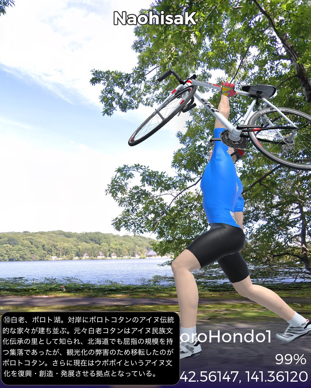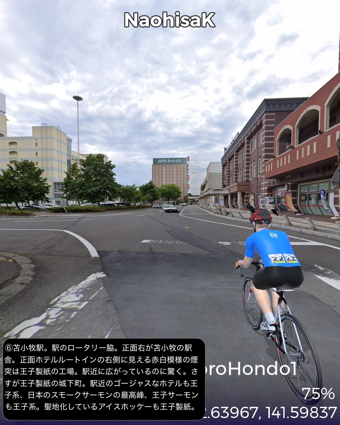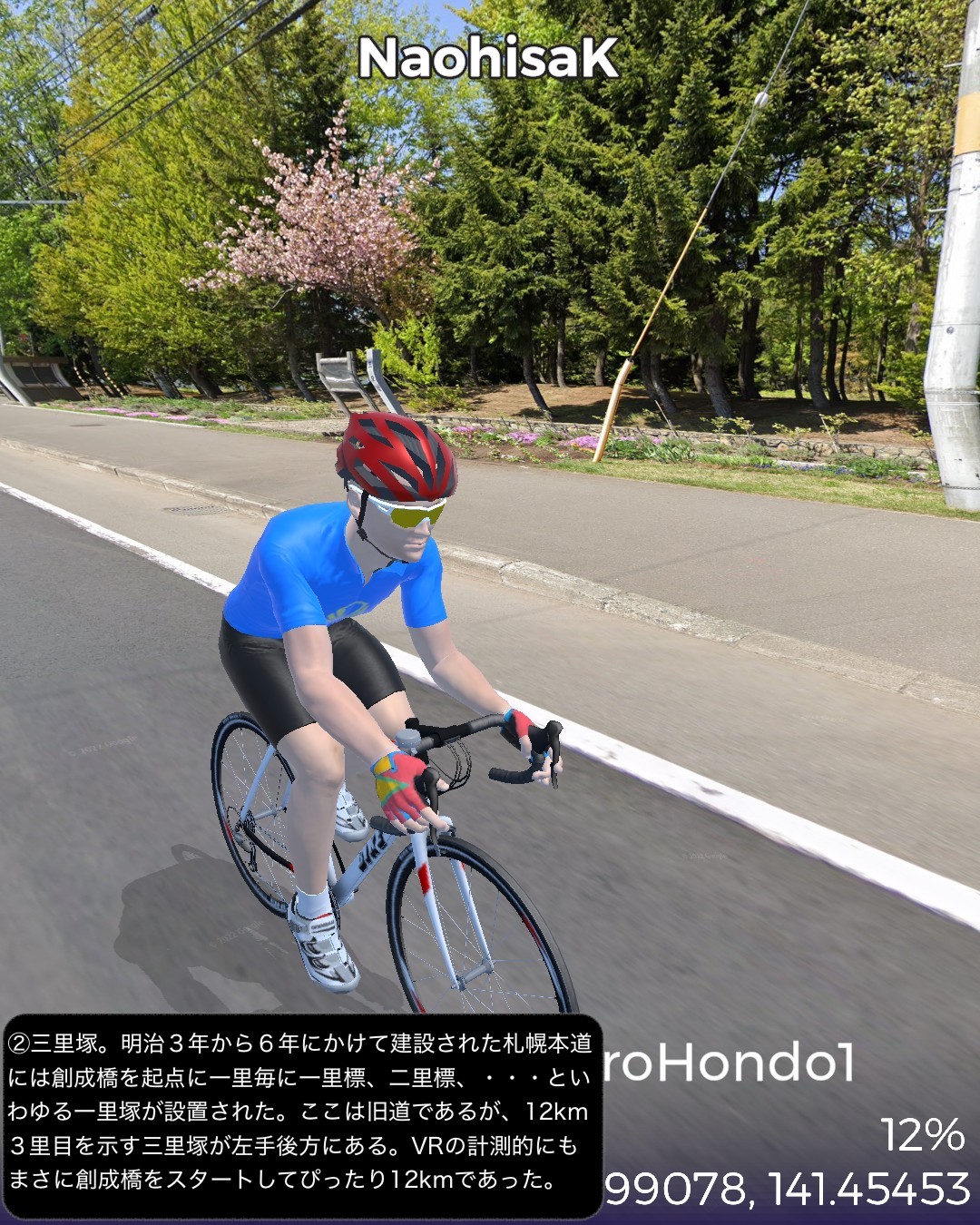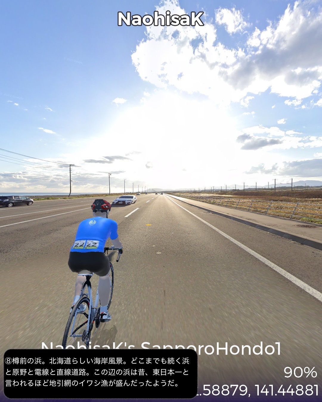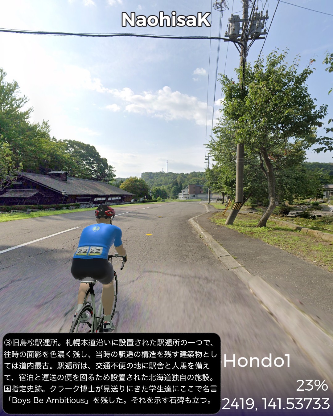 VRサイクリング。いよいよ北海道も最終ラウンド。明治初期に造成された札幌本道を辿って札幌から函館を目指す。今回はその1日目。札幌はすすきのを出発し、札幌本道の始点とされる北海道の日本橋的位置付けとなる創成橋から基本的には国道36号に沿って(あるいはJR千歳線に沿って)南東方面へ進路を定め、札幌郊外、さらになだらかな丘陵地帯を恵庭、千歳と進む。原野に展開する新千歳空港を突っ切って苫小牧へ到達。ここで進路を南西に変えて海岸沿いに進み白老のアイヌコタンのあるポロト湖をゴールとする94kmの行程。明治になって北海道開発を中央部へ広げるため札幌に開拓使の本庁舎を置くことになり、道南と札幌を繋ぐ幹線道路が必要となって明治5年から6年にかけての突貫工事で日本初の西洋式馬車道として建設されたのが札幌本道である。現在の国道36号にほぼ被っているが、札幌から千歳にかけては特に旧道が残っており、できる限りその旧道を忠実にトレースしてみた。札幌の創成橋を起点として1里ごとにいわゆる一里塚も整備されその痕跡も一部保存されている。駅逓と呼ばれる宿泊と運送の便を図る北海道特有の施設も札幌本道沿いに整備されたが、そのうち札幌から六里目にある旧島松駅逓所は保存再現され国指定史跡となっている。札幌本道はある意味レトロモダンな街道と言える。忠実にトレースと言いつつ旧道がなく国道がそのままルートになっている箇所では寄り道モードで道を外れ、新千歳空港へ寄ったりもした。苫小牧は駅近に王子製紙の工場の敷地が広がり、王子製紙グループの城下町化している都市であった。王子製紙がチームを有するアイスホッケーが盛んであり、市街の最大のホテルも王子製紙グループの経営。変わったところでは苫小牧の名産となっている日本最高峰のスモークサーモンを製造する王子サーモンという企業もある。最大級のアイヌコタンで有名な白老は観光化の弊害を乗り越えて、ポロト湖周辺にウポポイと称するアイヌ文化を復興創造発展させる拠点として展開しているようだ。単なる見せ物にするのではなくアイヌ人のアイヌのための文化継承と発展の試みということであろう。次回は室蘭へ向かう。