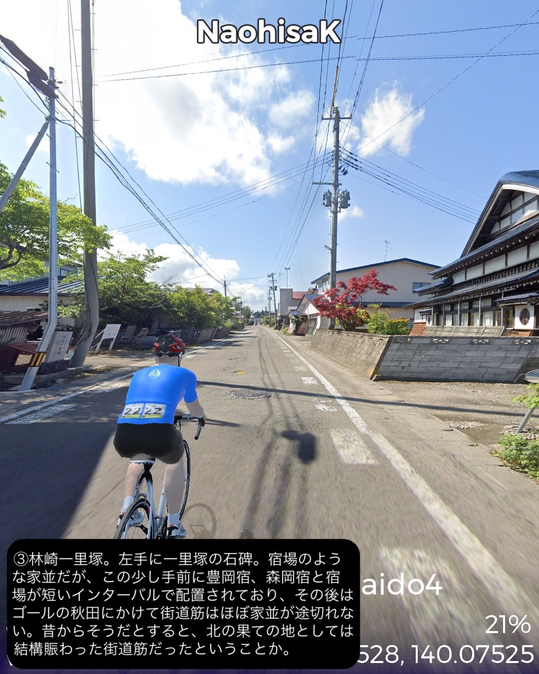 VRサイクリング 秋田街道という秋田と盛岡を結ぶ街道を通って再度盛…